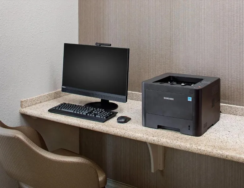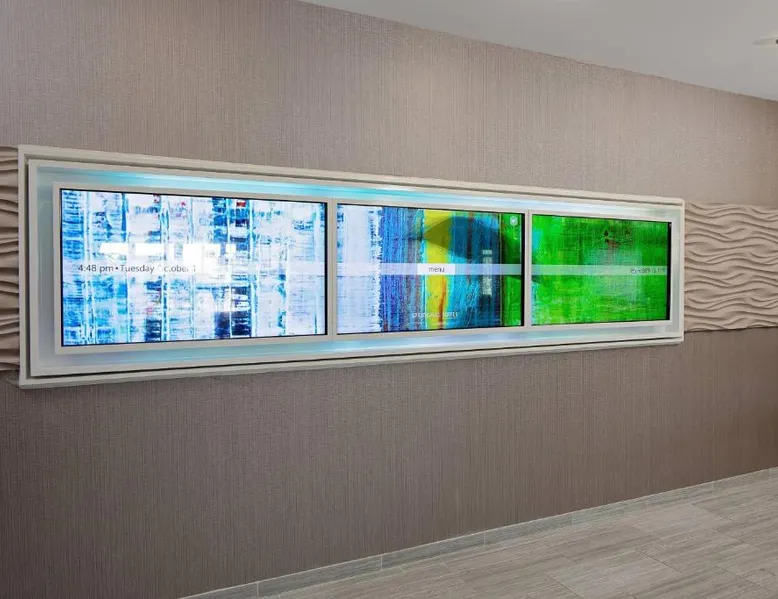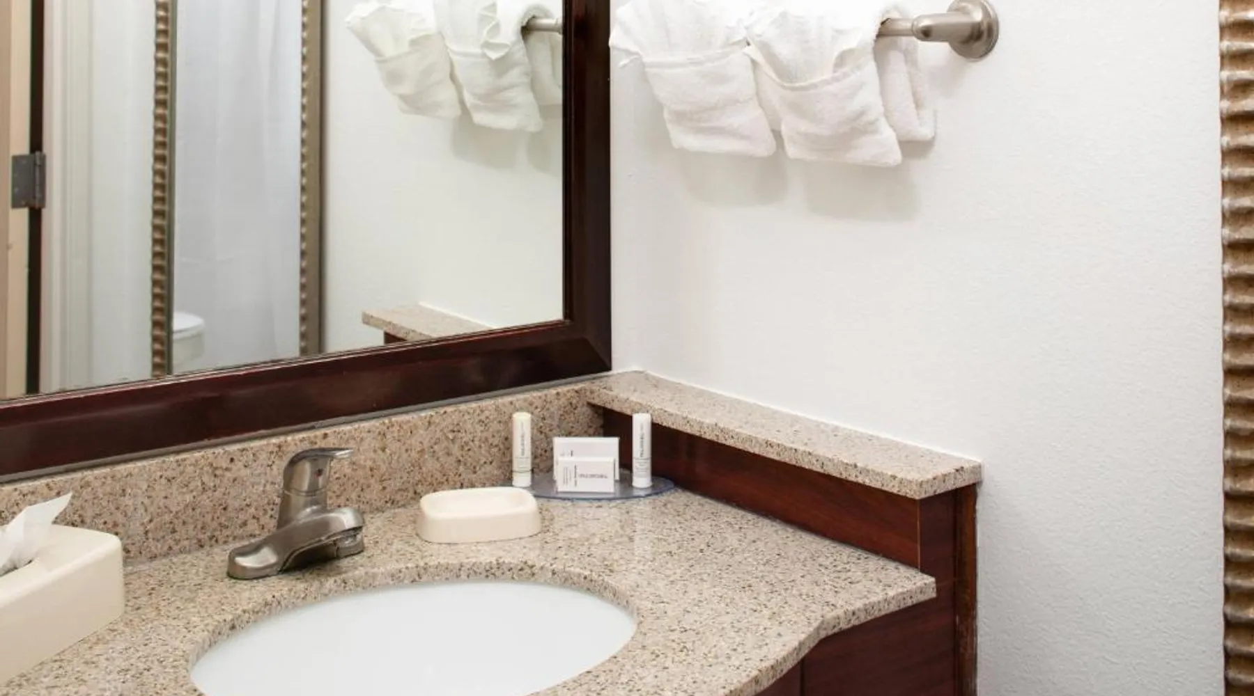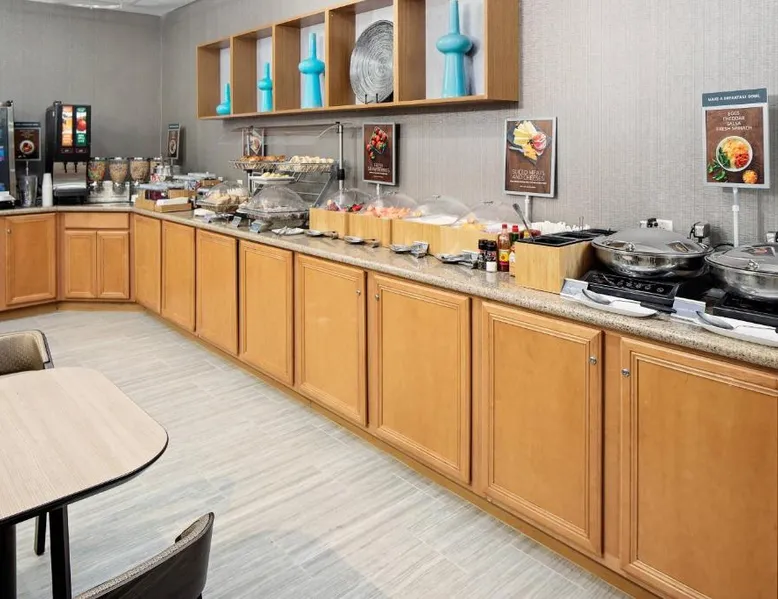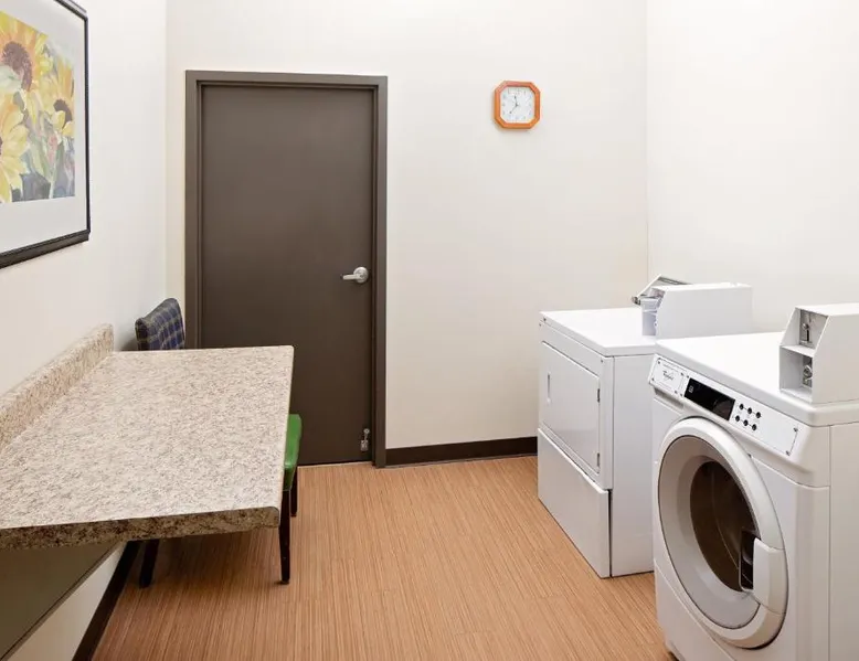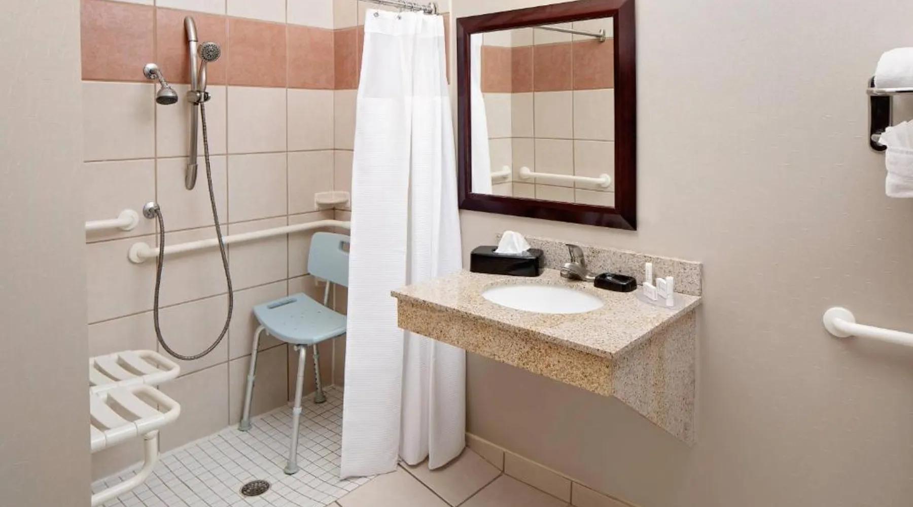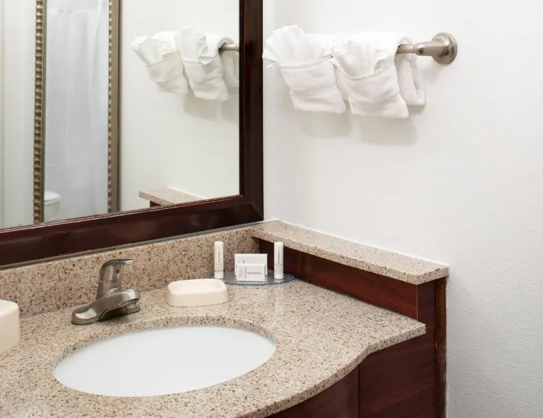 Comfortable Accommodations: SpringHill Suites by Marriott Ardmore in Ardmore offers family rooms with air-conditioning, private bathrooms, and modern amenities. Each room includes a work desk, refrigerator, and TV, ensuring a pleasant stay. Facilities and Services: Guests can enjoy a fitness center, 24-hour front desk, business area, and free on-site parking. The hotel provides a continental breakfast, a dining area, and a mini-bar for added convenience. Guest Satisfaction: Visitors appreciate the room cleanliness, the quality of the breakfast provided by the property, and the attentive staff and service support. A seating area with a flat-screen TV is featured in this room, A dining area, microwave, and refrigerator are provided.