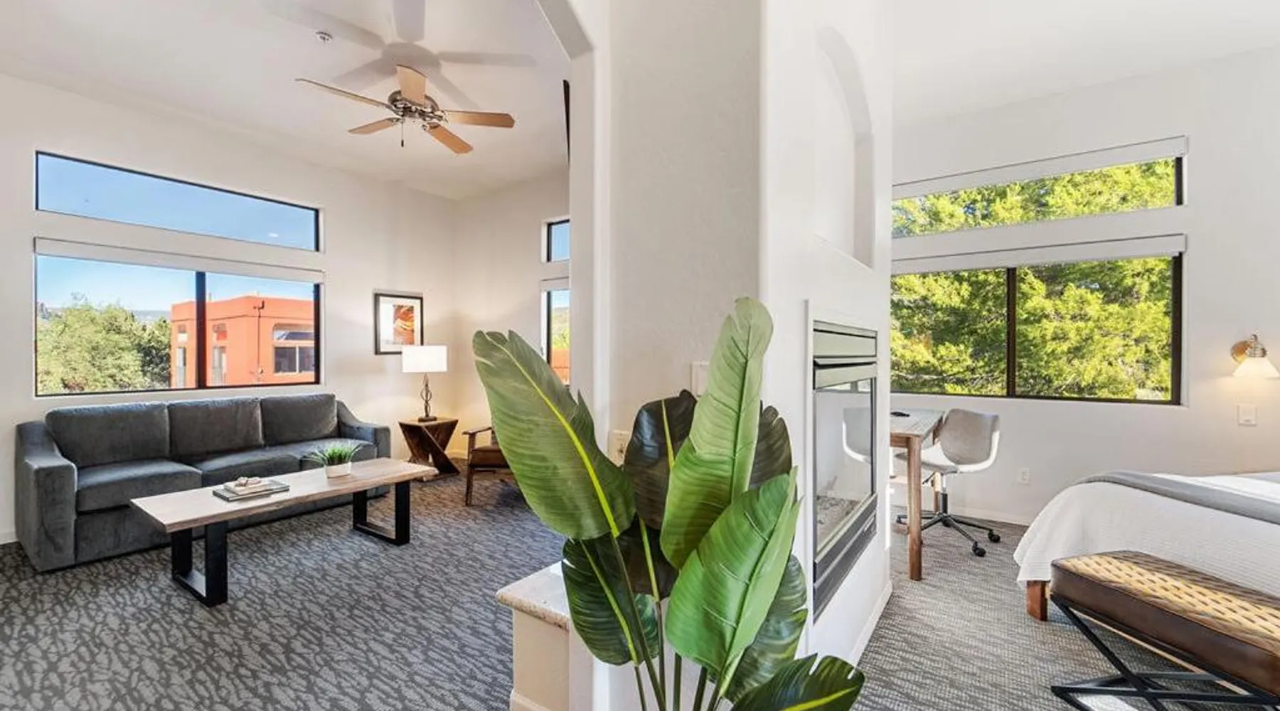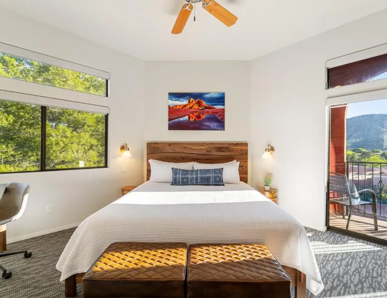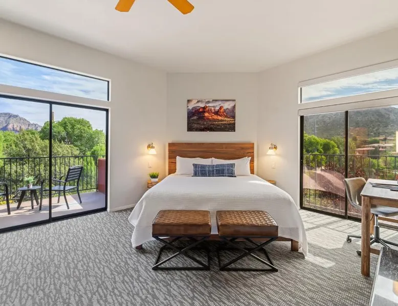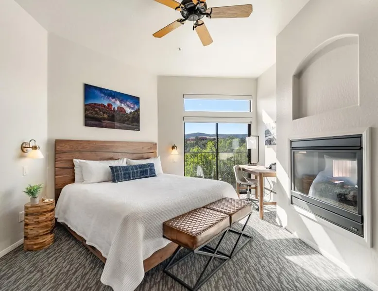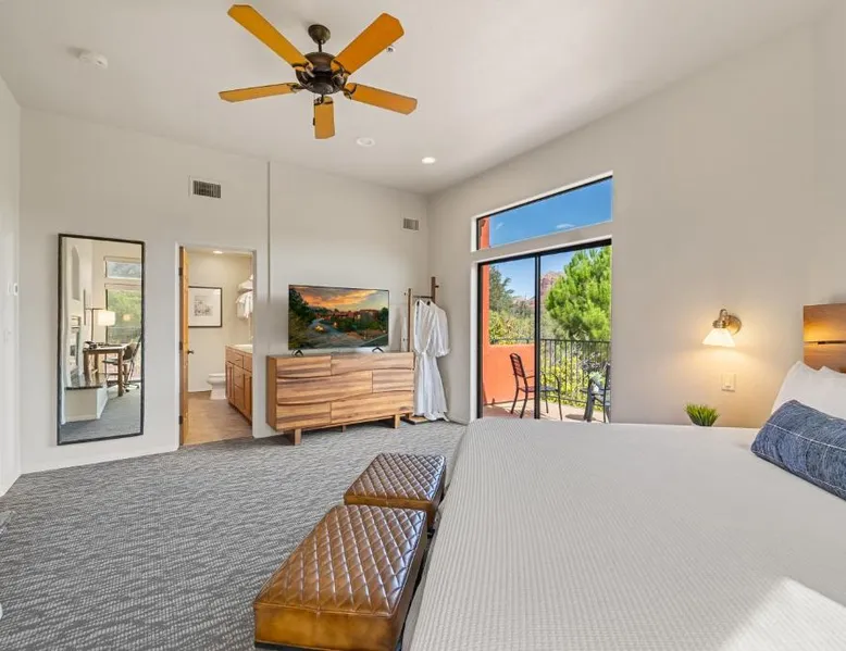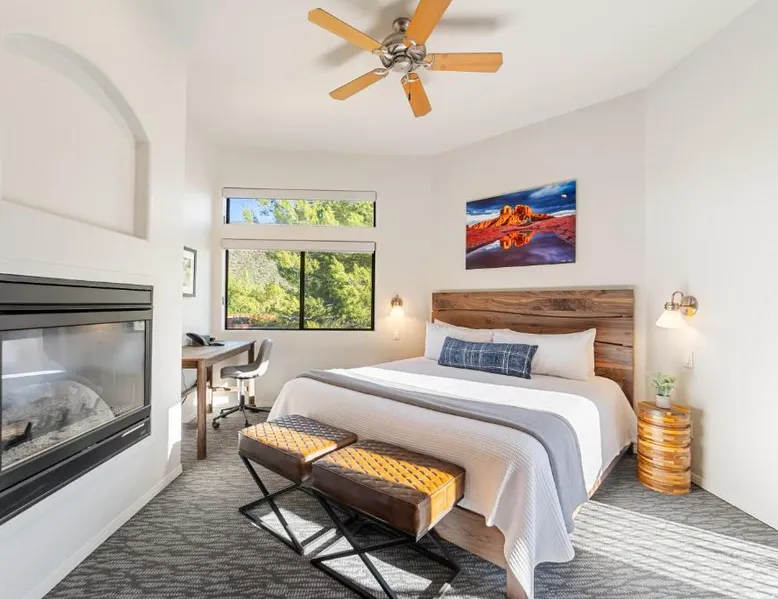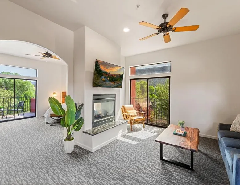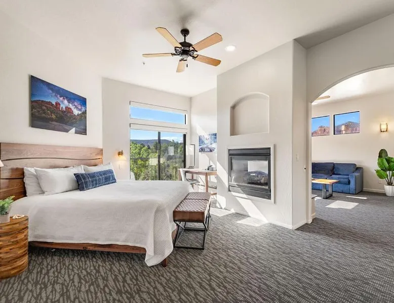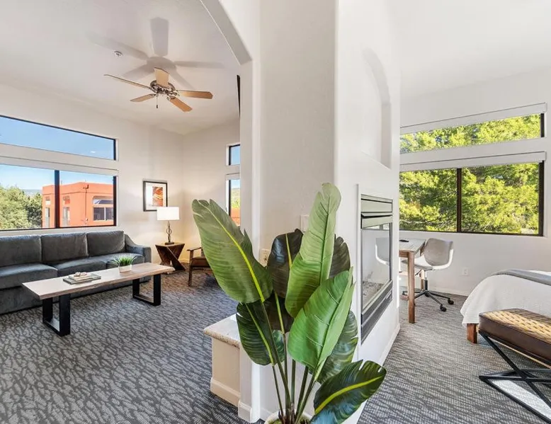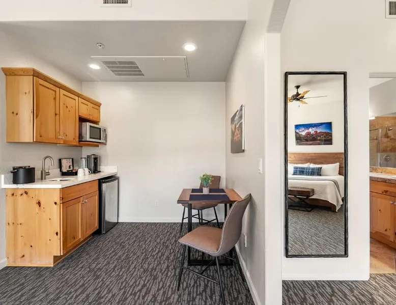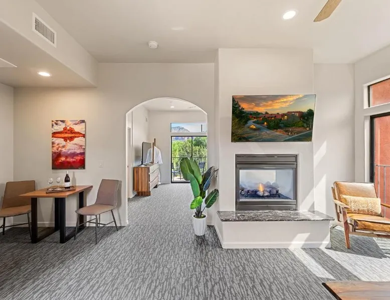 Adjacent to the Sedona Golf Resort and a 30-minute drive from Red Rock State Park, this hotel provides a flat-screen TV and free in-room WiFi. Las Posadas of Sedona offers suites with a private entrance and a fireplace. They are furnished with a sofa bed and work desk. A microwave and refrigerator are provided. This Sedona hotel features a concierge desk. Guests can enjoy a seasonal outdoor pool and hot tub with views of the Red Rocks. Downtown Sedona, Arizona is a 15-minute drive from Las Posadas of Sedona, while the Sedona Airport is a 20-minute drive from the hotel. This suite offers a balcony or patio, a seating area with a sofa bed and a kitchenette with a small refrigerator, a microwave and coffee-making facilities. Select rooms include a patio or balcony.
