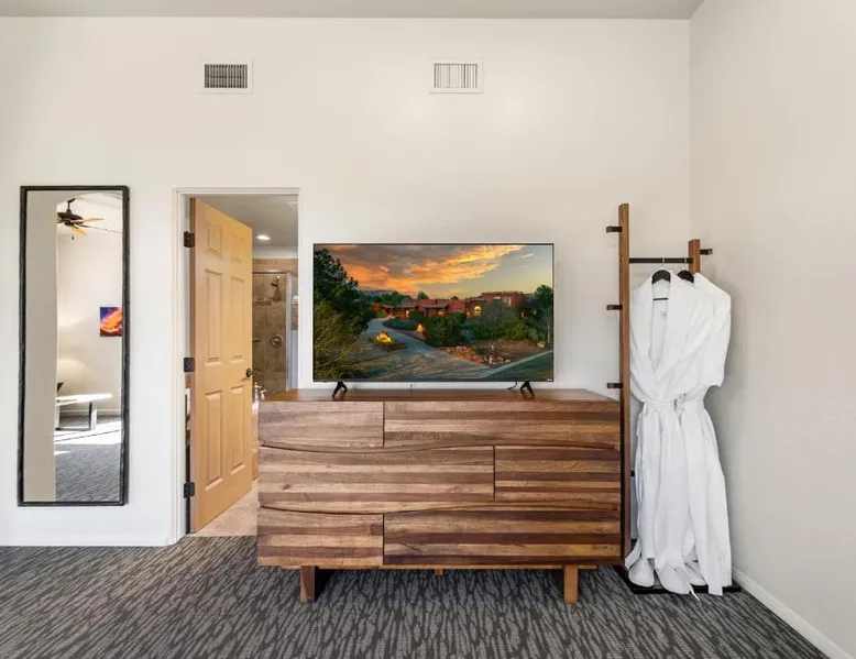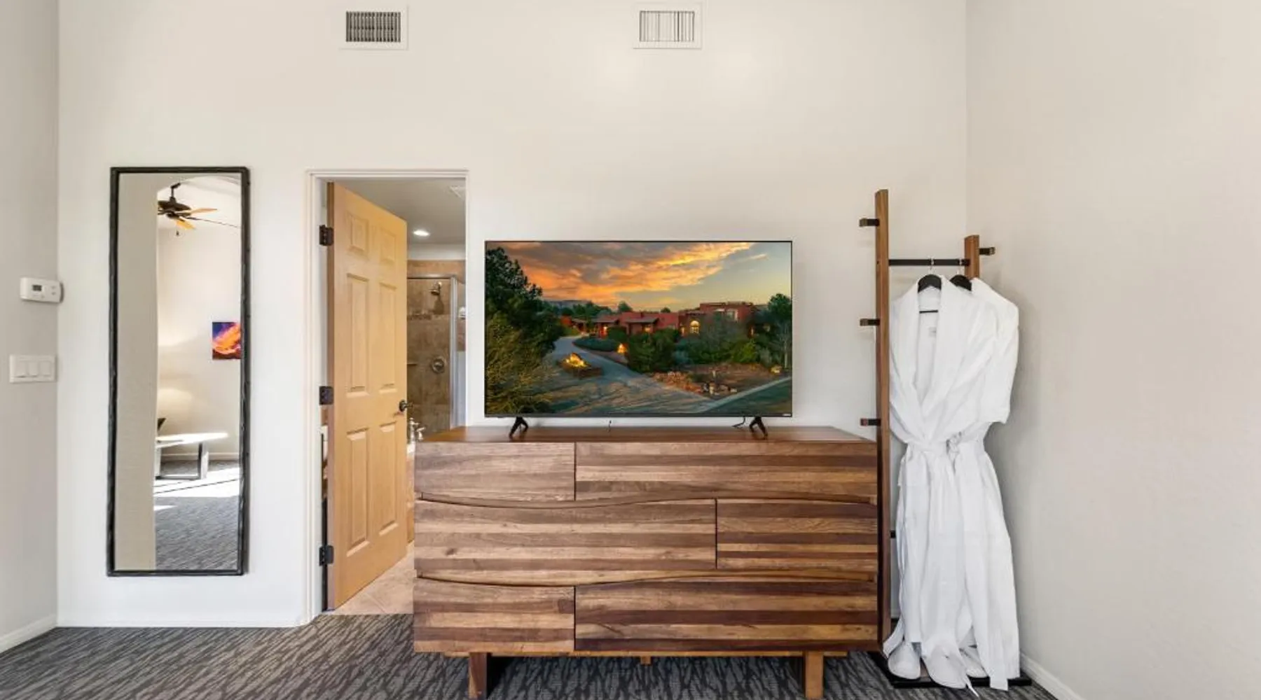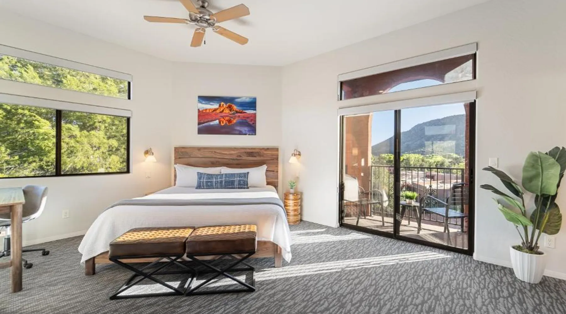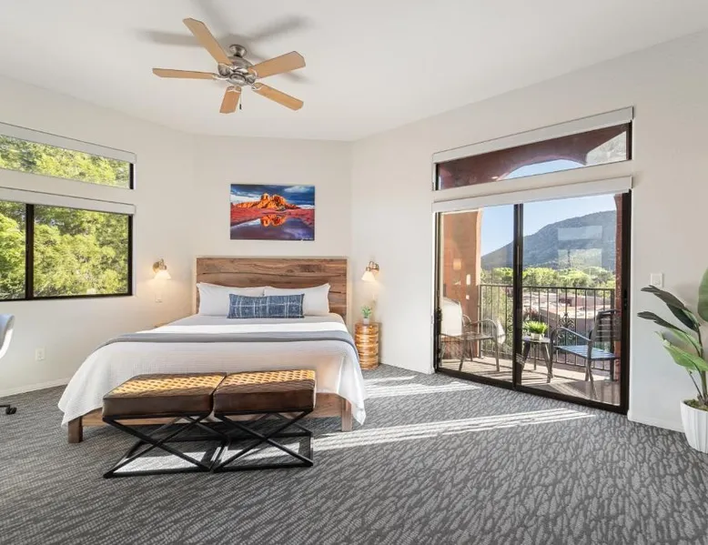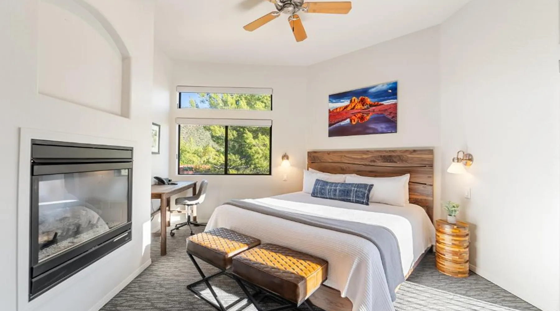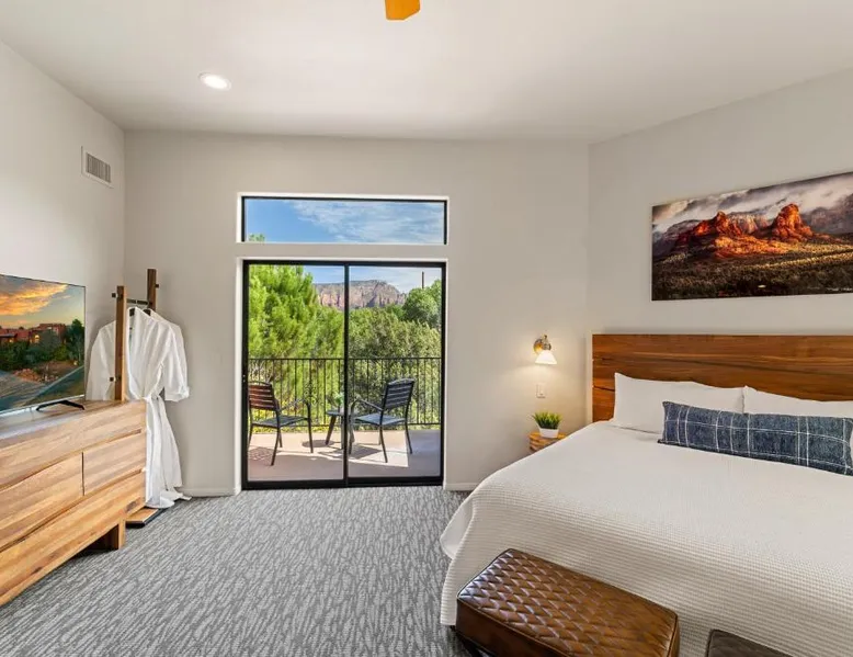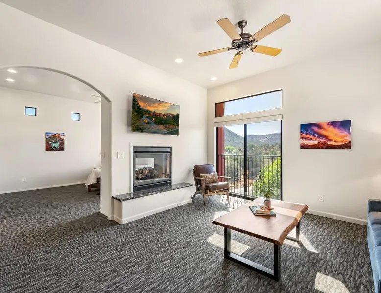 Adjacent to the Sedona Golf Resort and a 30-minute drive from Red Rock State Park, this hotel provides a flat-screen TV and free in-room WiFi. Las Posadas of Sedona offers suites with a private entrance and a fireplace. They are furnished with a sofa bed and work desk. A microwave and refrigerator are provided. This Sedona hotel features a concierge desk. Guests can enjoy a seasonal outdoor pool and hot tub with views of the Red Rocks. Downtown Sedona, Arizona is a 15-minute drive from Las Posadas of Sedona, while the Sedona Airport is a 20-minute drive from the hotel. This suite offers a balcony or patio, a seating area with a sofa bed and a kitchenette with a small refrigerator, a microwave and coffee-making facilities. Select rooms include a patio or balcony.