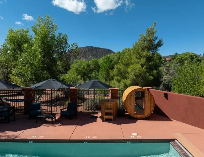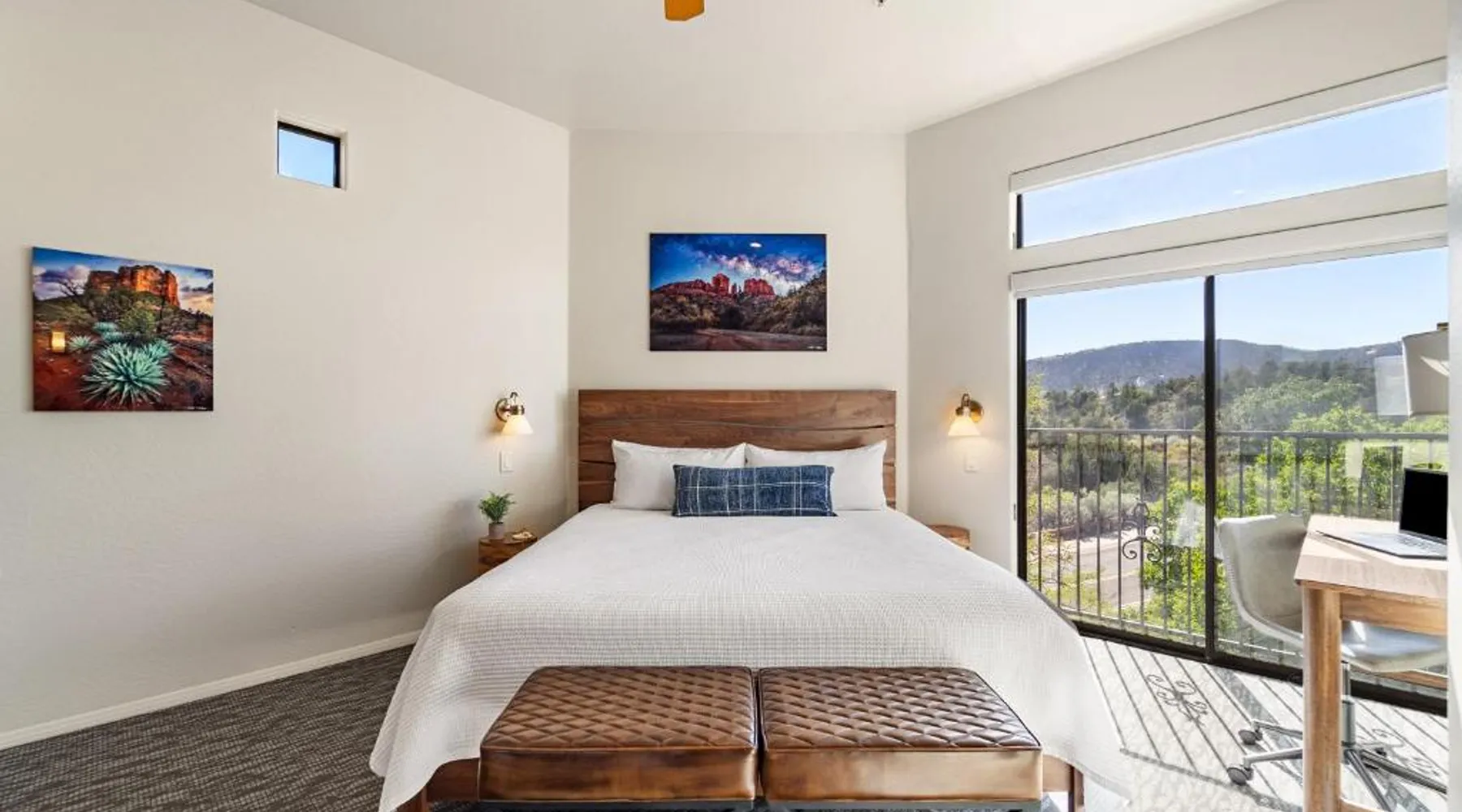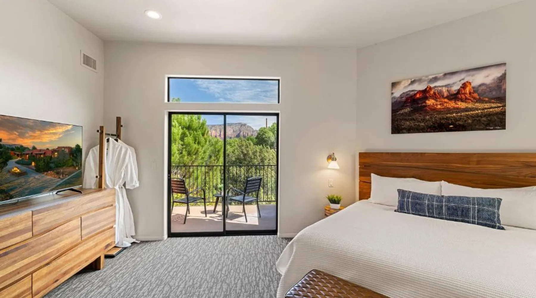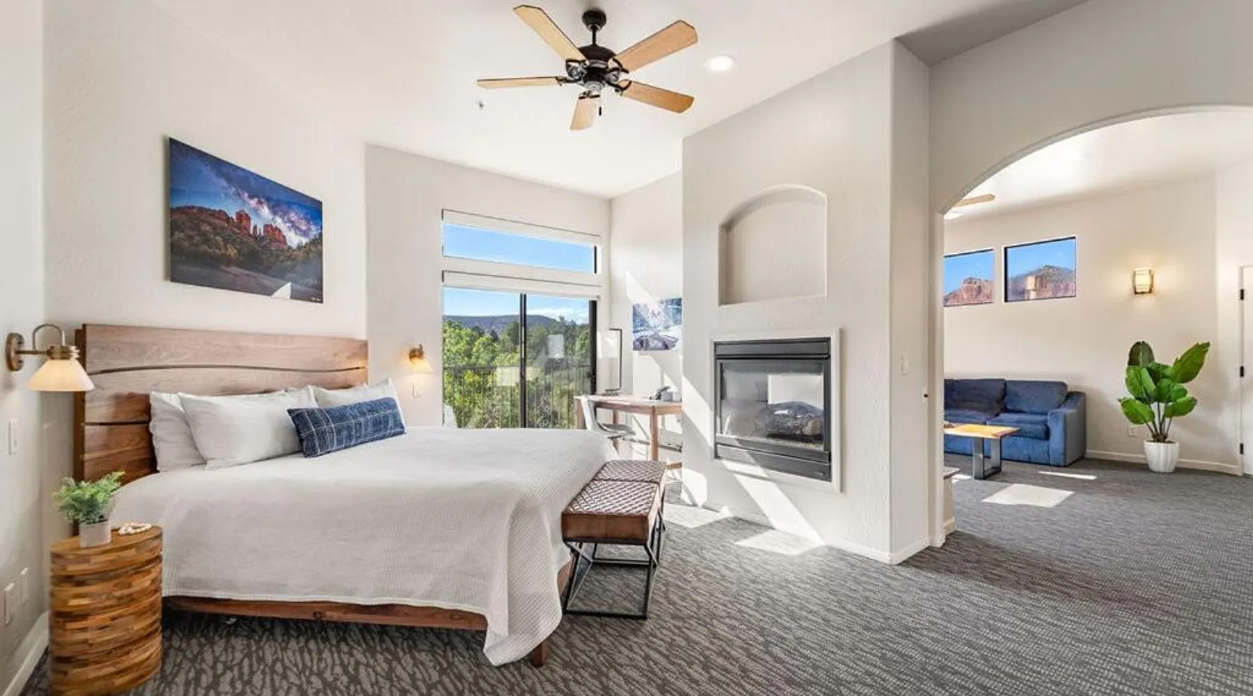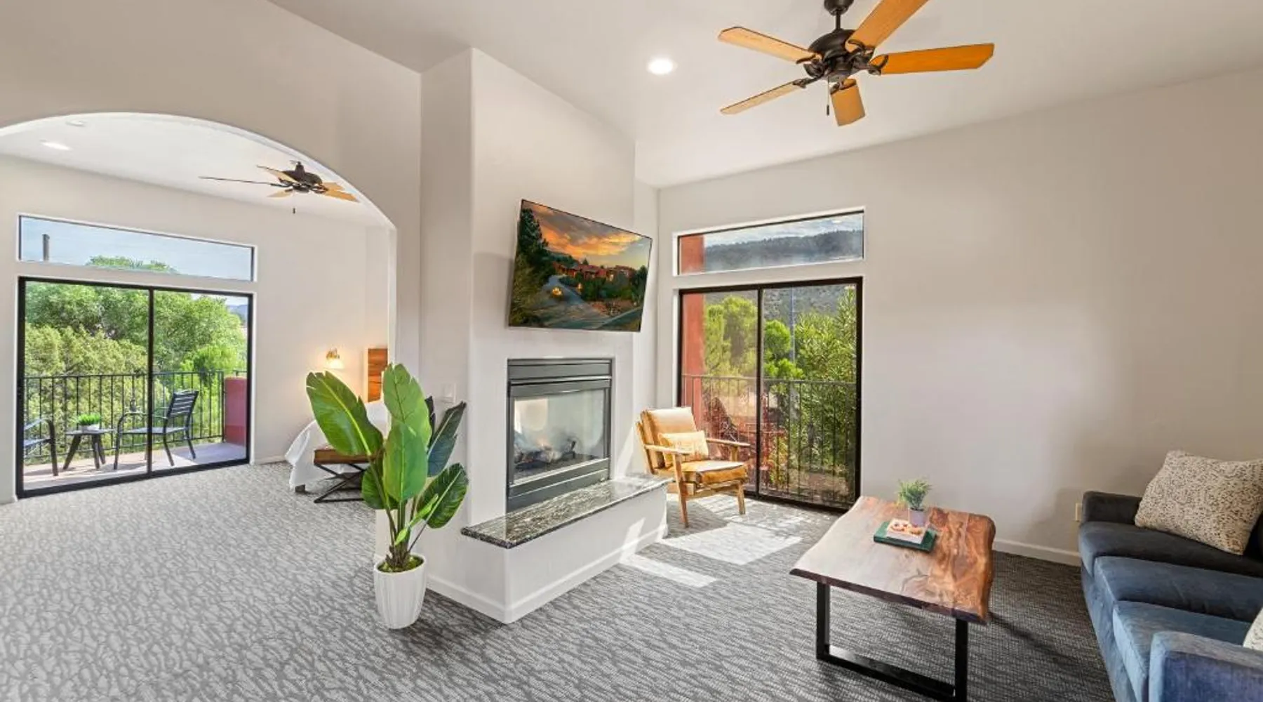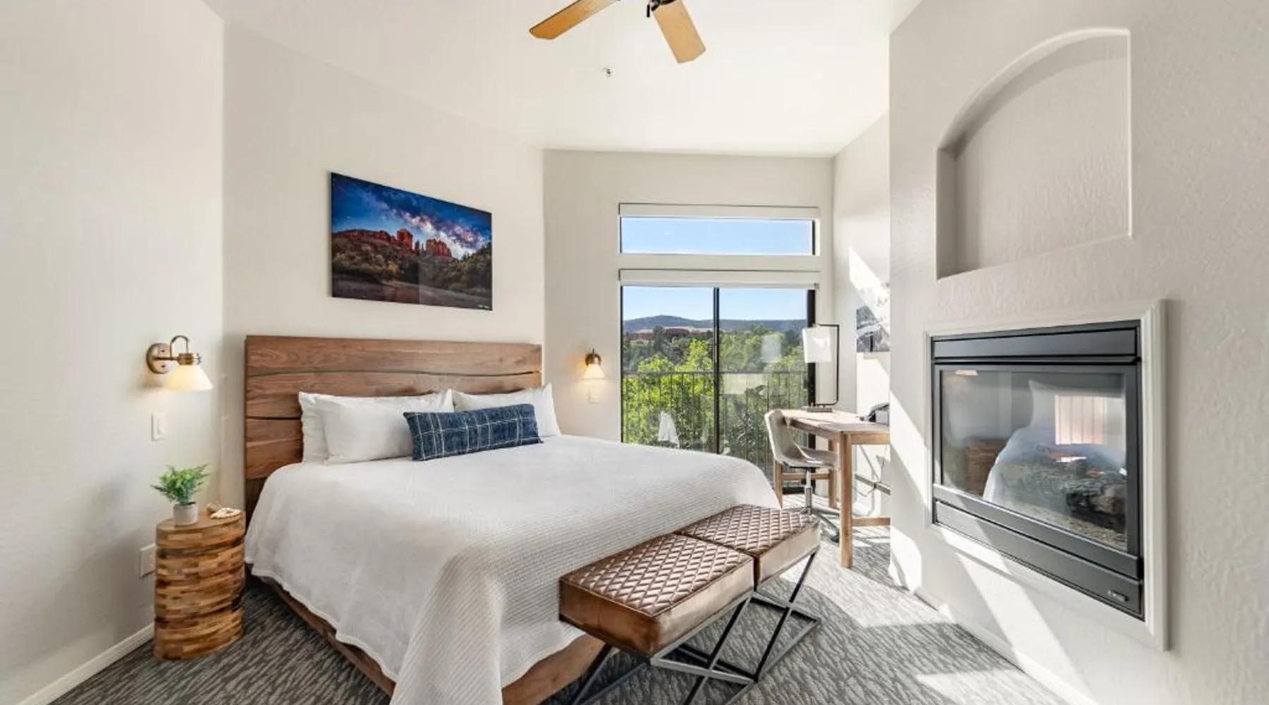 Adjacent to the Sedona Golf Resort and a 30-minute drive from Red Rock State Park, this hotel provides a flat-screen TV and free in-room WiFi. Las Posadas of Sedona offers suites with a private entrance and a fireplace. They are furnished with a sofa bed and work desk. A microwave and refrigerator are provided. This Sedona hotel features a concierge desk. Guests can enjoy a seasonal outdoor pool and hot tub with views of the Red Rocks. Downtown Sedona, Arizona is a 15-minute drive from Las Posadas of Sedona, while the Sedona Airport is a 20-minute drive from the hotel. This suite offers a balcony or patio, a seating area with a sofa bed and a kitchenette with a small refrigerator, a microwave and coffee-making facilities. Select rooms include a patio or balcony.