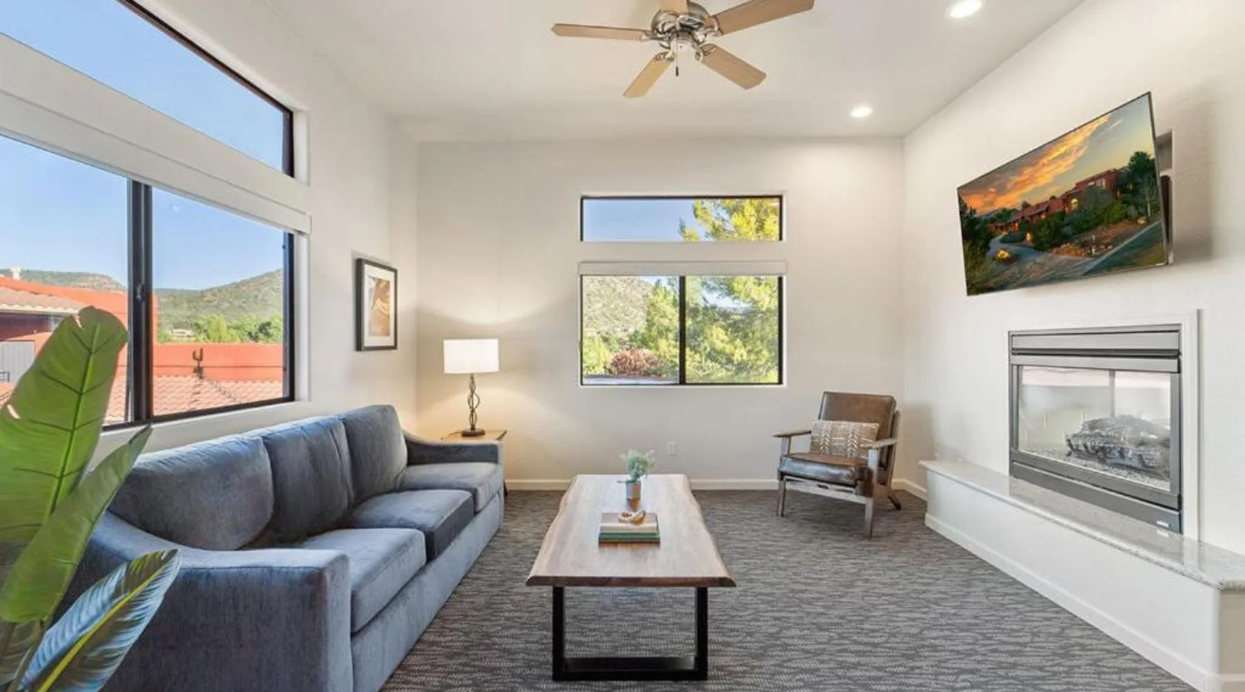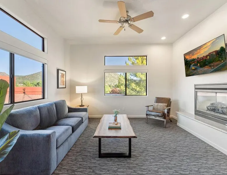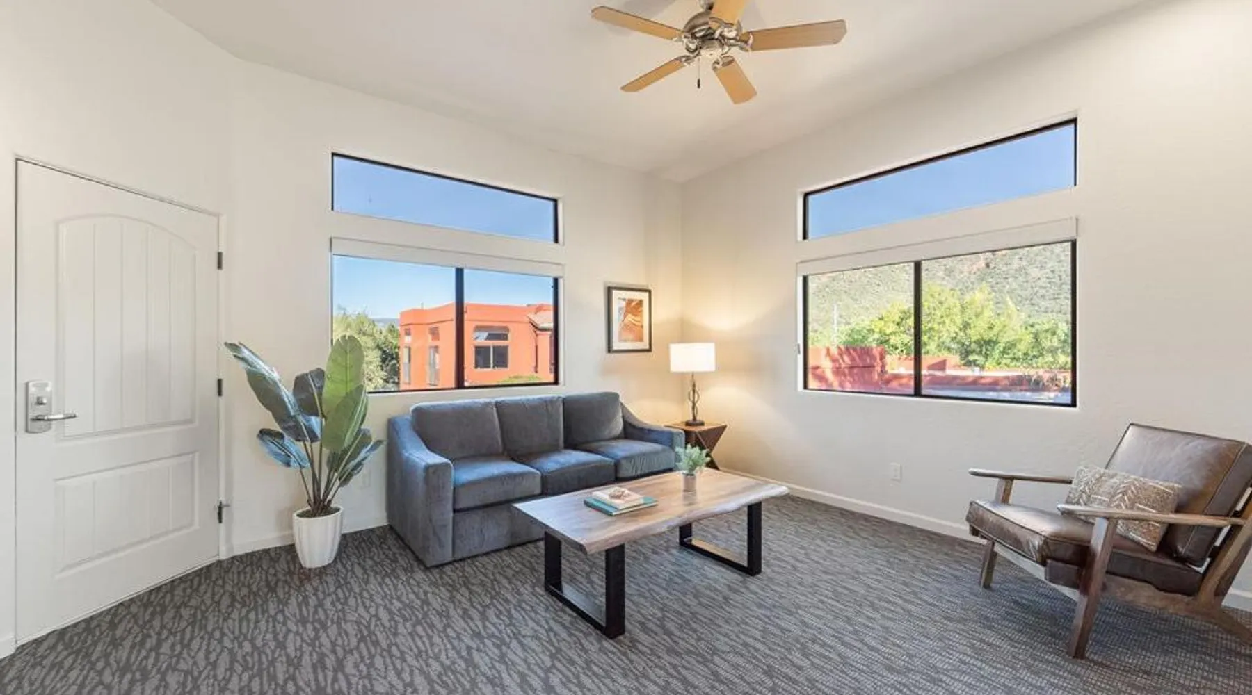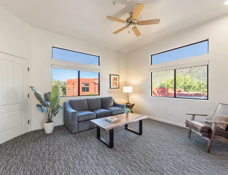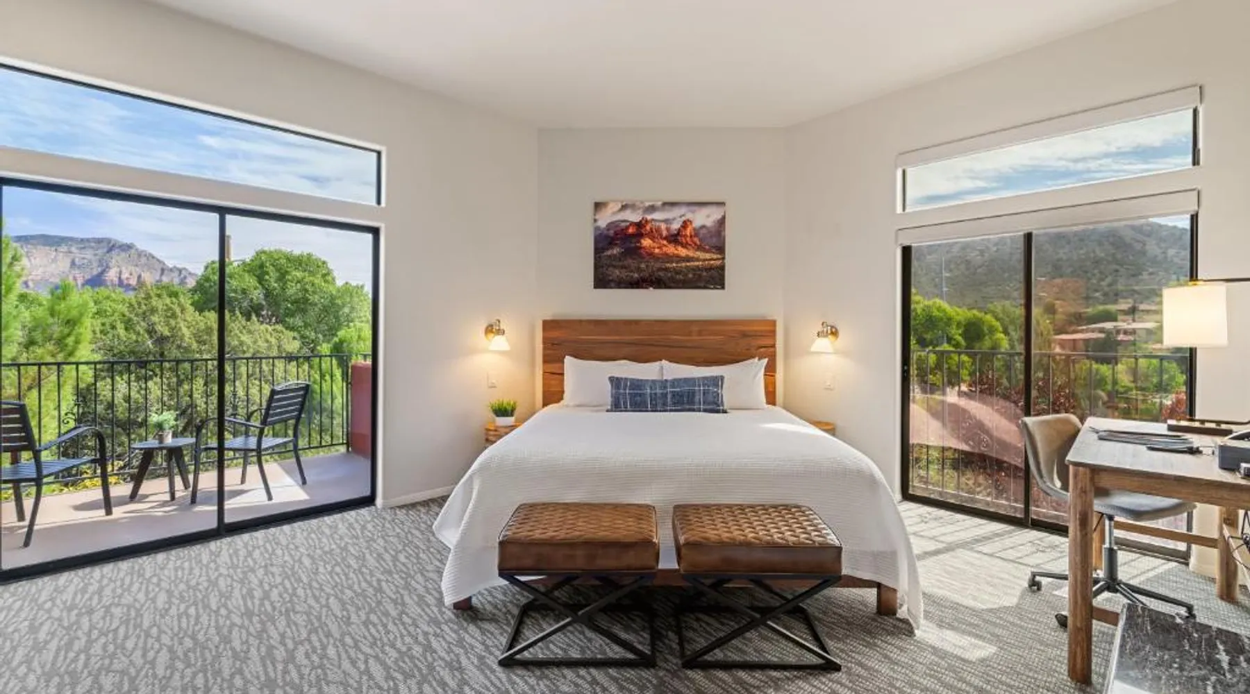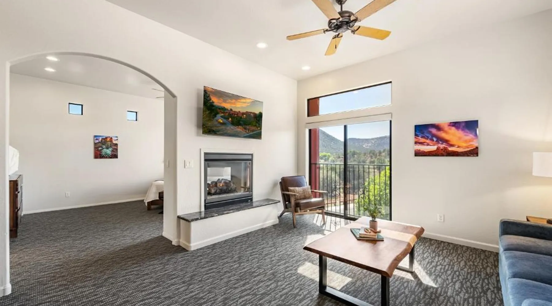 Adjacent to the Sedona Golf Resort and a 30-minute drive from Red Rock State Park, this hotel provides a flat-screen TV and free in-room WiFi. Las Posadas of Sedona offers suites with a private entrance and a fireplace. They are furnished with a sofa bed and work desk. A microwave and refrigerator are provided. This Sedona hotel features a concierge desk. Guests can enjoy a seasonal outdoor pool and hot tub with views of the Red Rocks. Downtown Sedona, Arizona is a 15-minute drive from Las Posadas of Sedona, while the Sedona Airport is a 20-minute drive from the hotel. This suite offers a balcony or patio, a seating area with a sofa bed and a kitchenette with a small refrigerator, a microwave and coffee-making facilities. Select rooms include a patio or balcony.