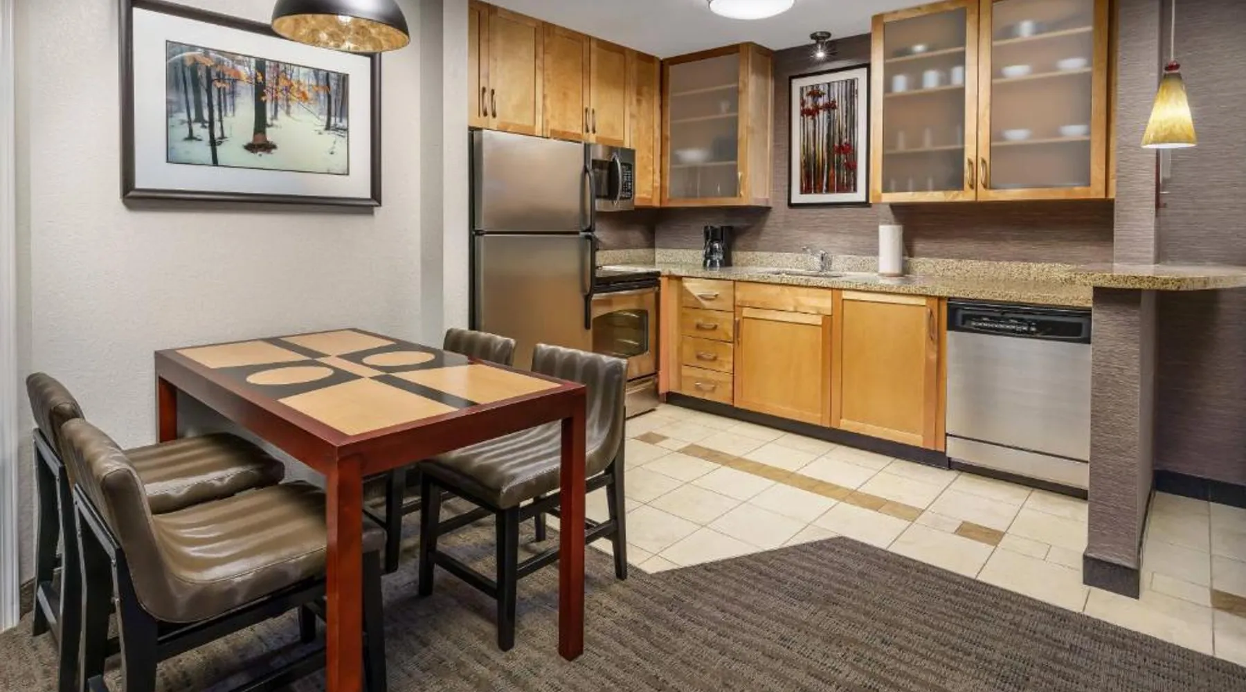 Comfortable Accommodations: Residence Inn Burlington Colchester in Burlington offers spacious rooms with air-conditioning, private bathrooms, and fully equipped kitchens. Guests appreciate the room comfort and ample space. Leisure Facilities: The hotel features a saltwater swimming pool, indoor pool, sun terrace, and fitness center. Free WiFi is available throughout the property, ensuring connectivity for all guests. Dining Options: A buffet breakfast is served daily, offering American and continental options. Additional amenities include a lounge, outdoor fireplace, and barbecue facilities. Convenient Location: Located 3.1 mi from Burlington International Airport, the hotel is near attractions such as the University of Vermont (3 mi) and Winooski Falls Mill District (1.9 mi). Free on-site parking is provided. This studio features a full kitchen, flat-screen TV and free Wi-Fi.