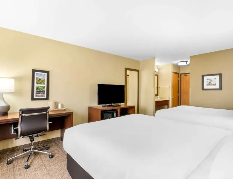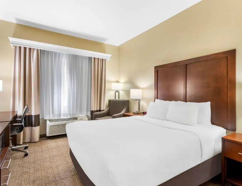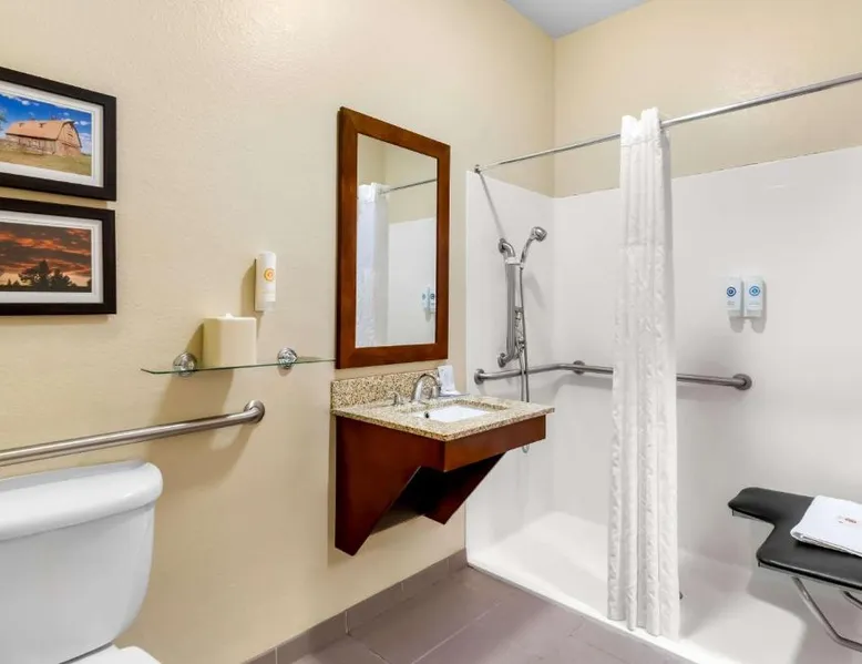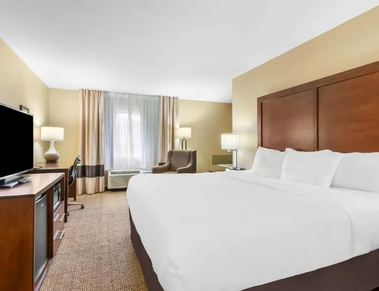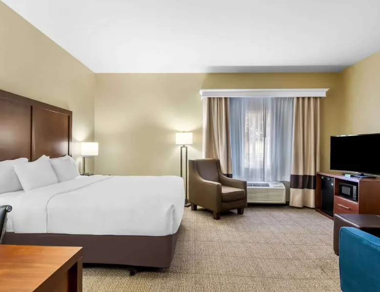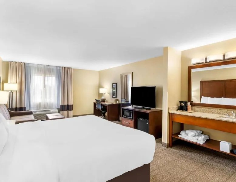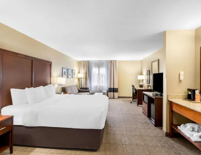 Comfortable Accommodations: Comfort Inn & Suites Near University of Wyoming in Laramie offers comfortable rooms with air-conditioning, private bathrooms, and mountain views. Each room includes a tea and coffee maker, refrigerator, work desk, and free toiletries. Exceptional Facilities: Guests enjoy an indoor swimming pool, hot tub, fitness room, and spa bath. Free WiFi is available throughout the property, ensuring connectivity. Additional amenities include a business area, outdoor seating, and picnic area. Convenient Services: The hotel provides free on-site parking, a 24-hour front desk, daily housekeeping, and express check-in and check-out services. A continental breakfast is served each morning, and the property staff and service support are highly praised by guests. Local Attractions: Located 3.1 mi from Laramie Regional Airport and 4.3 mi from War Memorial Stadium, the hotel offers easy access to local points of interest. Free Wi-Fi, a flat-screen TV, a microwave and small fridge are included in this room.