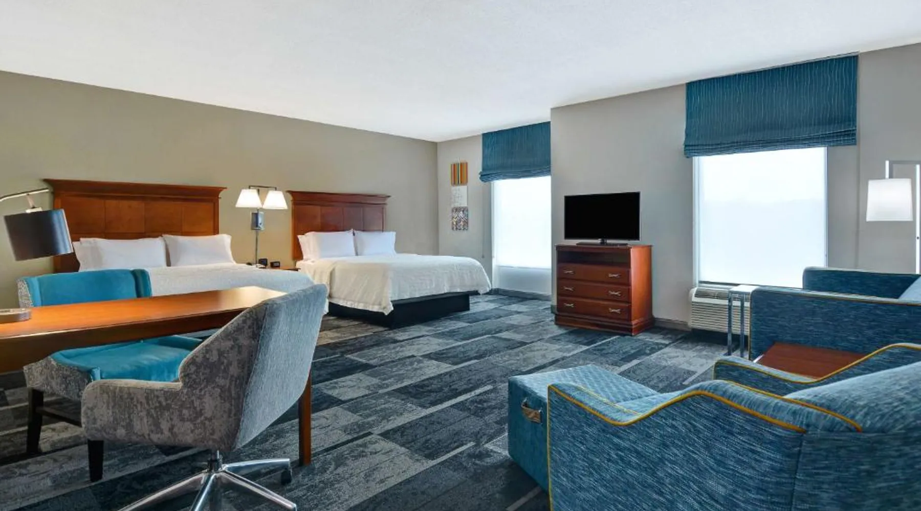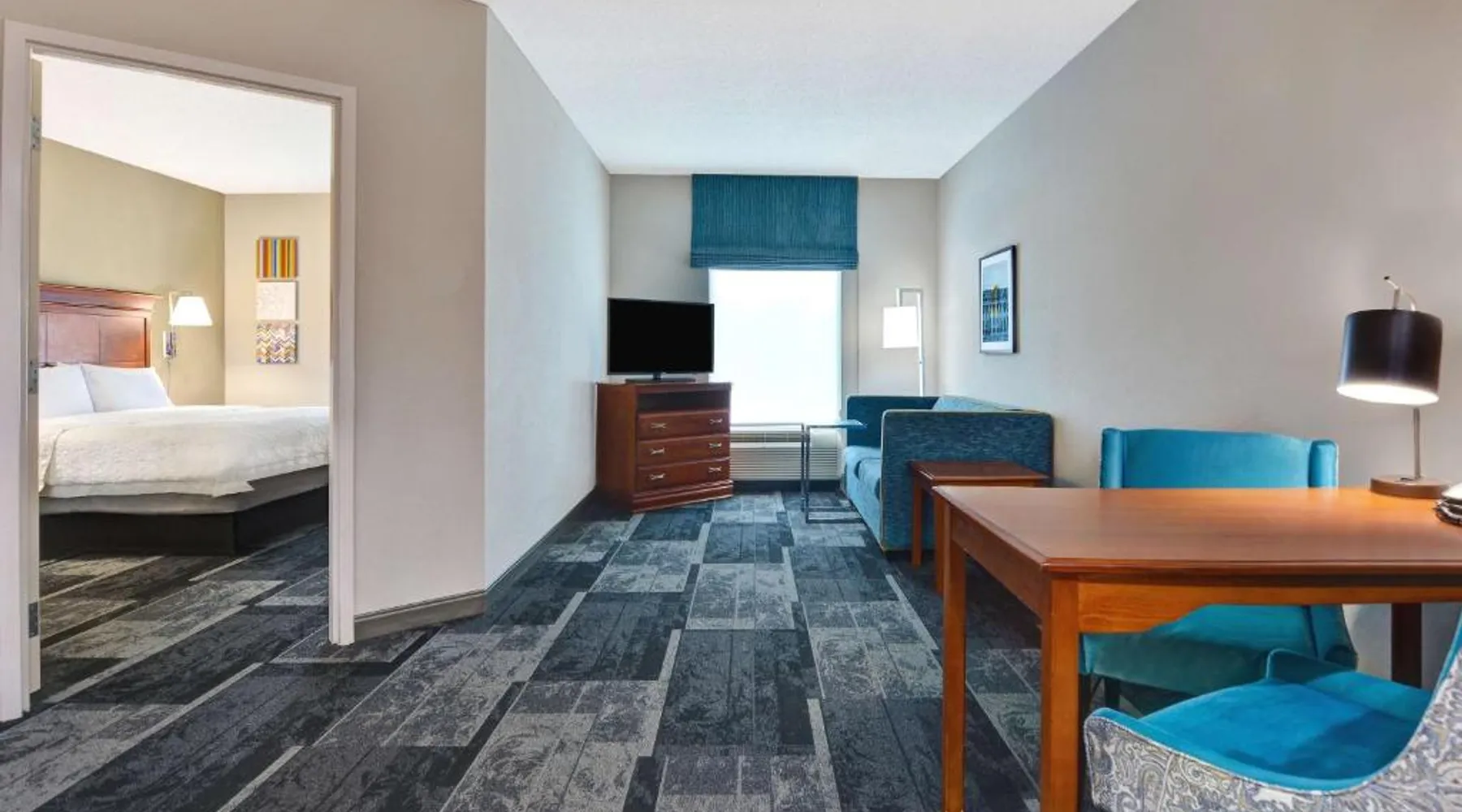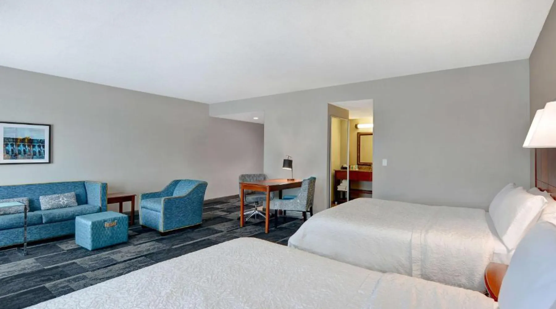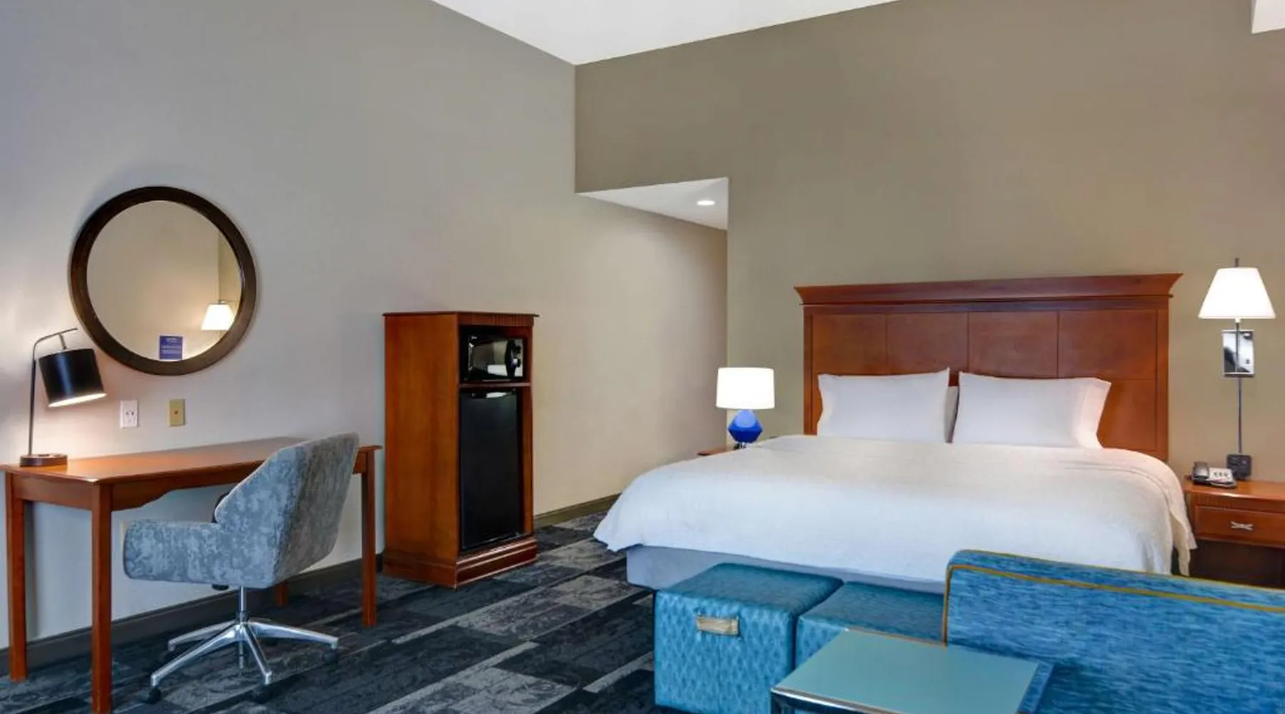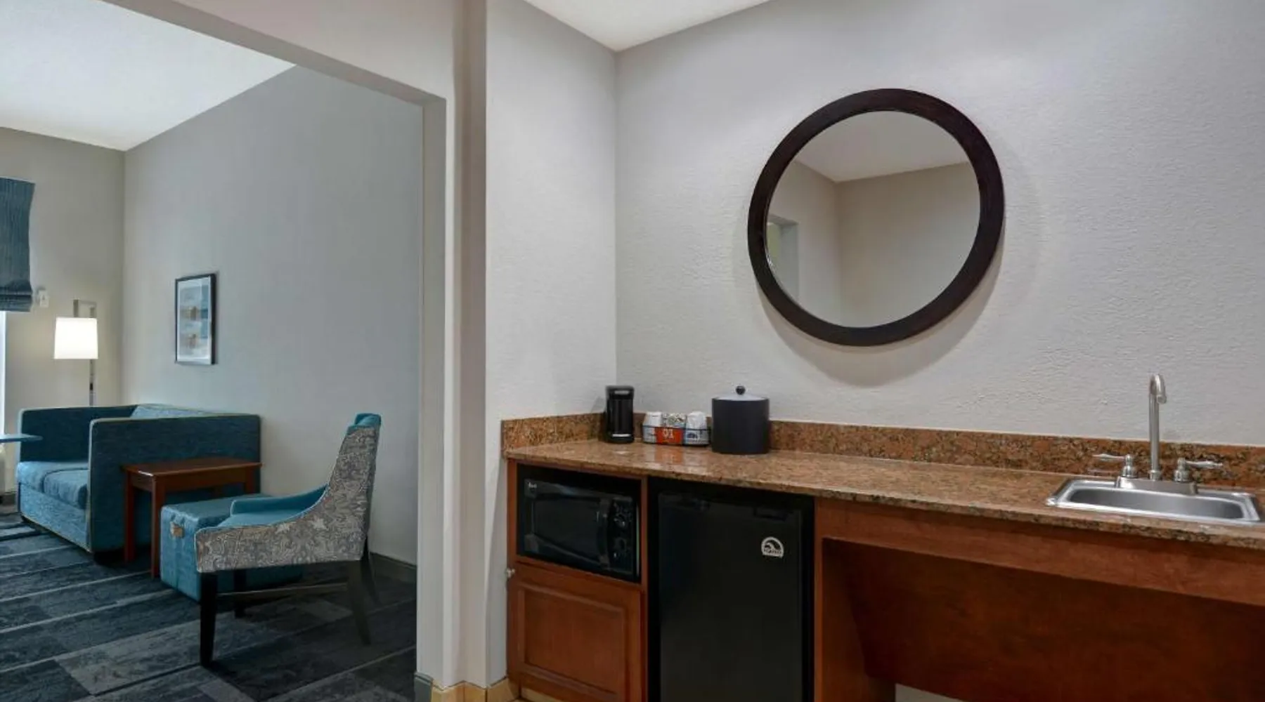 This Birmingham Hampton Inn is located just off Interstate 459. It is less than a mile from one of the largest shopping centers in the Southeast, Riverchase Galleria. Rooms at Hampton Inn & Suites Birmingham-Hoover-Galleria have seating areas and work desks, as well as microwaves and fridges. Free Wi-Fi and a 32-inch LCD HD TV are also included. The Birmingham-Hoover Hampton Inn offers many amenities including a business center and a gift shop. There is a fitness center, as well as an indoor pool. This Hampton Inn is located in the scenic foothills of the Appalachian Mountains. Oak Mountain State Park is just over 10 miles from Hampton Inn & Suites Birmingham-Hoover-Galleria. Downtown Birmingham is 20 minutes away. This suite has a view of the Galleria and includes a spa bath and a mini-bar.