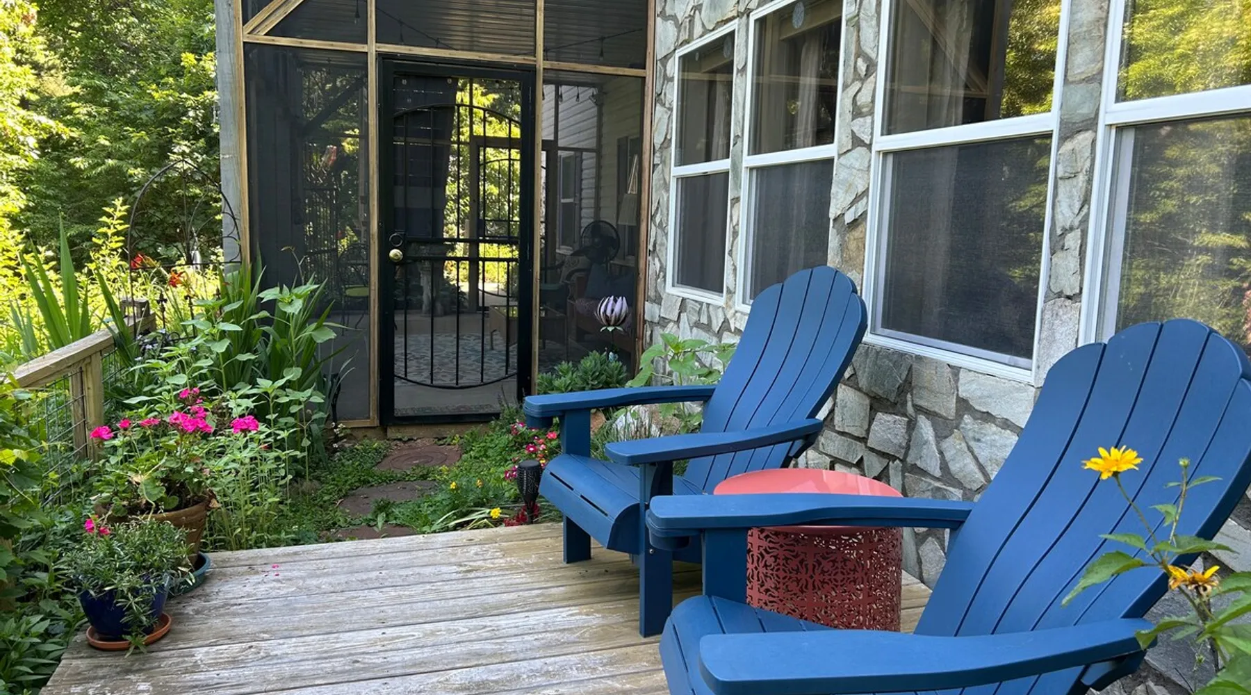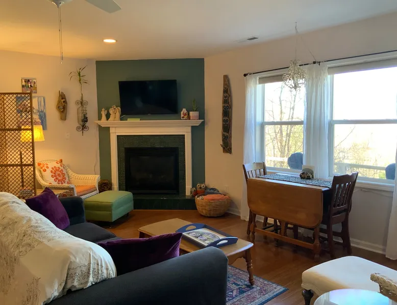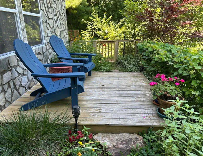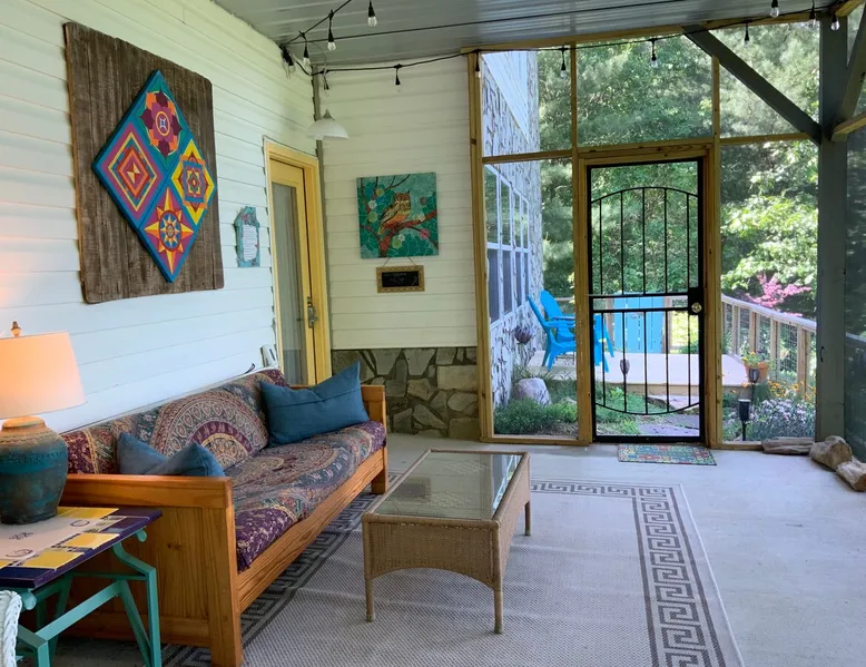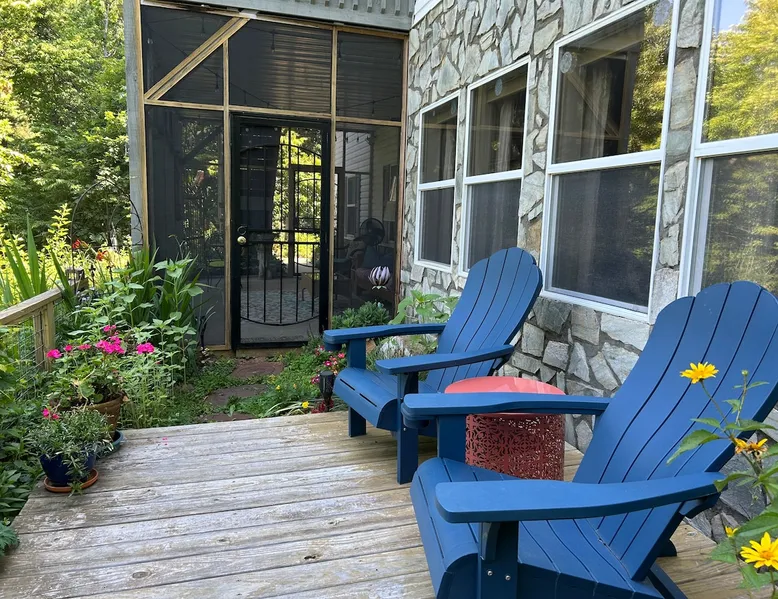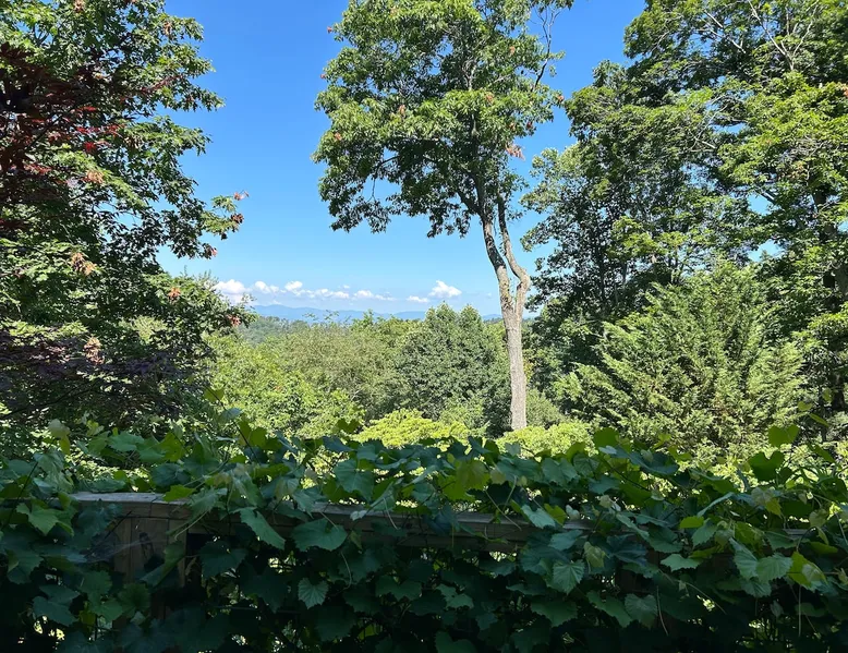Come relax and enjoy the views from the private screened in porch, private guest garden with sun deck, or from inside the apt. The choice is yours. At the end of the day, have a restful evening in the comfy king size bed. Mornings are easy with coffee, tea, cereal, or oatmeal. Internet password is on the fridge and you can log onto your favorite streaming accounts. We thoroughly clean and disinfect after every guest. No smoking anywhere on the property. The space The apt is one large room plus a full bath (with tub/shower combo). It’s on the lower level of our home but completely private. It's spacious and comfy with a view from the sofa and king size bed. The large screened porch has a sofa and chair to enjoy the view even if its' rainy. There's a guest garden with deck for another option to enjoy the view. All bed linens are washed after every guest. The kitchenette area does NOT have a stove but DOES have a sink, fridge, microwave, toaster oven, coffee maker, and electric tea kettle. We provide milk, butter, and jams, coffee, and a variety of tea. Guest access Guests will have the studio apt, the screened porch and the guest garden with deck. All of these areas have a year round mountain view. The apt is on the lower level of our home but it is totally private. Other things to note NO DOGS. We are on the side of a mountain with no dog friendly grassy areas. We have bears and coyotes that frequently pass through. It’s not a safe place for dogs. Our driveway is a bit steep but the designated guest parking area is near the garage and very level. There is a turn around so you can face forward to go back down the driveway. The private entrance to the studio apt is via sidewalk next to the garage. We have a motion sensor light near the parking area. The apt is private but is on the lower level of our home. No smoking , no vaping, no fireworks, on the property, no burning of candles or incense.