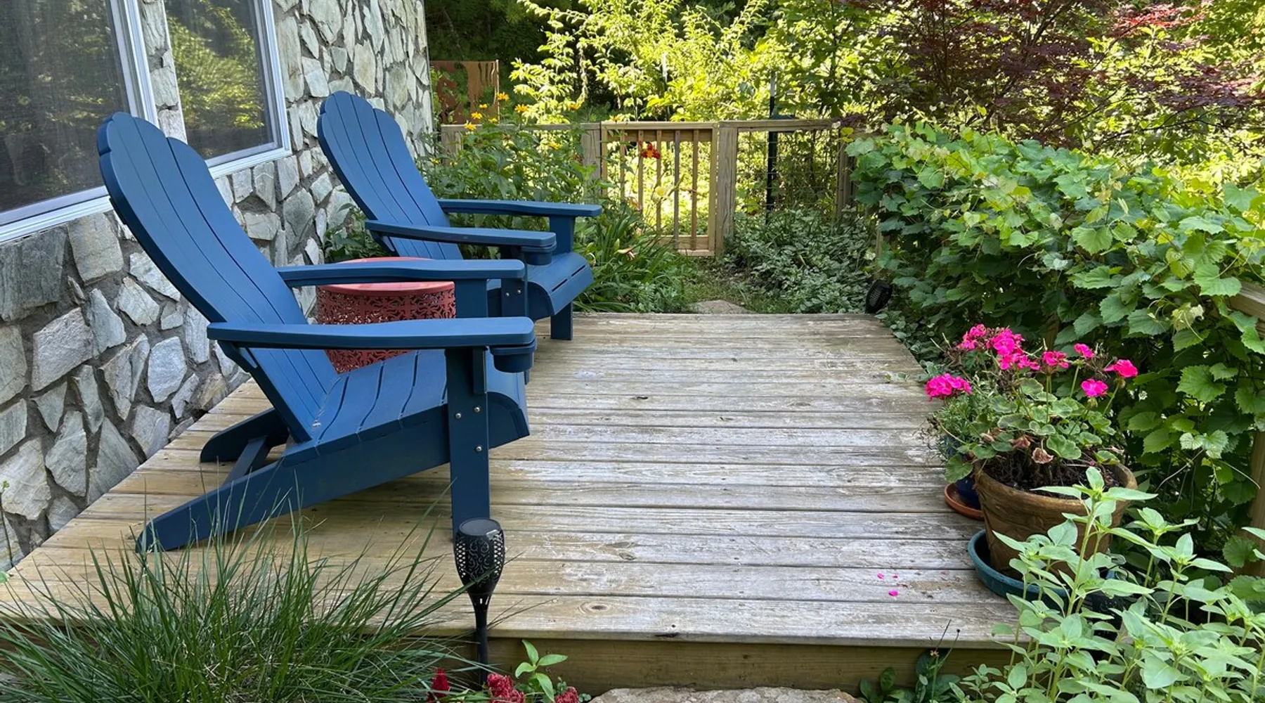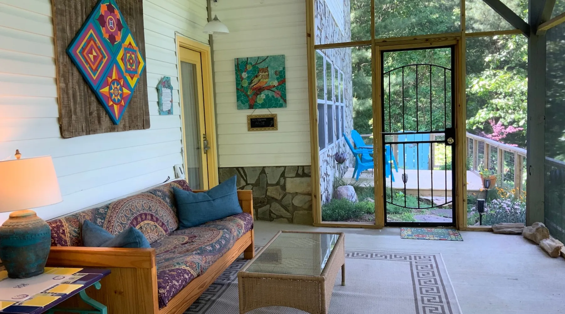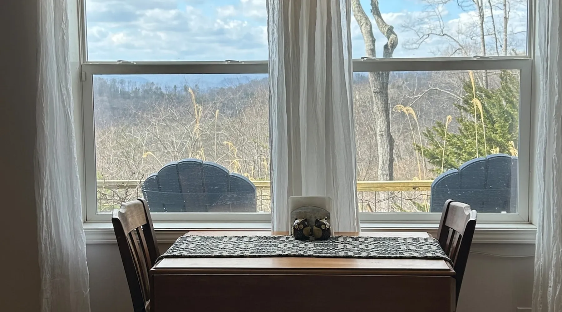 Come relax and enjoy the views from the private screened in porch, private guest garden with sun deck, or from inside the apt. The choice is yours. At the end of the day, have a restful evening in the comfy king size bed. Mornings are easy with coffee, tea, cereal, or oatmeal. Internet password is on the fridge and you can log onto your favorite streaming accounts. We thoroughly clean and disinfect after every guest. No smoking anywhere on the property. The space The apt is one large room plus a full bath (with tub/shower combo). It’s on the lower level of our home but completely private. It's spacious and comfy with a view from the sofa and king size bed. The large screened porch has a sofa and chair to enjoy the view even if its' rainy. There's a guest garden with deck for another option to enjoy the view. All bed linens are washed after every guest. The kitchenette area does NOT have a stove but DOES have a sink, fridge, microwave, toaster oven, coffee maker, and electric tea kettle. We provide milk, butter, and jams, coffee, and a variety of tea. Guest access Guests will have the studio apt, the screened porch and the guest garden with deck. All of these areas have a year round mountain view. The apt is on the lower level of our home but it is totally private. Other things to note NO DOGS. We are on the side of a mountain with no dog friendly grassy areas. We have bears and coyotes that frequently pass through. It’s not a safe place for dogs. Our driveway is a bit steep but the designated guest parking area is near the garage and very level. There is a turn around so you can face forward to go back down the driveway. The private entrance to the studio apt is via sidewalk next to the garage. We have a motion sensor light near the parking area. The apt is private but is on the lower level of our home. No smoking , no vaping, no fireworks, on the property, no burning of candles or incense.