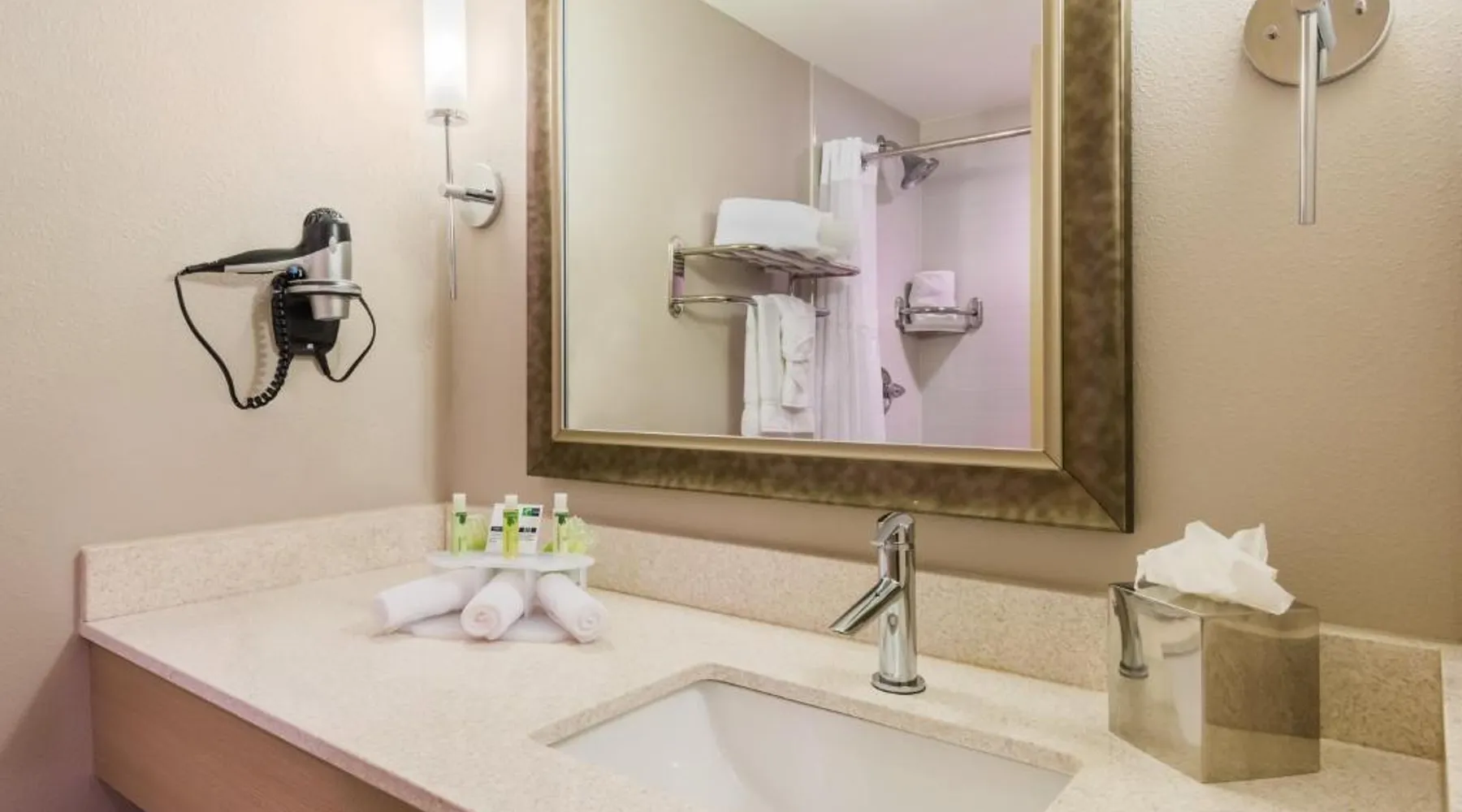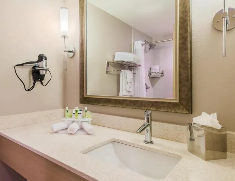 Featuring an outdoor pool and free Wi-Fi access, this Fairhope, Alabama hotel is 2 miles from Fairhope Municipal Pier. Thomas Hospital is a short drive away. A TV and microwave are included in all Holiday Inn Express Fairhope rooms. Ironing facilities, a desk, and a private bathroom with a hairdryer are also featured. A fitness center is provided on site, as well as a business center. Laundry facilities and dry cleaning services are available. The property provides free parking. Downtown Fairhope is a 4-minute drive from the Fairhope - Point Clear Holiday Inn Express. Lakewood Country Club is a 7-minute drive from the hotel, and Founder's Park is a mile away. This room has a microwave, TV, and private bathroom with hairdryer.