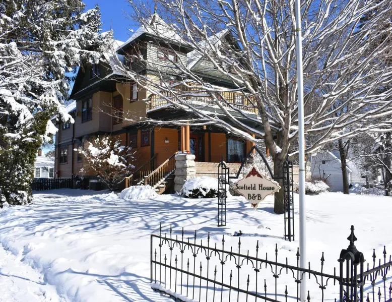 Comfortable Accommodations: The Scofield House B&B in Sturgeon Bay offers adults-only rooms with air-conditioning, private bathrooms, and modern amenities including TV and free WiFi. Leisure Facilities: Guests can enjoy water sports facilities, a fitness room, mini golf, and a hot tub. Additional amenities include a spa bath, fireplace, and walk-in shower. Breakfast and Services: A full English or Irish breakfast is served daily. The property provides housekeeping, a fitness room, and free on-site parking. Local Attractions: Located 53 mi from Green Bay–Austin Straubel International Airport, the B&B is a 17-minute walk from the Door County Maritime Museum. Nearby activities include fishing, skiing, and boating. This double room's standout feature is the fireplace. This air-conditioned double room includes a TV with cable channels and a private bathroom. The unit offers 1 bed.