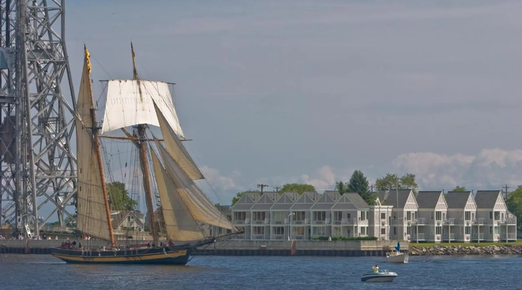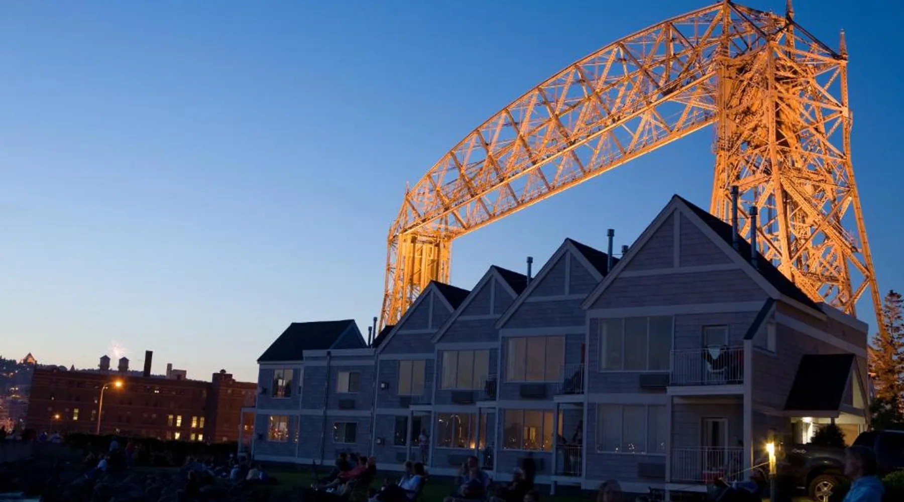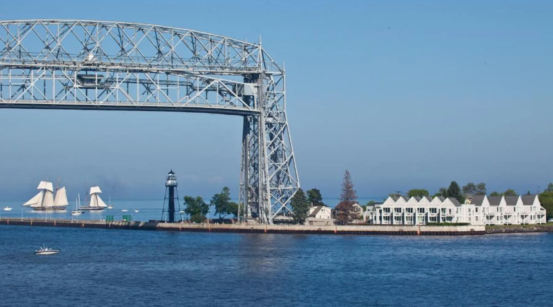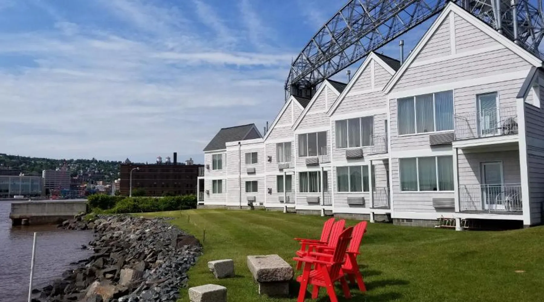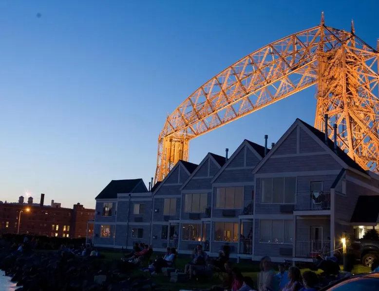 Situated between Lake Superior and Duluth Harbor Basin, this waterfront hotel is nestled at the foot of the Duluth Aerial Lift Bridge. Free Wi-Fi and a flat-screen TV are provided in every guest room. All waterfront suites at South Pier Inn have private balconies, which provide the opportunity for our guests to look eye-to-eye with ships captains, as international vessels enter the harbor under the Aerial Lift Bridge. A refrigerator and tea and coffee-making amenities are also provided in each room. Guests can enjoy a walk or enjoy a sunset from the private 400 foot shoreline path at South Pier Inn. A complimentary continental breakfast is served each morning. Duluth Entertainment Convention Center, located across the harbor, is less than one mile away. Duluth city center, Great Lakes Aquarium and Bayfront Festival Park are a 5 minute drive from this hotel. This suite has a balcony, fireplace and spa bath.