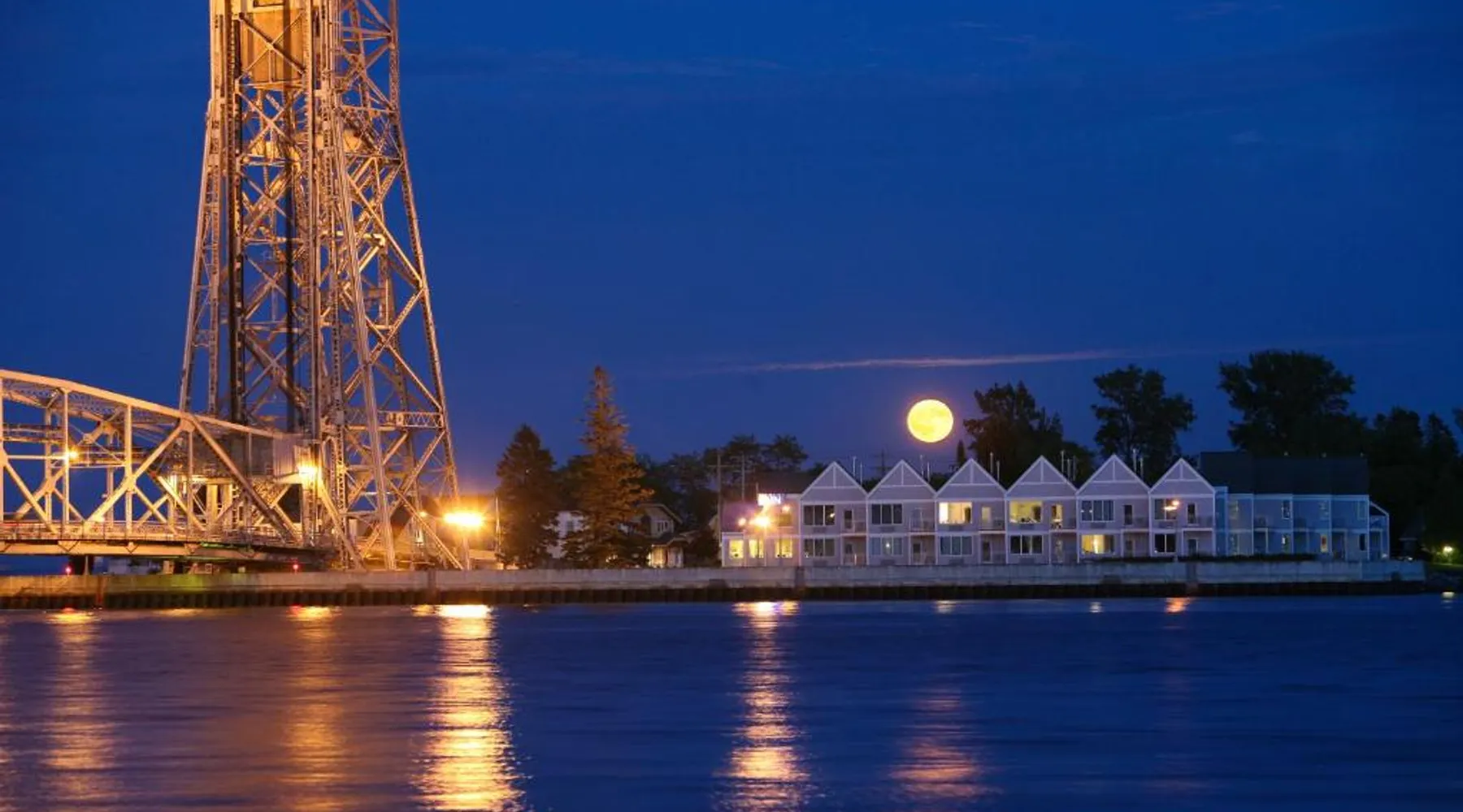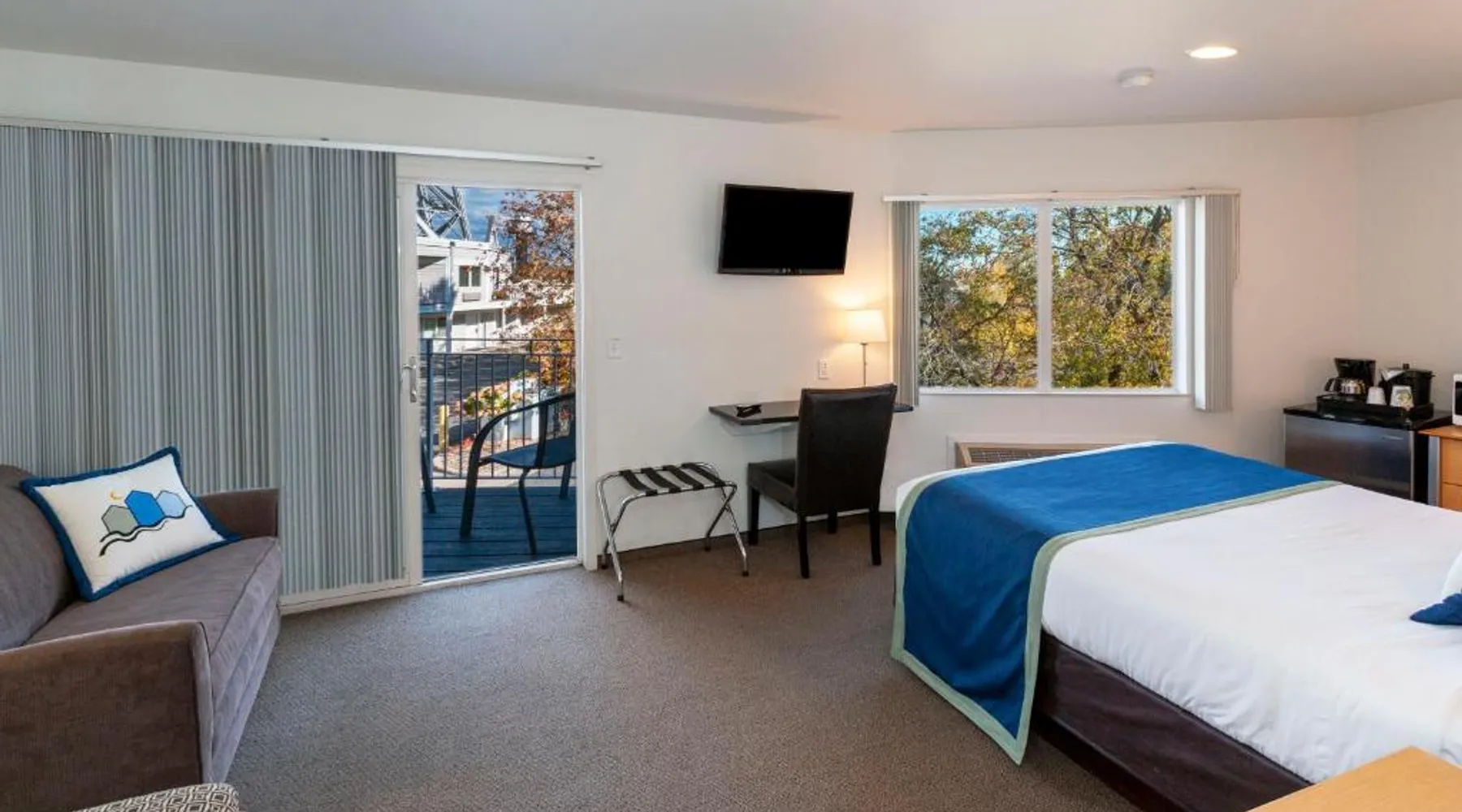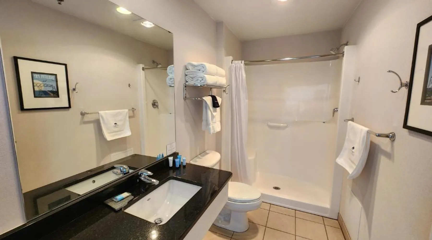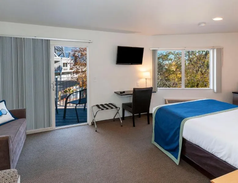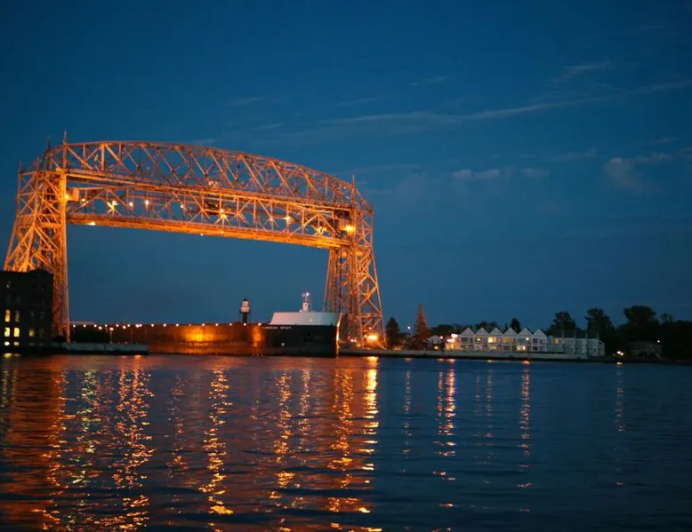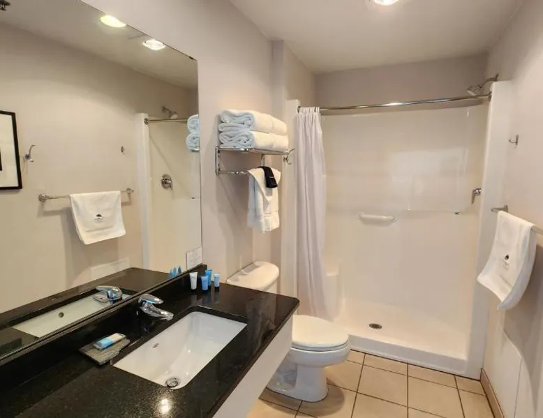 Situated between Lake Superior and Duluth Harbor Basin, this waterfront hotel is nestled at the foot of the Duluth Aerial Lift Bridge. Free Wi-Fi and a flat-screen TV are provided in every guest room. All waterfront suites at South Pier Inn have private balconies, which provide the opportunity for our guests to look eye-to-eye with ships captains, as international vessels enter the harbor under the Aerial Lift Bridge. A refrigerator and tea and coffee-making amenities are also provided in each room. Guests can enjoy a walk or enjoy a sunset from the private 400 foot shoreline path at South Pier Inn. A complimentary continental breakfast is served each morning. Duluth Entertainment Convention Center, located across the harbor, is less than one mile away. Duluth city center, Great Lakes Aquarium and Bayfront Festival Park are a 5 minute drive from this hotel. This suite has a balcony, fireplace and spa bath.