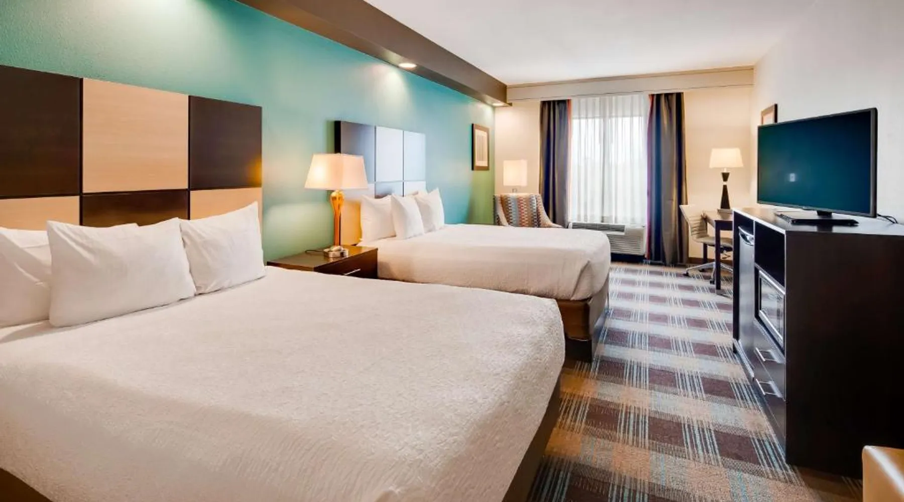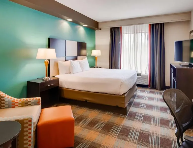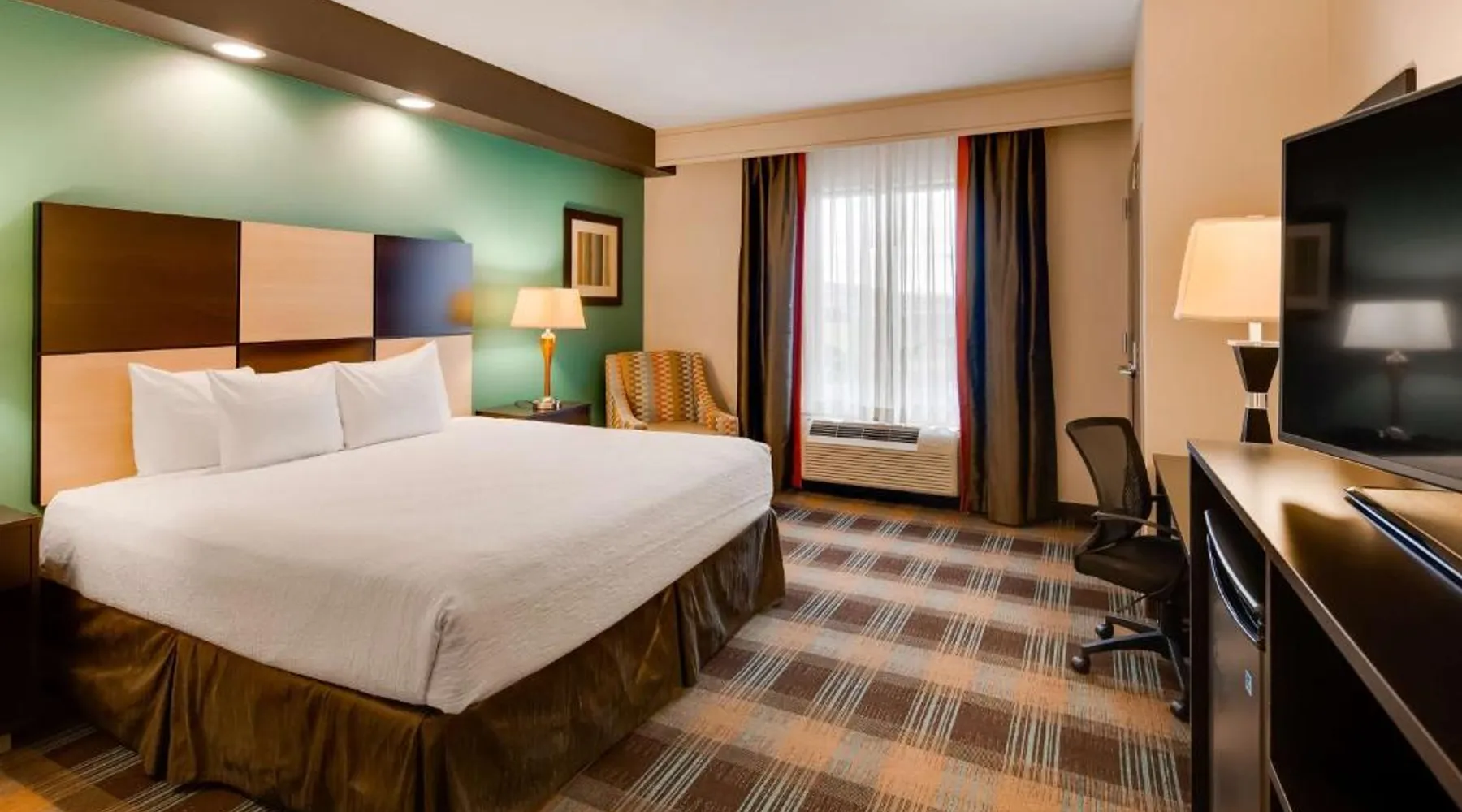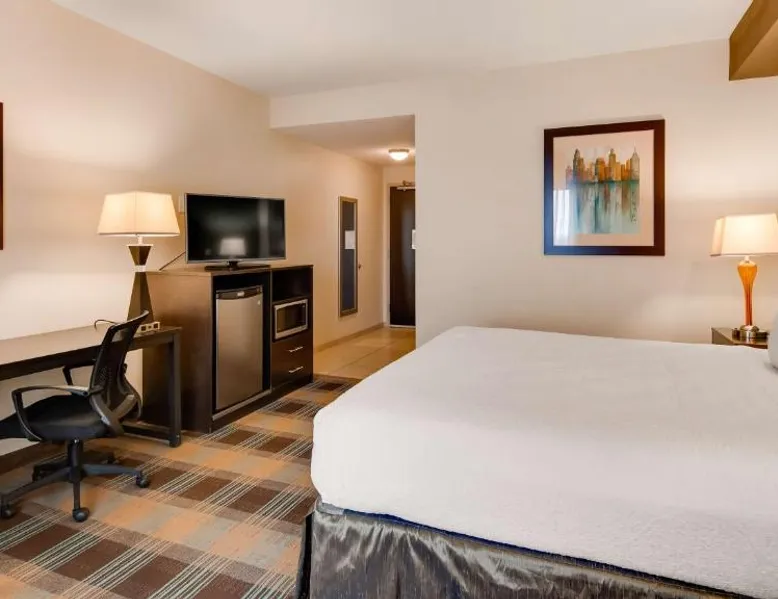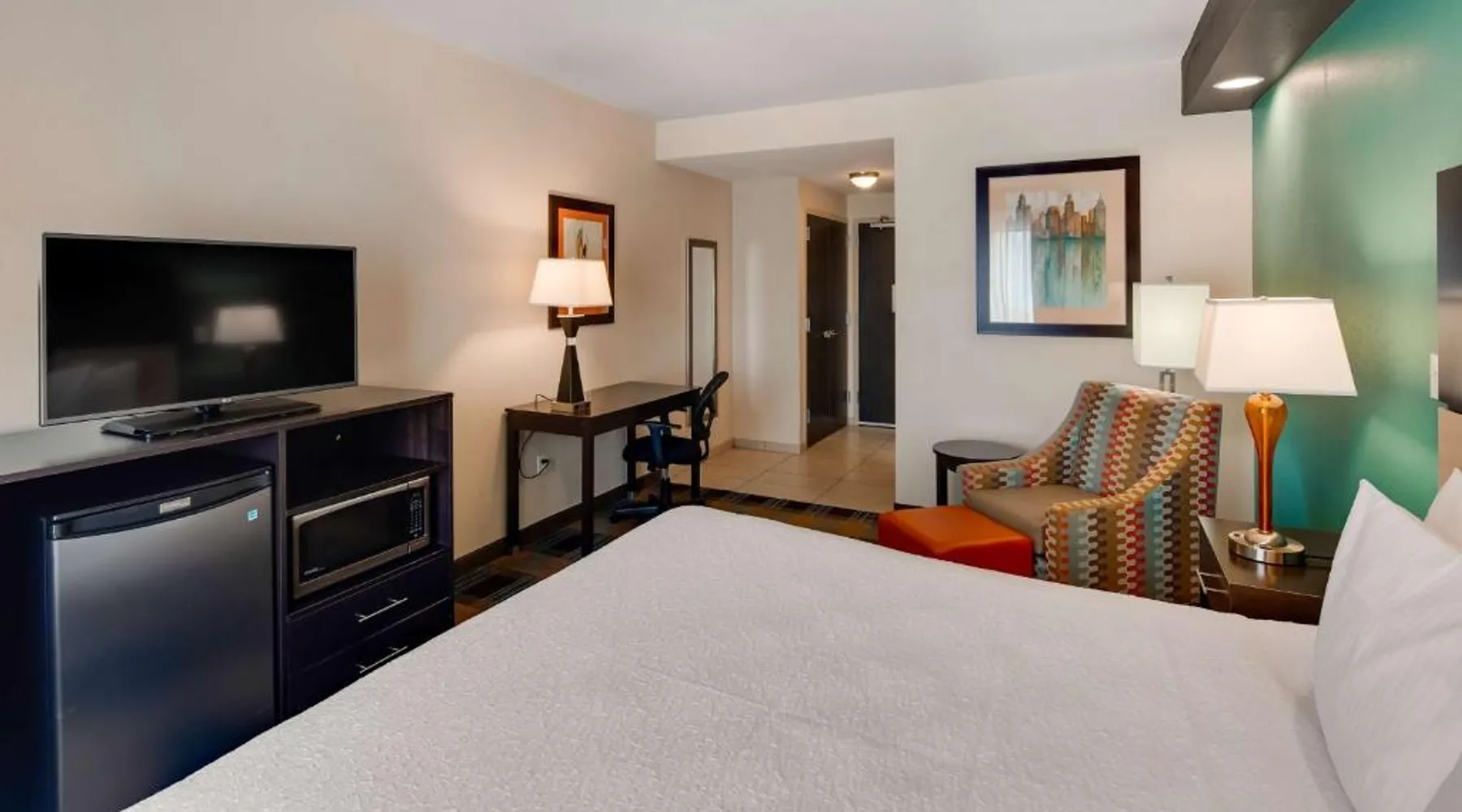 Comfortable Accommodations: Best Western Plus Atrium Inn & Suites in Clarksville offers family rooms with air-conditioning, private bathrooms, and modern amenities including tea and coffee makers, refrigerators, and work desks. Exceptional Facilities: Guests can enjoy a fitness center, seasonal outdoor swimming pool, and free WiFi. Additional facilities include a lounge, fitness room, elevator, 24-hour front desk, minimarket, business area, outdoor seating, and express check-in and check-out services. Delicious Breakfast: A complimentary American buffet breakfast is served daily, providing a great start to the day. Convenient Location: Located 50 mi from Nashville International Airport, the hotel is near attractions such as Dunbar Cave (5.6 mi), Customs House Museum and Cultural Center (7.5 mi), and Fort Defiance Civil War Park & Interpretive Center (8.7 mi). Guests appreciate the attentive staff, room cleanliness, and breakfast provided by the property. The double room offers air conditioning and a coffee machine, as well as a private bathroom featuring a hairdryer. The unit offers 1 bed.