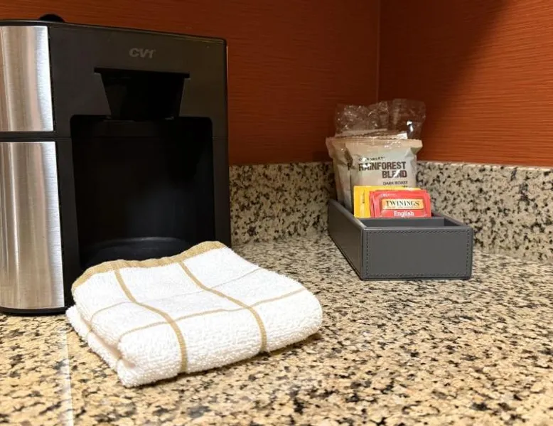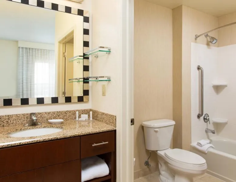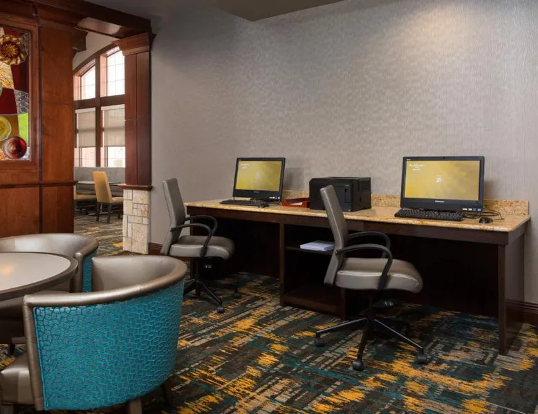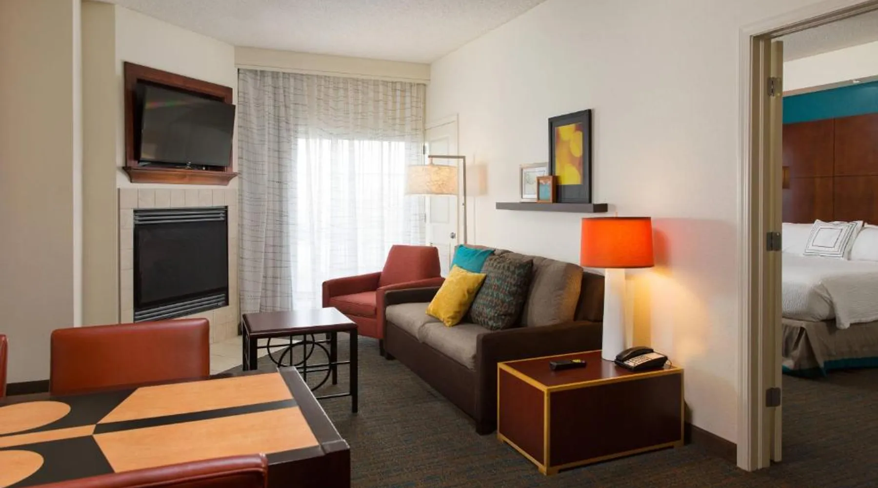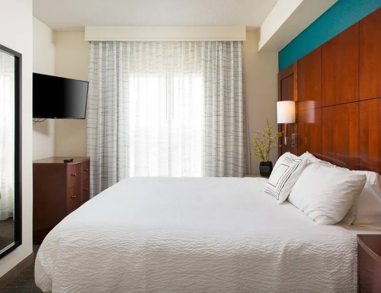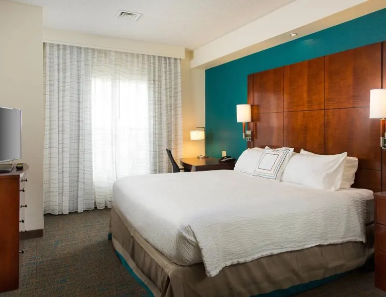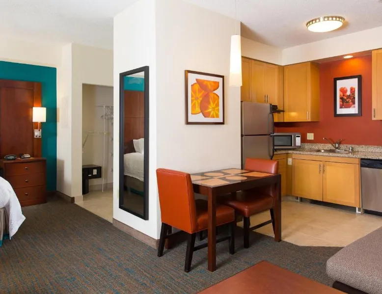 Comfortable Accommodations: Residence Inn Kansas City Airport in Kansas City offers family rooms with air-conditioning, private bathrooms, and fully equipped kitchens. Each room includes a work desk, sofa bed, and free WiFi. Dining Options: A variety of breakfast options are available, including continental, American, buffet, and vegetarian. Additional amenities include a lounge, outdoor fireplace, and barbecue facilities. Location: Located 2.5 mi from Kansas City International Airport, the hotel is near attractions such as the United Federation Of Doll Clubs (17-minute walk) and Lake Waukomis (6.2 mi). Featuring a full kitchen, this studio also offers a flat-screen cable TV with separate seating area and sofa bed.
