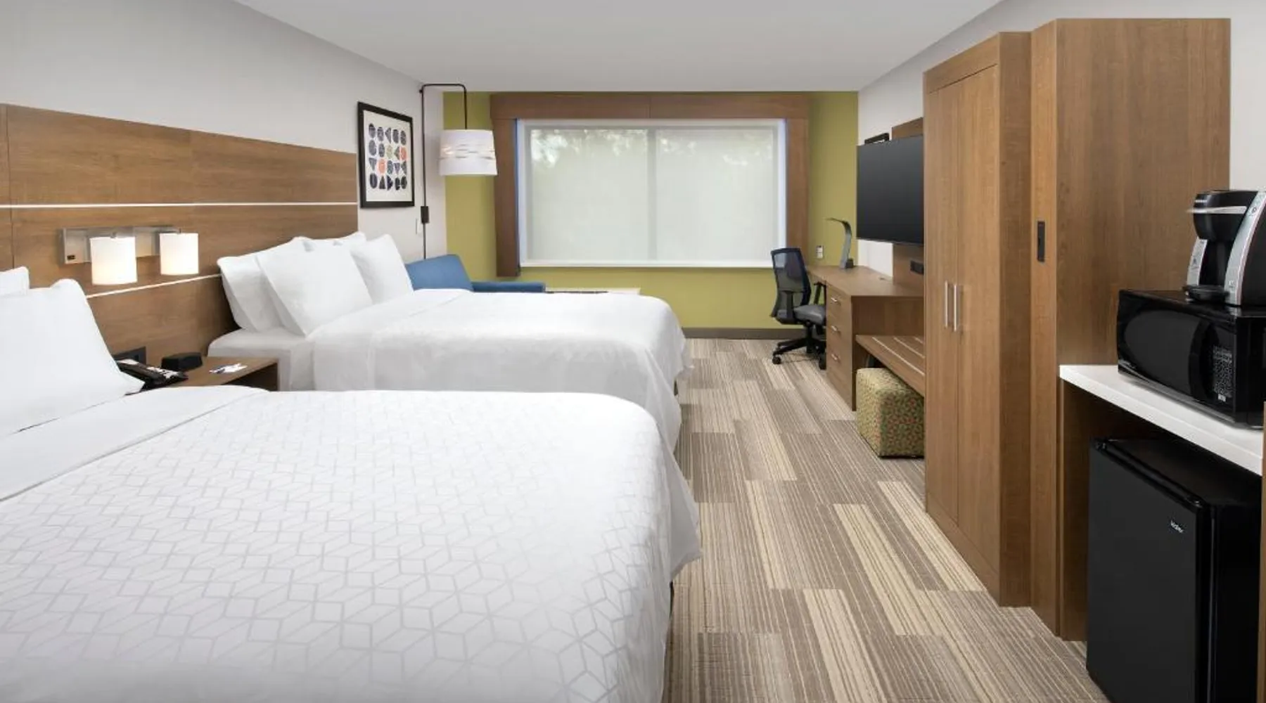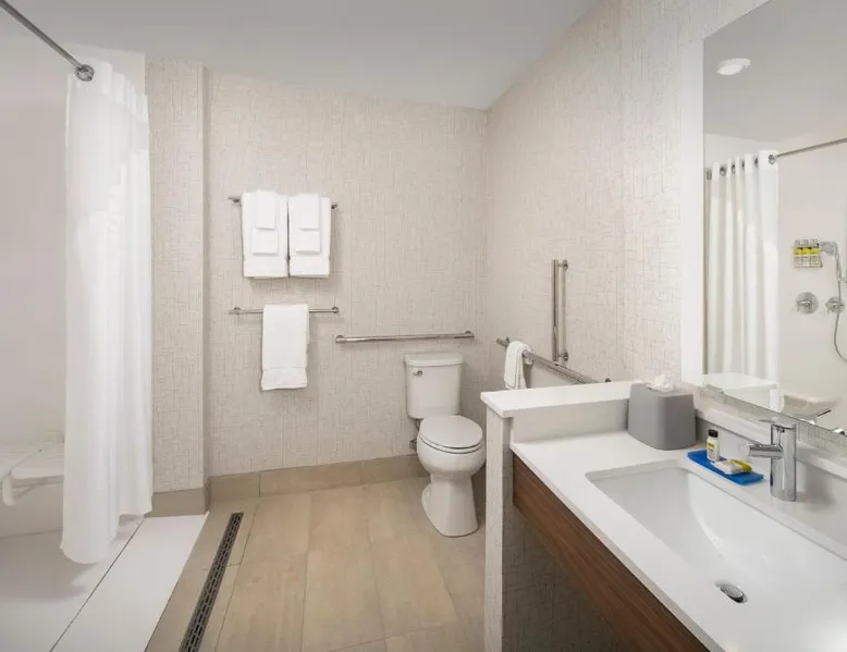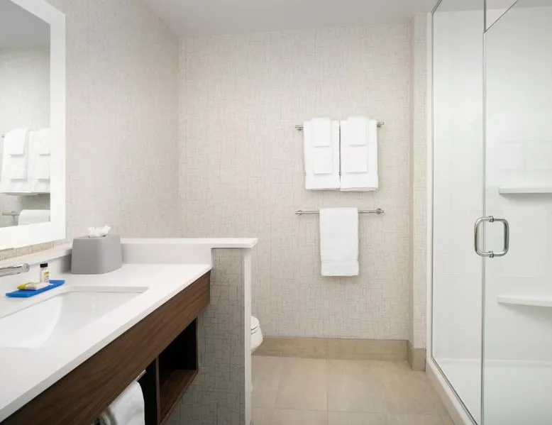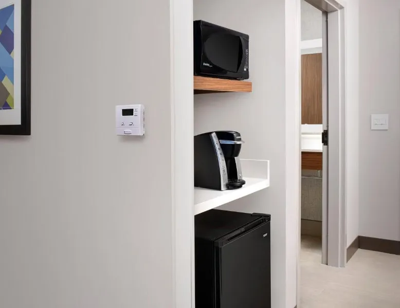 Comfortable Accommodations: Rooms feature air-conditioning, private bathrooms, tea and coffee makers, hairdryers, and free toiletries. Additional amenities include refrigerators, work desks, and TVs. Facilities and Services: Guests enjoy a fitness center, seasonal outdoor swimming pool, and free WiFi. The hotel offers a lounge, fitness room, elevator, 24-hour front desk, minimarket, and outdoor seating area. Dining Options: A continental buffet breakfast is served daily. The property also provides free on-site parking and a variety of dining options nearby. Location and Attractions: Located in Kingsland, the hotel is 23 mi from Jacksonville International Airport. Nearby attractions include Catty Shack Ranch Wildlife Sanctuary (24 mi) and Amelia Island Historic District (25 mi). The suite provides air conditioning, a tea and coffee maker, as well as a private bathroom featuring a bath and a hairdryer. The unit offers 2 beds.