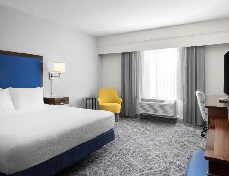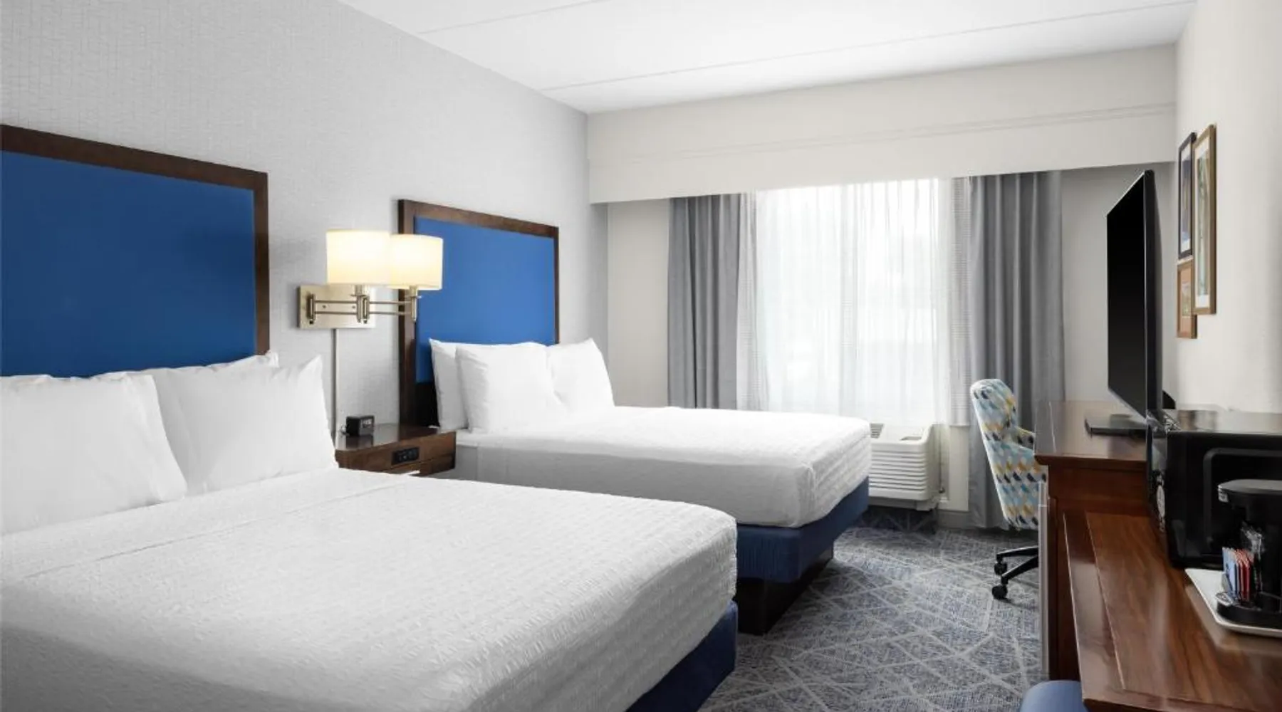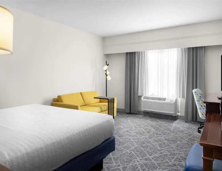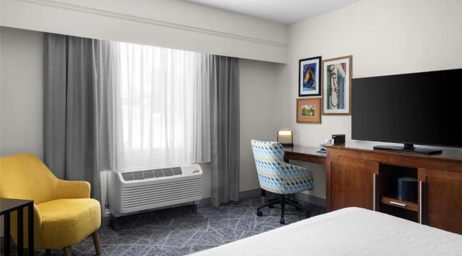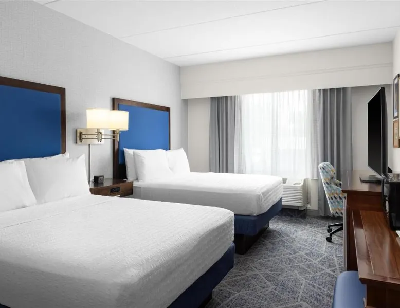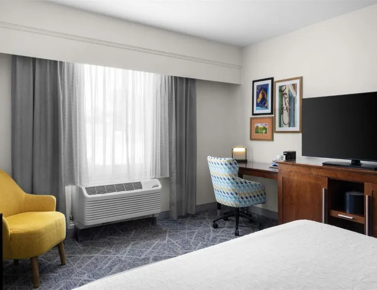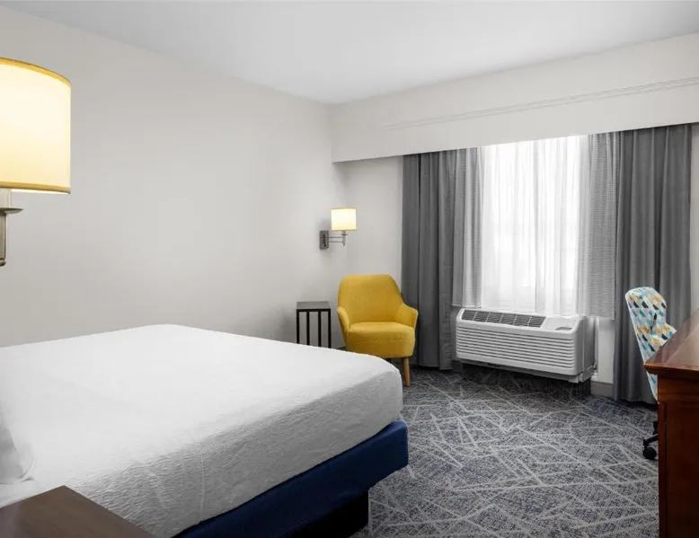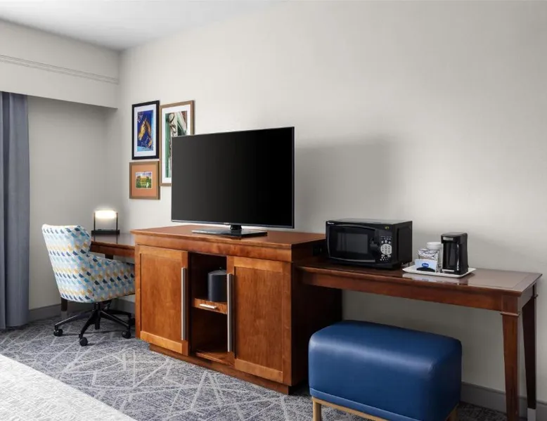 Comfortable Accommodations: Hampton Inn Lexington Medical Center in Lexington offers family rooms with air-conditioning, free WiFi, and modern amenities. Guests enjoy private check-in and check-out services, a lounge, and a fitness center. Dining and Leisure: The hotel features a restaurant serving American cuisine, a pool bar, and a sun terrace. Additional facilities include a fitness room, outdoor fireplace, and free on-site private parking. Convenient Location: Located 6.2 mi from Blue Grass Airport, the property is near attractions such as The Arboretum (1.5 mi) and Rupp Arena (3.1 mi). Guests appreciate the room cleanliness, breakfast provided by the hotel, and the convenient location. This room offers hearing-accessible amenities, including a visual alarm system and notification devices for the doorbell, door knock and incoming telephone calls.