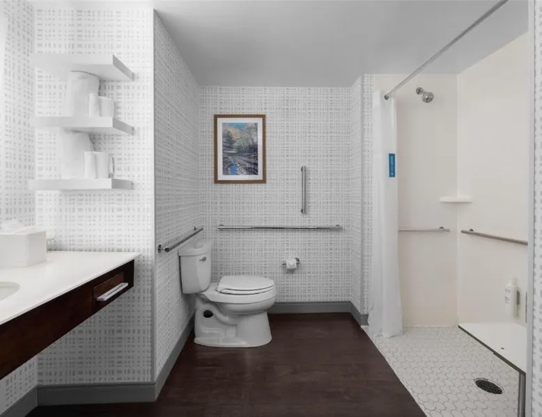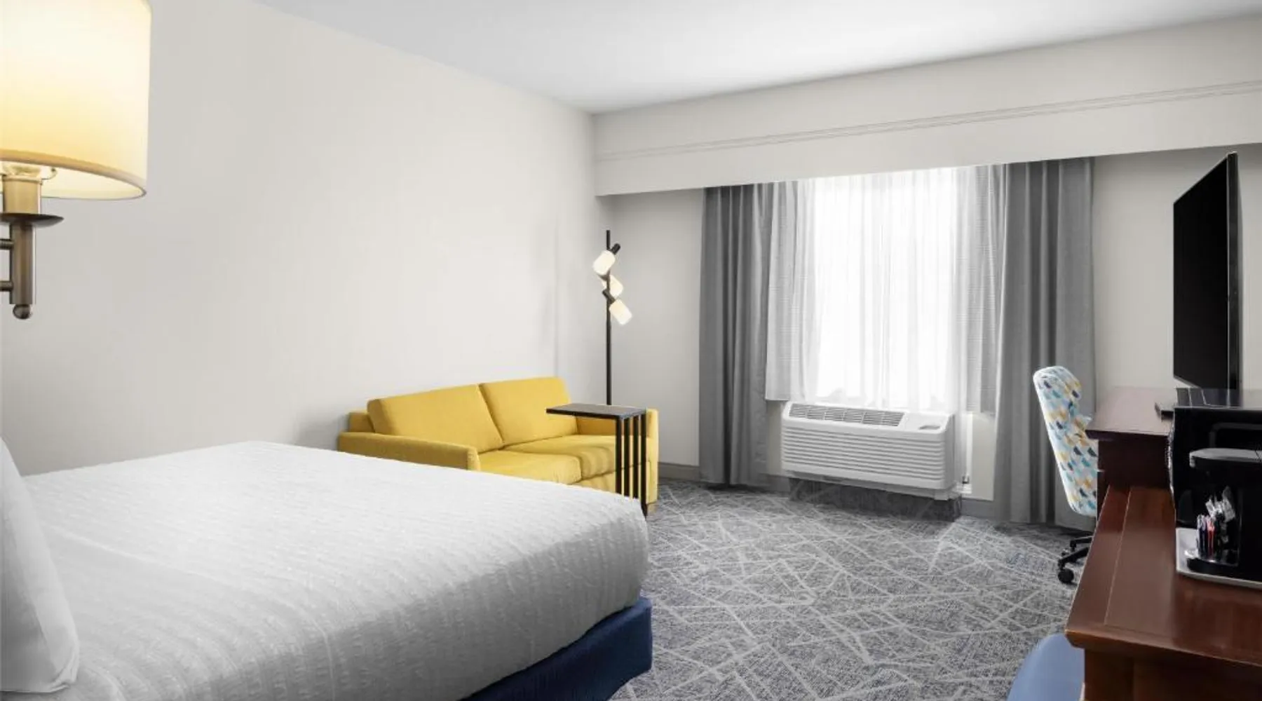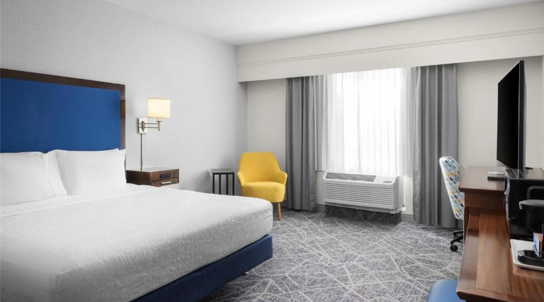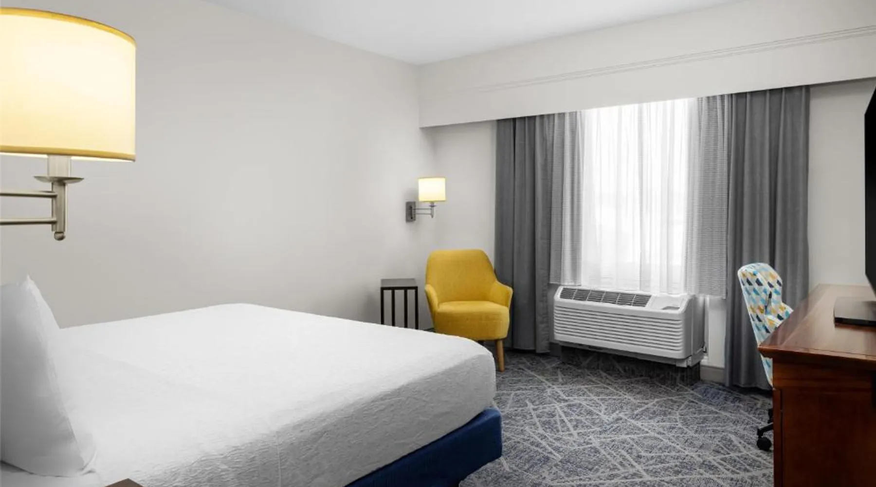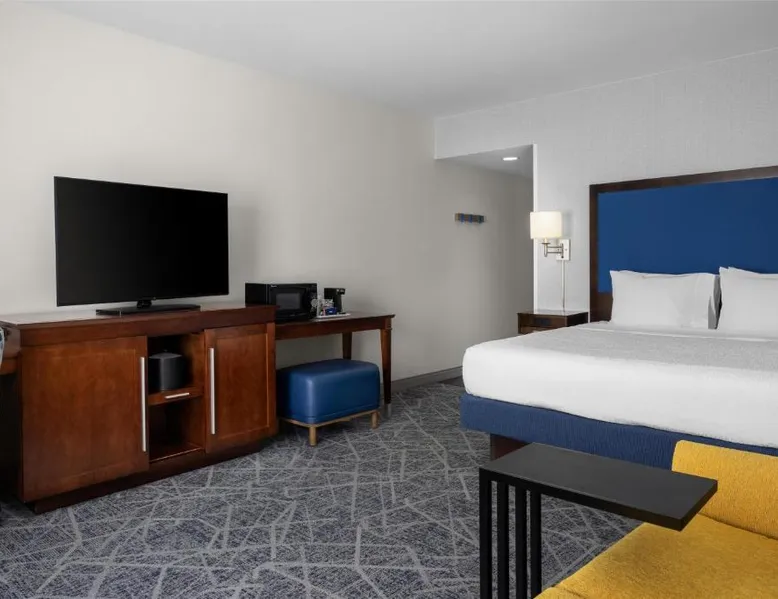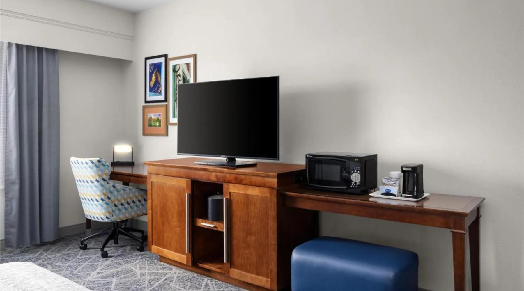 Comfortable Accommodations: Hampton Inn Lexington Medical Center in Lexington offers family rooms with air-conditioning, free WiFi, and modern amenities. Guests enjoy private check-in and check-out services, a lounge, and a fitness center. Dining and Leisure: The hotel features a restaurant serving American cuisine, a pool bar, and a sun terrace. Additional facilities include a fitness room, outdoor fireplace, and free on-site private parking. Convenient Location: Located 6.2 mi from Blue Grass Airport, the property is near attractions such as The Arboretum (1.5 mi) and Rupp Arena (3.1 mi). Guests appreciate the room cleanliness, breakfast provided by the hotel, and the convenient location. This room offers hearing-accessible amenities, including a visual alarm system and notification devices for the doorbell, door knock and incoming telephone calls.