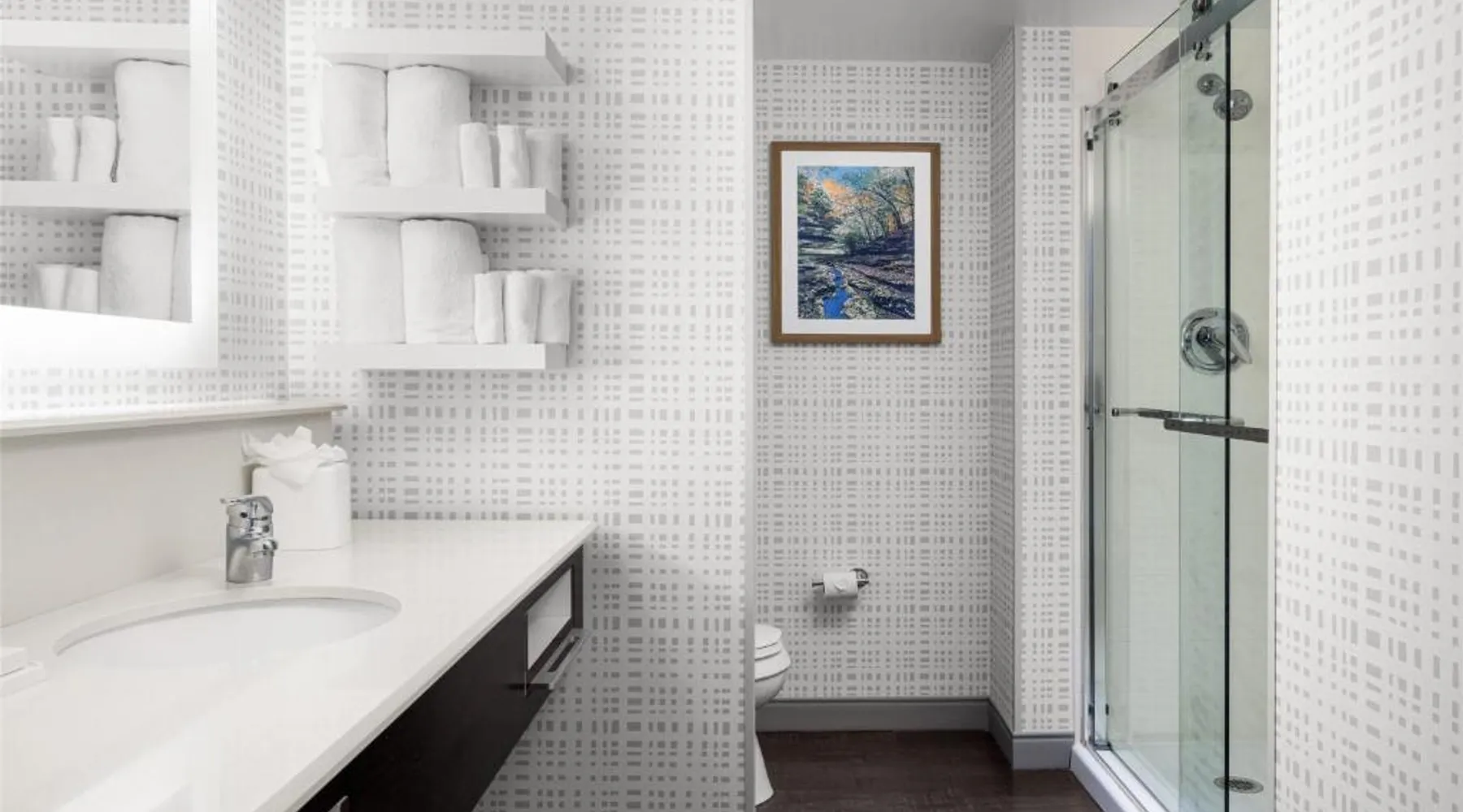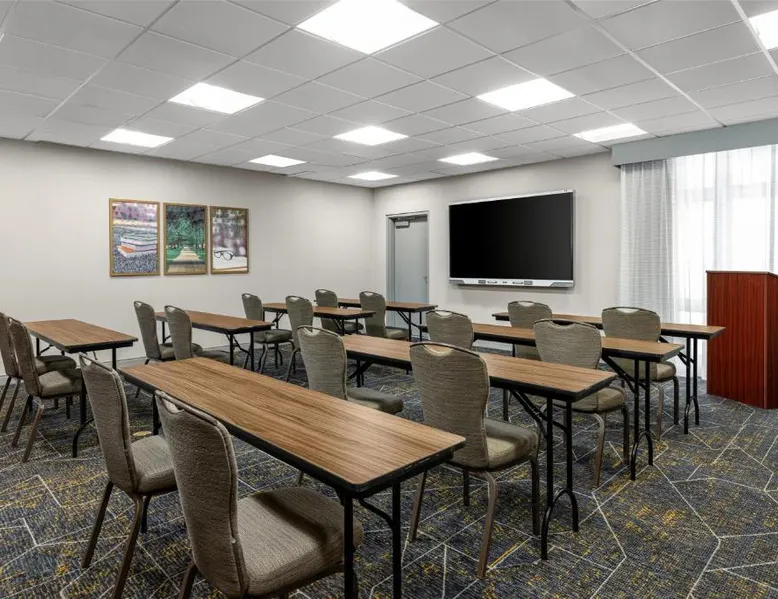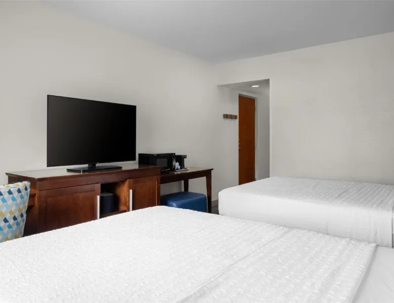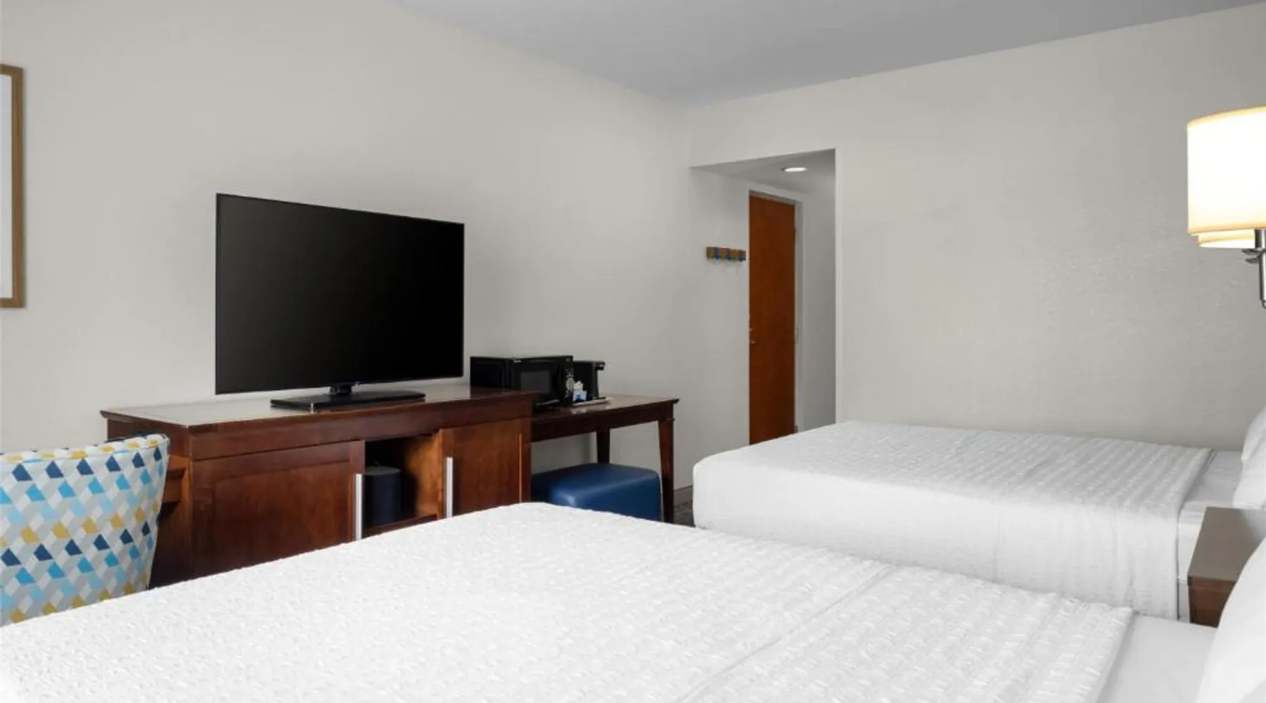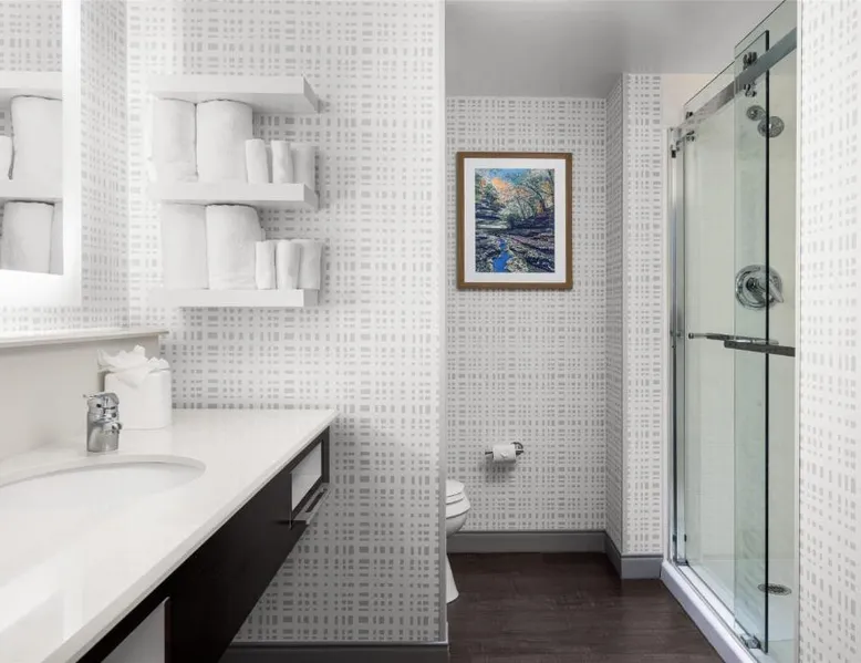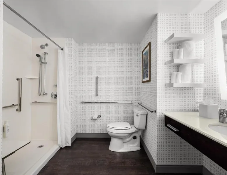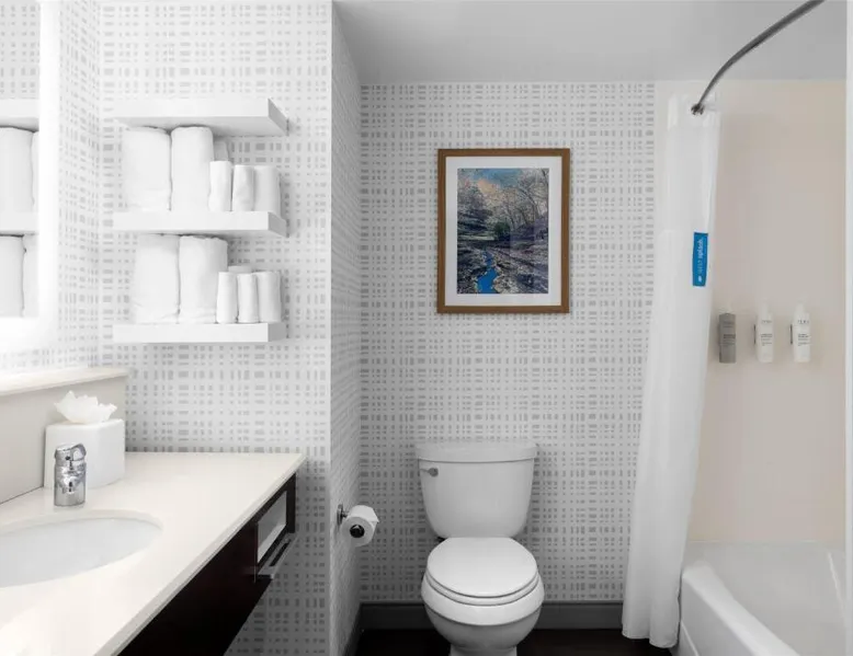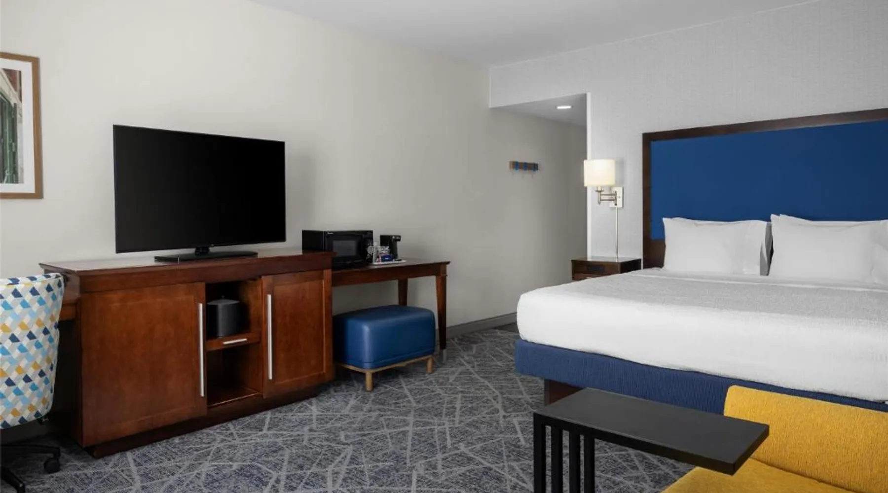 Comfortable Accommodations: Hampton Inn Lexington Medical Center in Lexington offers family rooms with air-conditioning, free WiFi, and modern amenities. Guests enjoy private check-in and check-out services, a lounge, and a fitness center. Dining and Leisure: The hotel features a restaurant serving American cuisine, a pool bar, and a sun terrace. Additional facilities include a fitness room, outdoor fireplace, and free on-site private parking. Convenient Location: Located 6.2 mi from Blue Grass Airport, the property is near attractions such as The Arboretum (1.5 mi) and Rupp Arena (3.1 mi). Guests appreciate the room cleanliness, breakfast provided by the hotel, and the convenient location. This room offers hearing-accessible amenities, including a visual alarm system and notification devices for the doorbell, door knock and incoming telephone calls.
