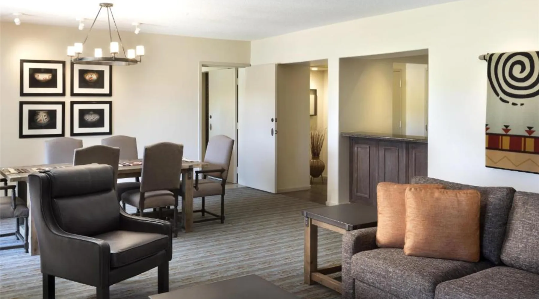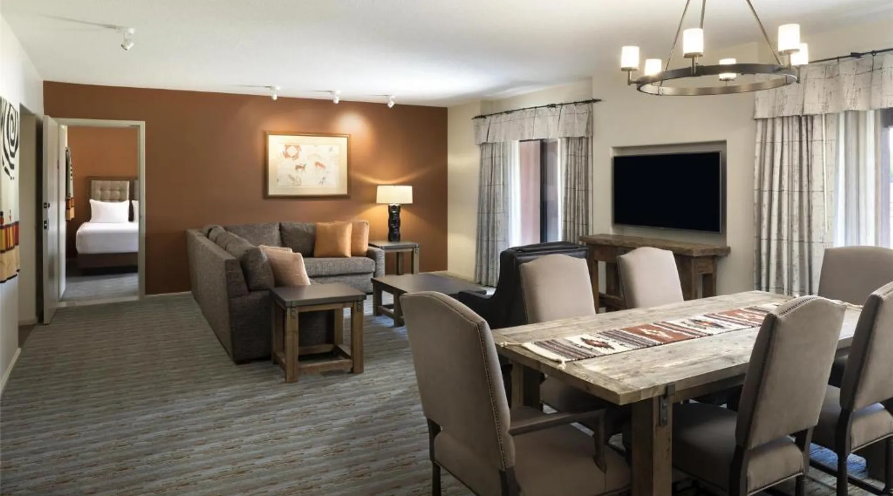 Featuring 4 restaurants, this resort is 30 minutes’ drive from Albuquerque Airport. Free Wi-Fi is offered in all rooms. A championship golf course is located on site. All rooms include a flat-screen cable TV, a work desk, an iPod docking station and coffee-making facilities at Hyatt Regency Tamaya Resort and Spa. Each private bathroom is equipped with a hairdryer. The Santa Ana Café offers New Mexican cuisine for breakfast, lunch and dinner at Hyatt Regency Tamaya Resort Santa Ana Pueblo. Corn Maiden restaurant offers dinner nightly. Rio Grande Lounge serves dinner during the week and lunch and dinner on the weekends. Guests can relax in 2 outdoor seasonal pools and 1 outdoor year round pool at Santa Ana Pueblo Hyatt Regency Tamaya Resort. A full service spa is also available. Rio Grande Nature Center State Park is 24 miles from Santa Ana Pueblo Hyatt Regency Tamaya Resort. Albuquerque Museum of Art and History is 30 minutes’ drive from the resort. Offering free toiletries, this quadruple room includes a private bathroom with a bath or a shower and a hairdryer. The quadruple room offers air conditioning, soundproof walls, a tea and coffee maker, a wardrobe and a flat-screen TV with cable channels. The unit has 2 beds.