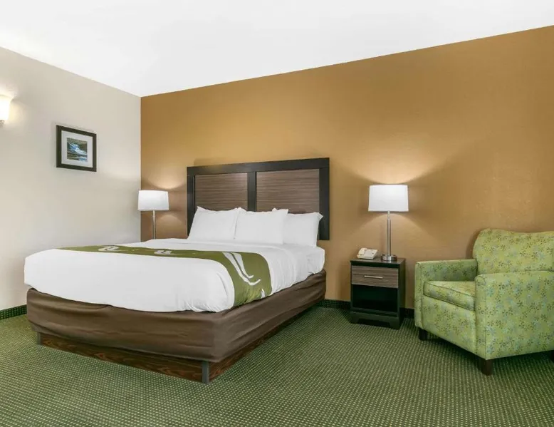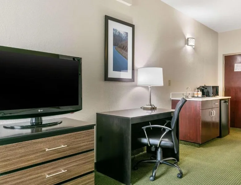 Comfortable Accommodations: Quality Inn Monteagle in Monteagle offers family rooms with air-conditioning, refrigerators, and work desks. Each room includes a tea and coffee maker, hairdryer, seating area, and TV. Exceptional Facilities: Guests enjoy a saltwater swimming pool, sun terrace, and free WiFi. Additional amenities include a lounge, outdoor seating area, picnic area, and free on-site private parking. Delicious Breakfast: A continental buffet breakfast is served daily, featuring warm dishes, fresh pastries, pancakes, cheese, fruits, and juice. Convenient Location: Located 53 mi from Chattanooga Metropolitan Airport and 22 mi from Great Stage Park, the inn provides easy access to local attractions. This family room has a tea and coffee maker, a seating area and a TV with cable channels. The unit has 2 beds.