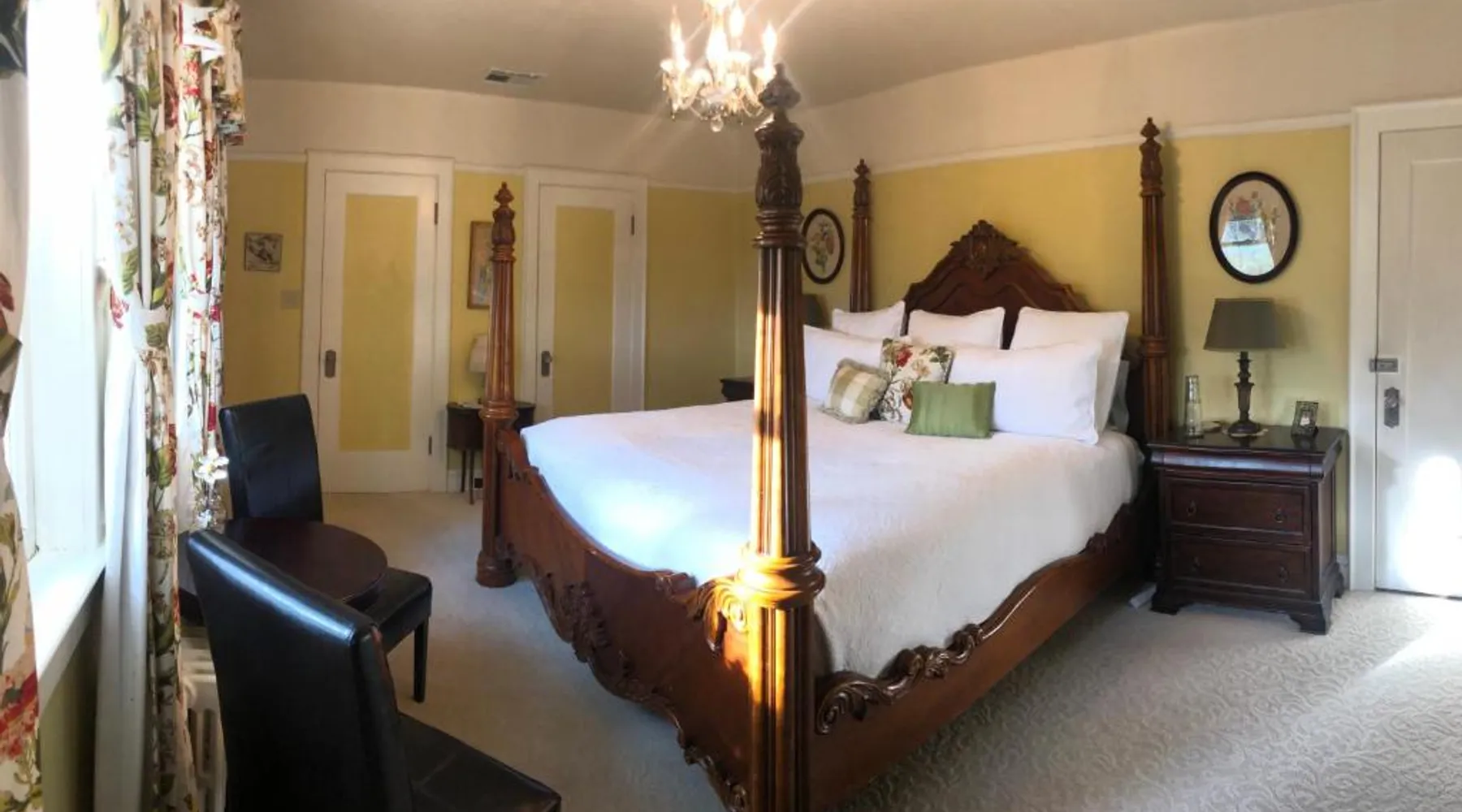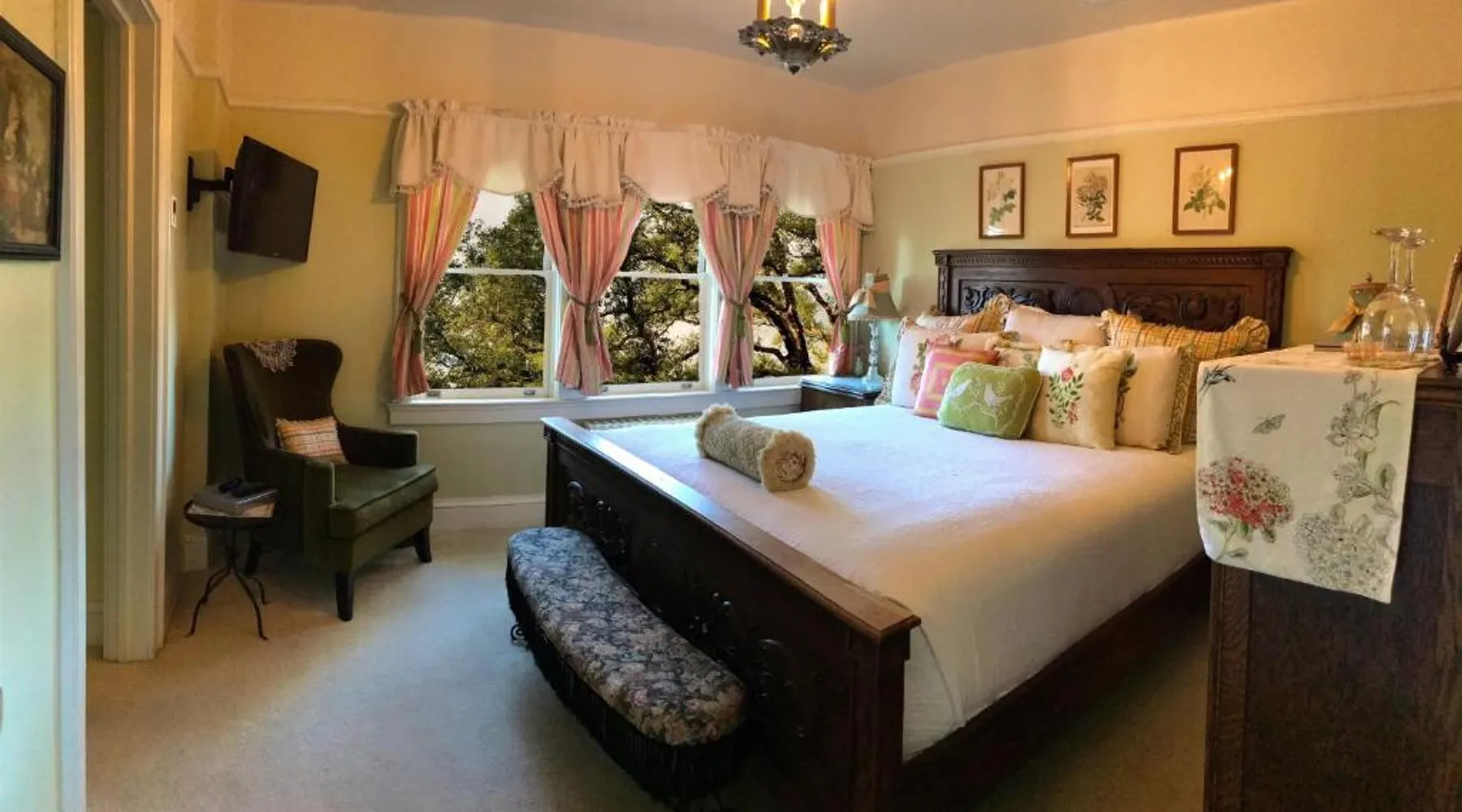Elegant Accommodations: The Inn on Knowles Hill Bed & Breakfast Hotel in Sonora offers a 5-star experience with a sun terrace, garden, and free WiFi. Guests enjoy private check-in and check-out, a lounge, and concierge services. Comfortable Amenities: The hotel features family rooms, an indoor play area, and a games room. Additional amenities include air-conditioning, bathrobes, and streaming services. Free on-site private parking is available. Delicious Breakfast: A variety of breakfast options are provided, including American, full English/Irish, vegetarian, gluten-free, and kosher. Local specialties, warm dishes, fresh pastries, and more are served daily. Prime Location: Located 60 mi from Merced Municipal Airport, the hotel offers mountain and garden views. Nearby attractions include the Sonora Pass and Yosemite National Park. The air-conditioned suite has 2 bedrooms and 1 bathroom with a bath and a shower. This suite features a wardrobe, flat-screen TV with streaming services, garden views, as well as chocolate for guests. The unit has 3 beds.