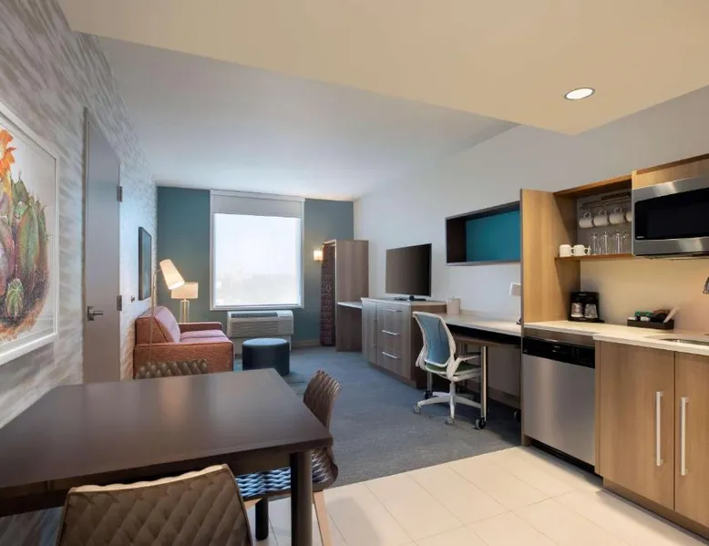 Comfortable Accommodations: Home2 Suites By Hilton Phenix Avondale, Az in Avondale offers family rooms with air-conditioning, kitchen facilities, and free WiFi. Each room includes a sofa bed, work desk, and TV. Leisure Facilities: Guests can enjoy a fitness center, year-round outdoor swimming pool, and outdoor fireplace. Additional amenities include a child-friendly buffet, picnic area, and electric vehicle charging station. Convenient Location: Located 16 mi from Phenix Sky Harbor International Airport, the hotel is near attractions such as State Farm Stadium (5.6 mi) and Phenix Convention Center (14 mi). Free on-site private parking is available. Guest Satisfaction: Highly rated for its convenient location, room cleanliness, and attentive staff. In the kitchen, guests will find a refrigerator, a dishwasher, kitchenware and a microwave. The studio provides air conditioning, a tea and coffee maker, a seating area, heating and a TV with cable channels. The unit offers 2 beds.