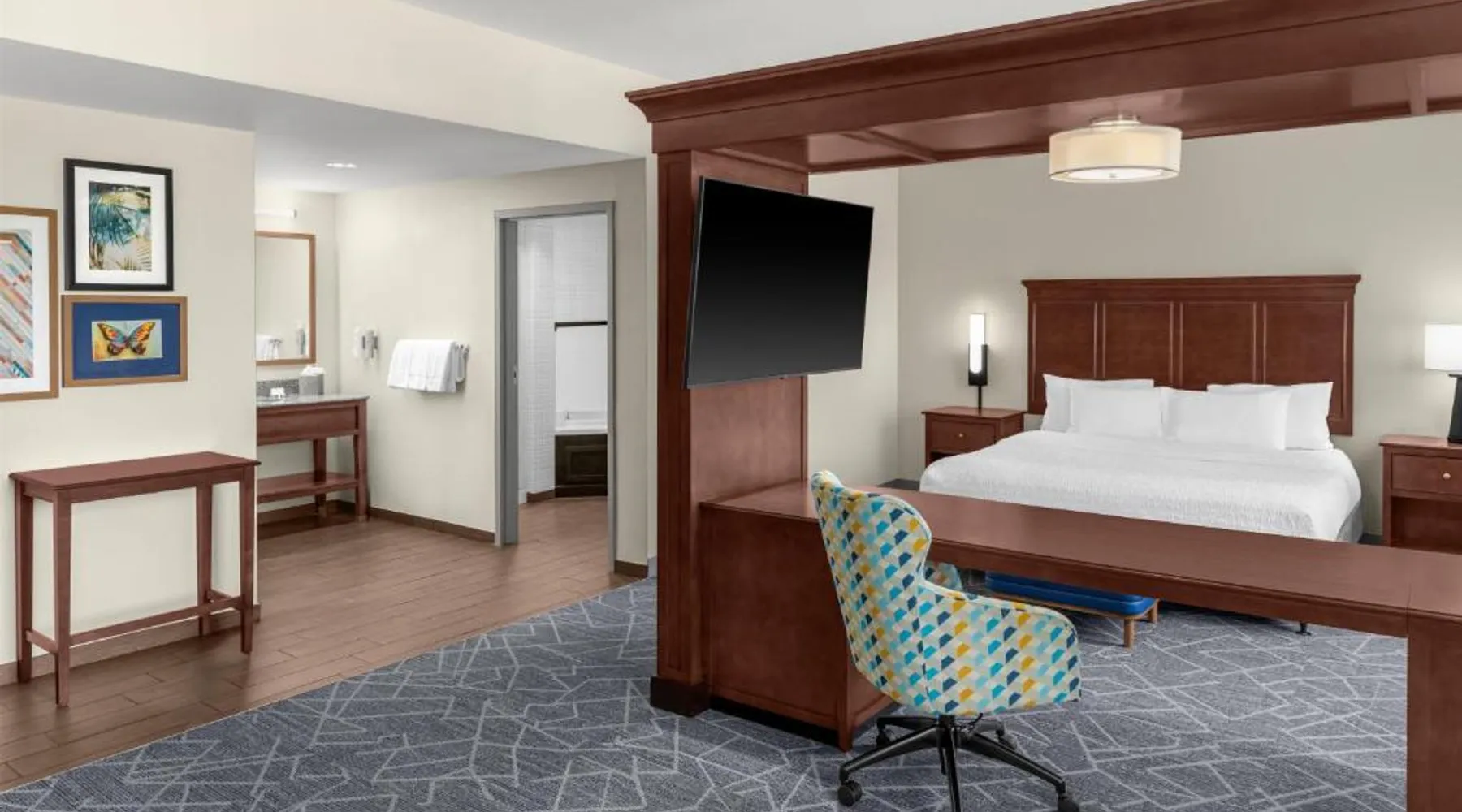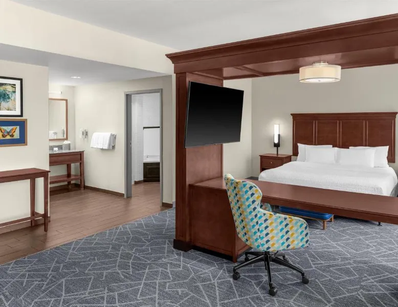 Hampton Inn and Suites Coconut Creek offers rooms in West Dixie Bend. This 3-star hotel offers a 24-hour front desk. Free WiFi is available. The rooms at the hotel are equipped with a seating area, a flat-screen TV with cable channels and a private bathroom with a hairdryer and a bath. All units feature a desk. Guests at Hampton Inn and Suites Coconut Creek can enjoy a buffet breakfast. Additional amenities include an outdoor pool and on-site fitness center. Fort Lauderdale is 13 mi from the accommodations, while Hollywood is 21 mi away. Fort Lauderdale-Hollywood International Airport is 16 mi from the property. In addition to a sofa bed, this studio features a microwave, refrigerator, and coffee machine.
