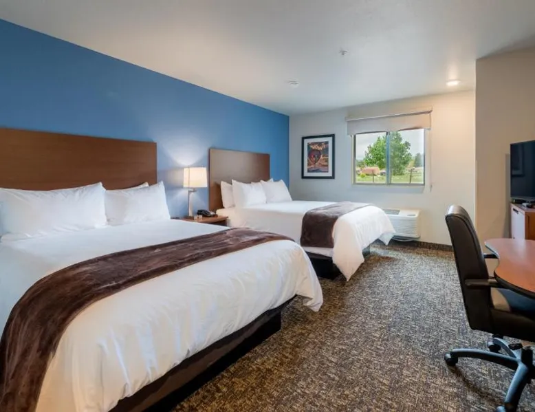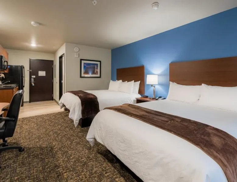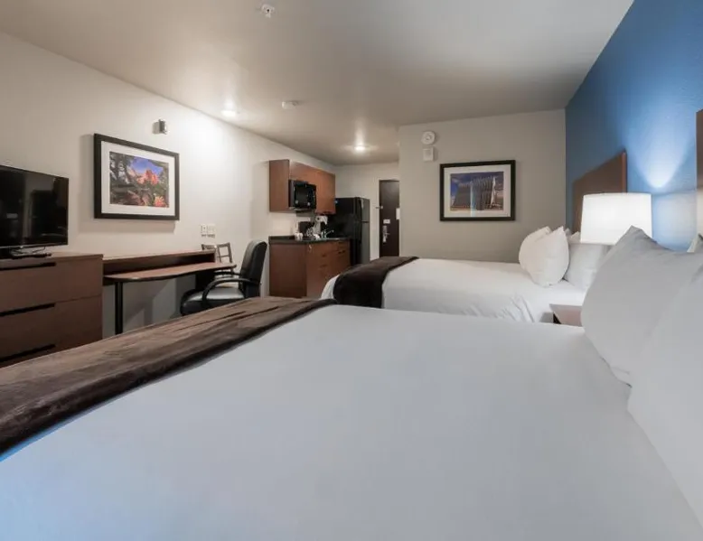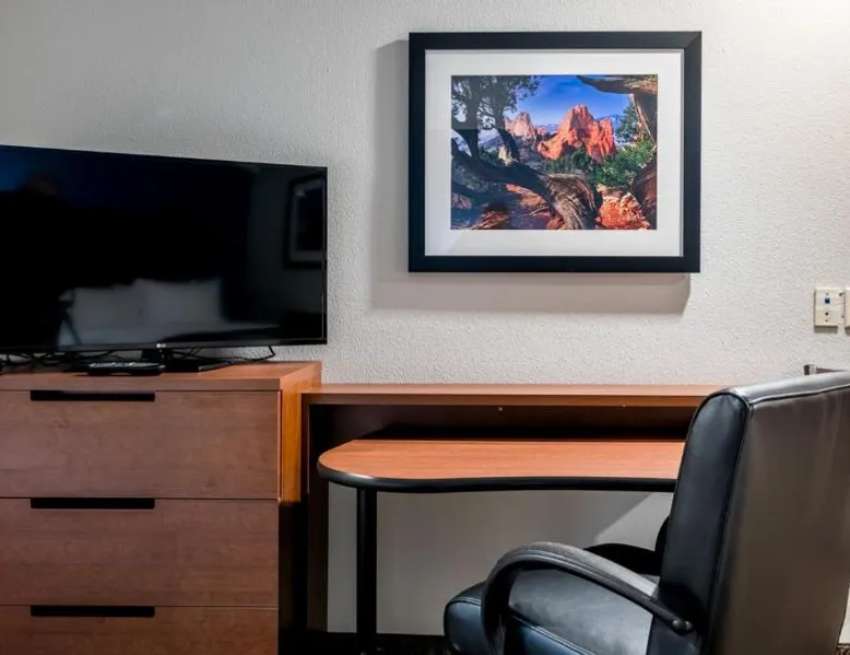 Comfortable Accommodations: My Place Hotel-Colorado Springs in Colorado Springs offers family rooms with air-conditioning, kitchenettes, private bathrooms, and free WiFi. Each room includes a tea and coffee maker, refrigerator, microwave, and TV. Convenient Facilities: Guests can enjoy a lounge, minimarket, business area, outdoor seating, picnic area, and barbecue facilities. Additional amenities include a dining area, wardrobe, and stovetop. Prime Location: Located 21 mi from Colorado Springs Airport, the hotel is near attractions such as United States Air Force Academy (6.8 mi), Garden of the Gods (16 mi), and Cheyenne Mountain Zoo (22 mi). Free on-site private parking is available. Guest Satisfaction: Highly rated for its attentive staff, room cleanliness, and convenient location. The triple room features air conditioning, a tea and coffee maker, as well as a private bathroom boasting a walk-in shower and a hairdryer. The well-equipped kitchen has a stovetop, a refrigerator and a microwave. This triple room features a dining area, a flat-screen TV with cable channels a wardrobe and heating. The unit has 1 bed.