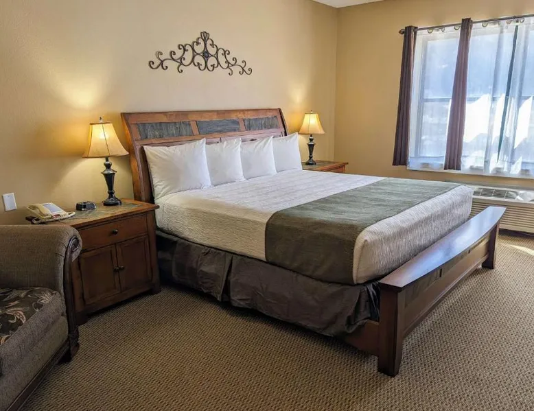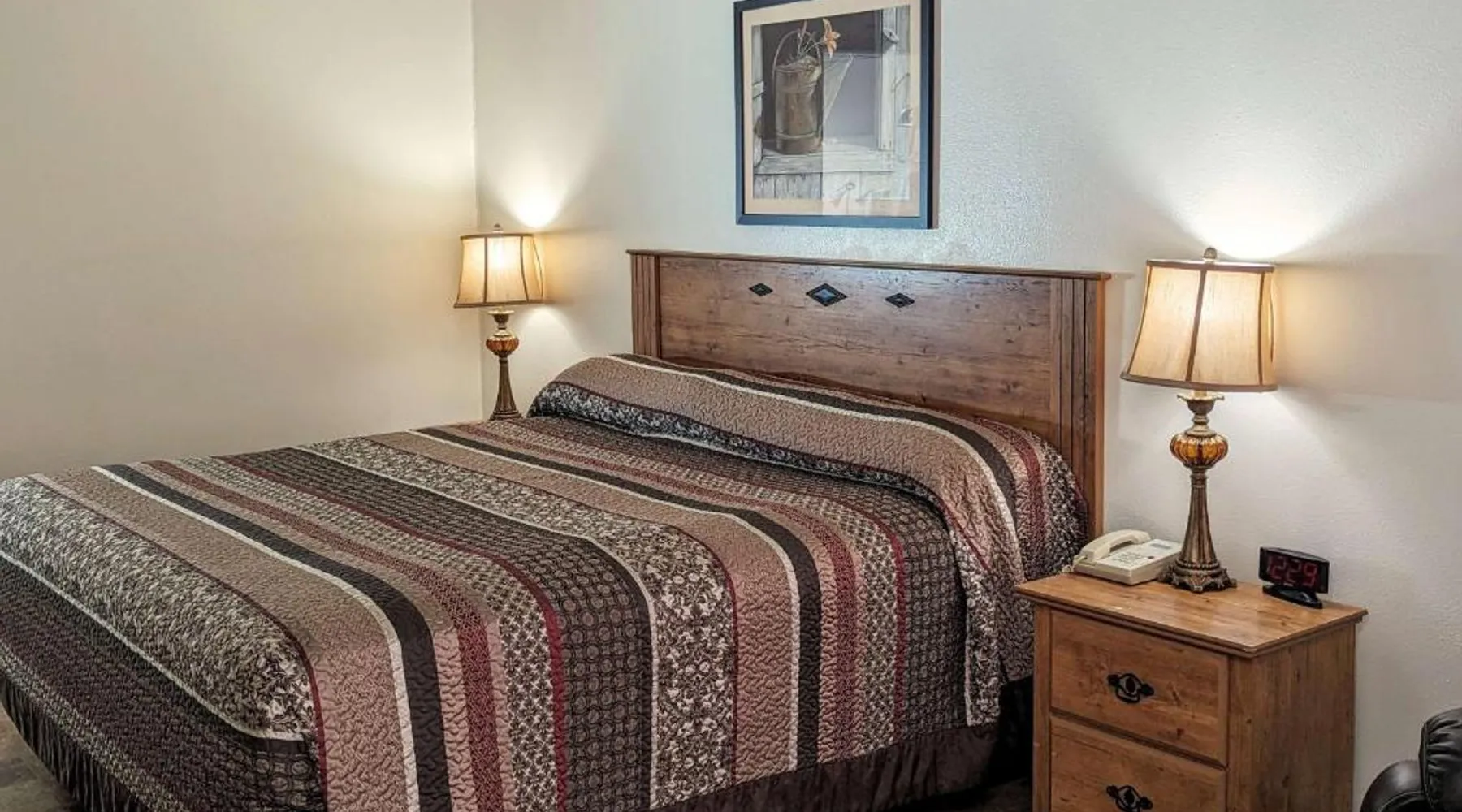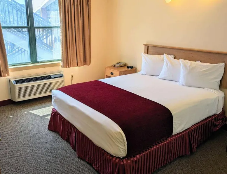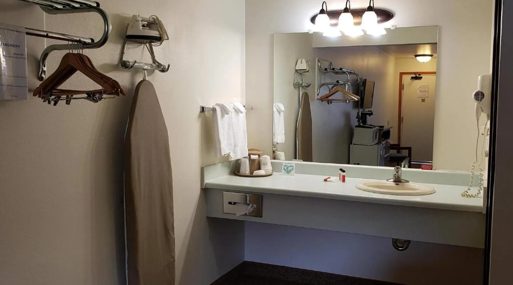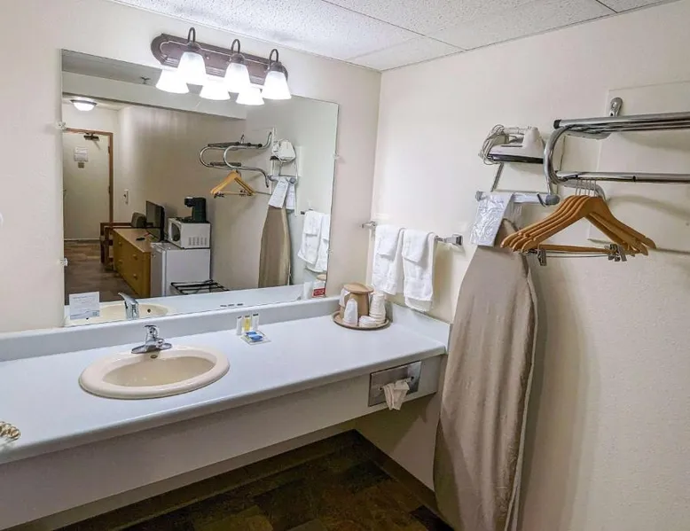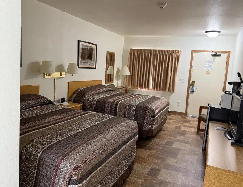 Comfortable Accommodations: Travelodge by Wyndham Deadwood in Deadwood offers comfortable rooms with air-conditioning, private bathrooms, and mountain views. Each room includes a tea and coffee maker, refrigerator, work desk, and free toiletries. Facilities and Services: Guests can enjoy a fitness center, sun terrace, and free WiFi. Additional amenities include a elevator, 24-hour front desk, minimarket, housekeeping service, business area, outdoor seating, picnic area, and full-day security. Dining Options: A continental and à la carte breakfast is served, featuring fresh pastries and pancakes. Location and Attractions: Located 51 mi from Rapid City Regional Airport, the hotel is 1.2 mi from Adams Museum. Nearby activities include skiing and hiking. Guests appreciate the attentive staff, excellent breakfast, and clean rooms. Providing free toiletries, this family room includes a private bathroom with a walk-in shower, a bath and a hairdryer. The air-conditioned family room provides a flat-screen TV with cable channels, a tea and coffee maker, a carpeted floor, heating as well as mountain views. The unit offers 2 beds.