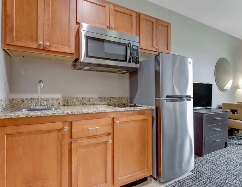 Comfortable Accommodations: SureStay Plus Hotel by Best Western Owasso Tulsa North in Owasso offers comfortable rooms with free WiFi and airport shuttle service. Guests enjoy amenities such as a elevator, 24-hour front desk, daily housekeeping, business area, outdoor seating, room service, and barbecue facilities. Convenient Facilities: The hotel provides paid on-site private parking, a buffet breakfast with juice and fruits, and a business area. Additional amenities include a tea and coffee maker, hairdryer, refrigerator, work desk, microwave, and interconnected rooms. Prime Location: Located 4.3 mi from Tulsa International Airport, the hotel is near attractions like Tulsa Zoo and Living Museum (6.8 mi), Skelly Stadium Hurricane and Quiktrip Exposition Center (12 mi), and Brady Theater (15 mi). Guests appreciate the room cleanliness, value for money, and attentive staff. The quadruple room's kitchenette, which features a refrigerator and a microwave, is available for cooking and storing food. The quadruple room offers a tea and coffee maker. The unit offers 2 beds.