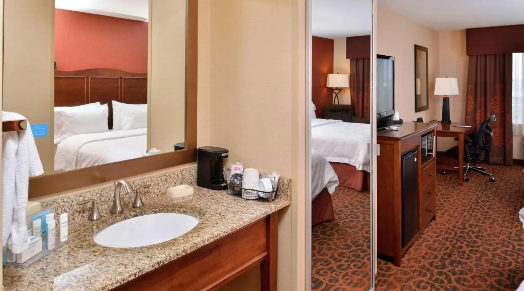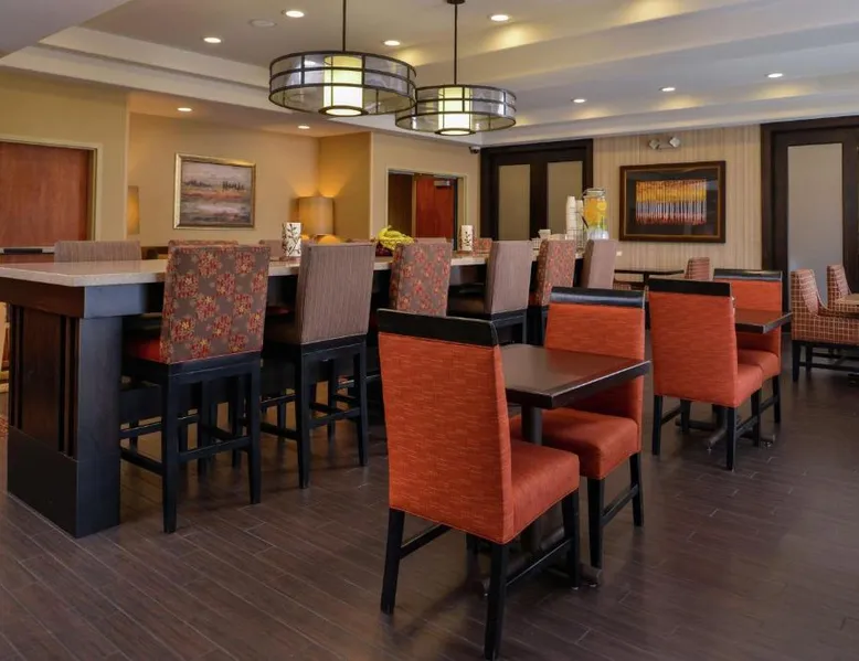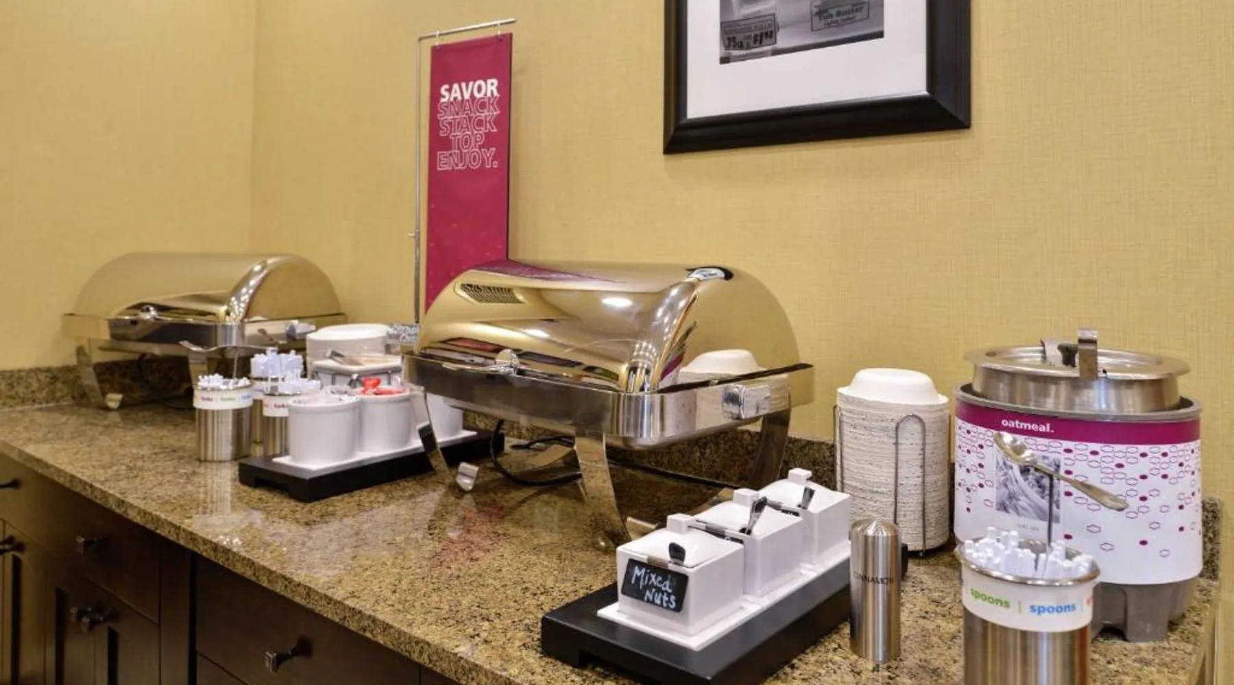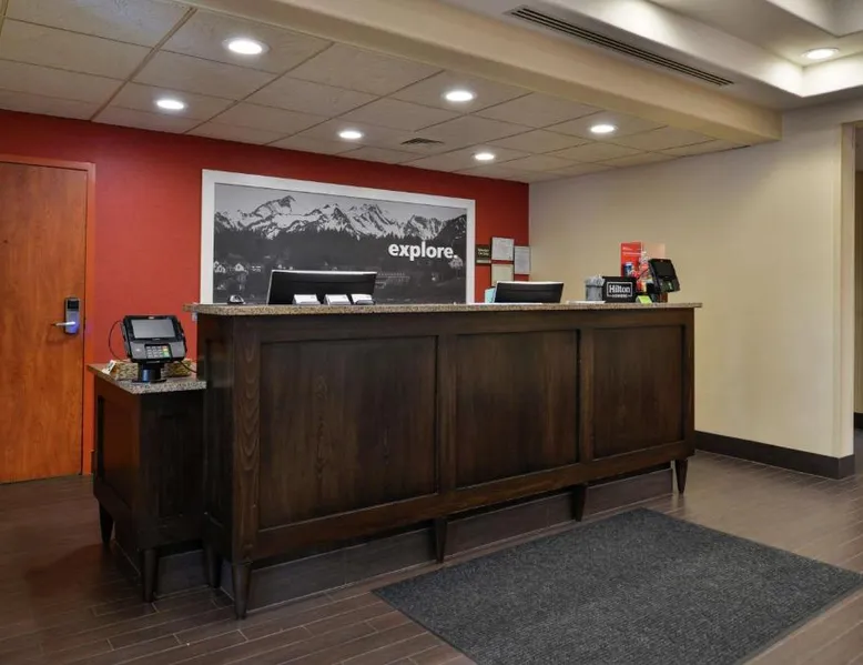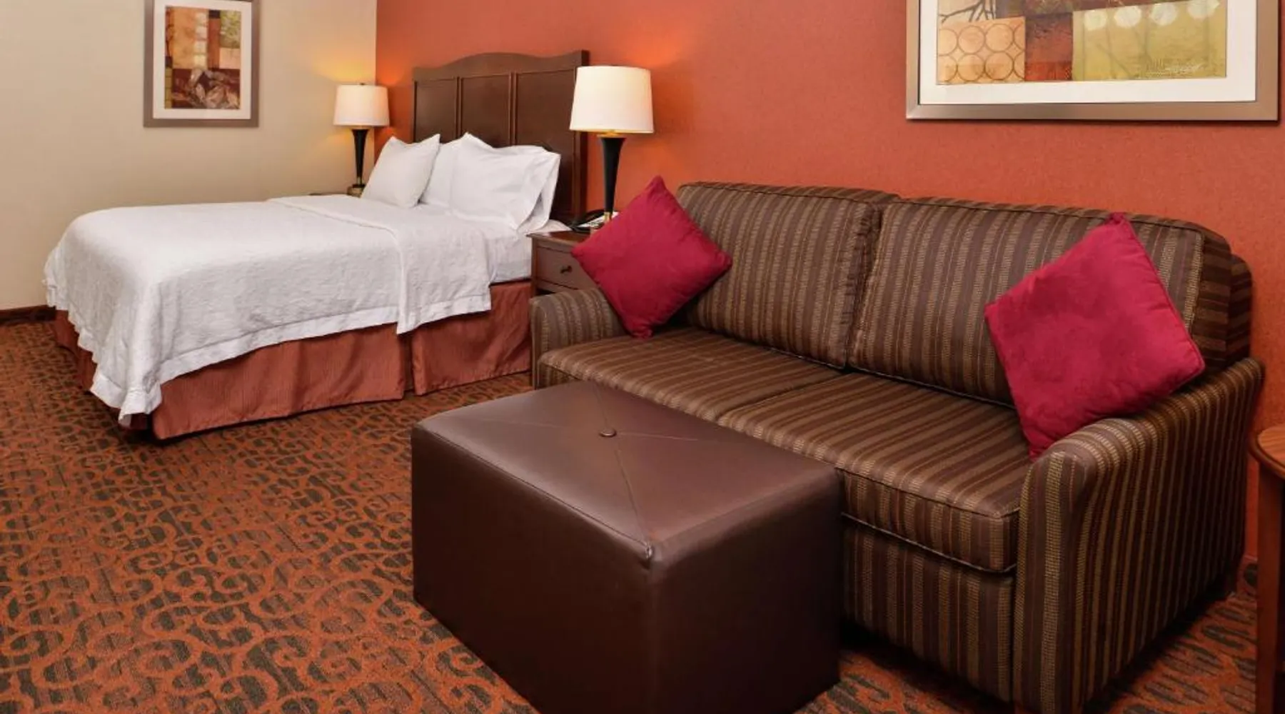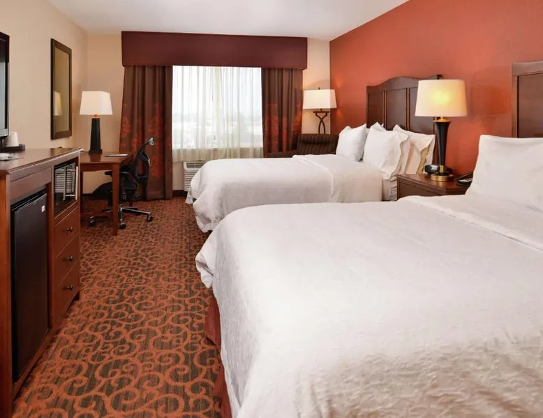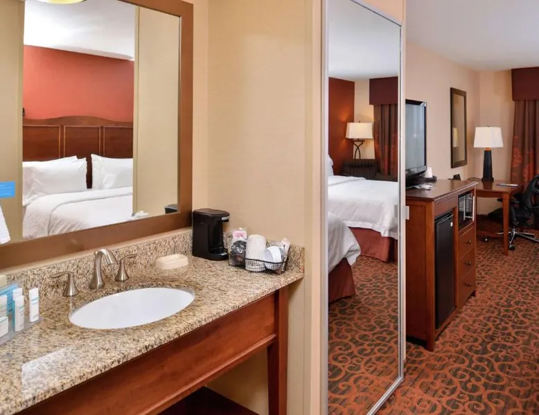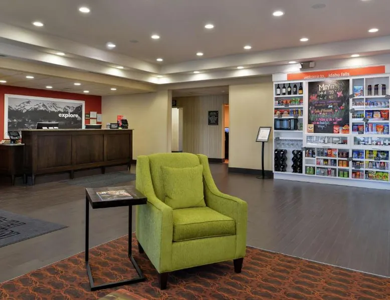 Comfortable Accommodations: Hampton Inn Idaho Falls / Airport in Idaho Falls offers family rooms with air-conditioning, kitchenettes, and free WiFi. Each room includes a refrigerator, microwave, TV, and work desk. Exceptional Facilities: Guests enjoy an indoor swimming pool, fitness room, hot tub, and free on-site parking. Additional amenities include a 24-hour front desk, room service, and a elevator. Convenient Location: Located 17 mi from Idaho Falls Regional Airport, the hotel is 28 mi from Eliza R. Snow Performing Arts Center. Cycling activities are available nearby. Guest Satisfaction: Highly rated for its convenient location, attentive staff, and reliable airport shuttle service. The well-equipped kitchenette has a stovetop, a refrigerator, a microwave and a tea and coffee maker. This triple room features a seating area and a flat-screen TV. The unit has 2 beds.