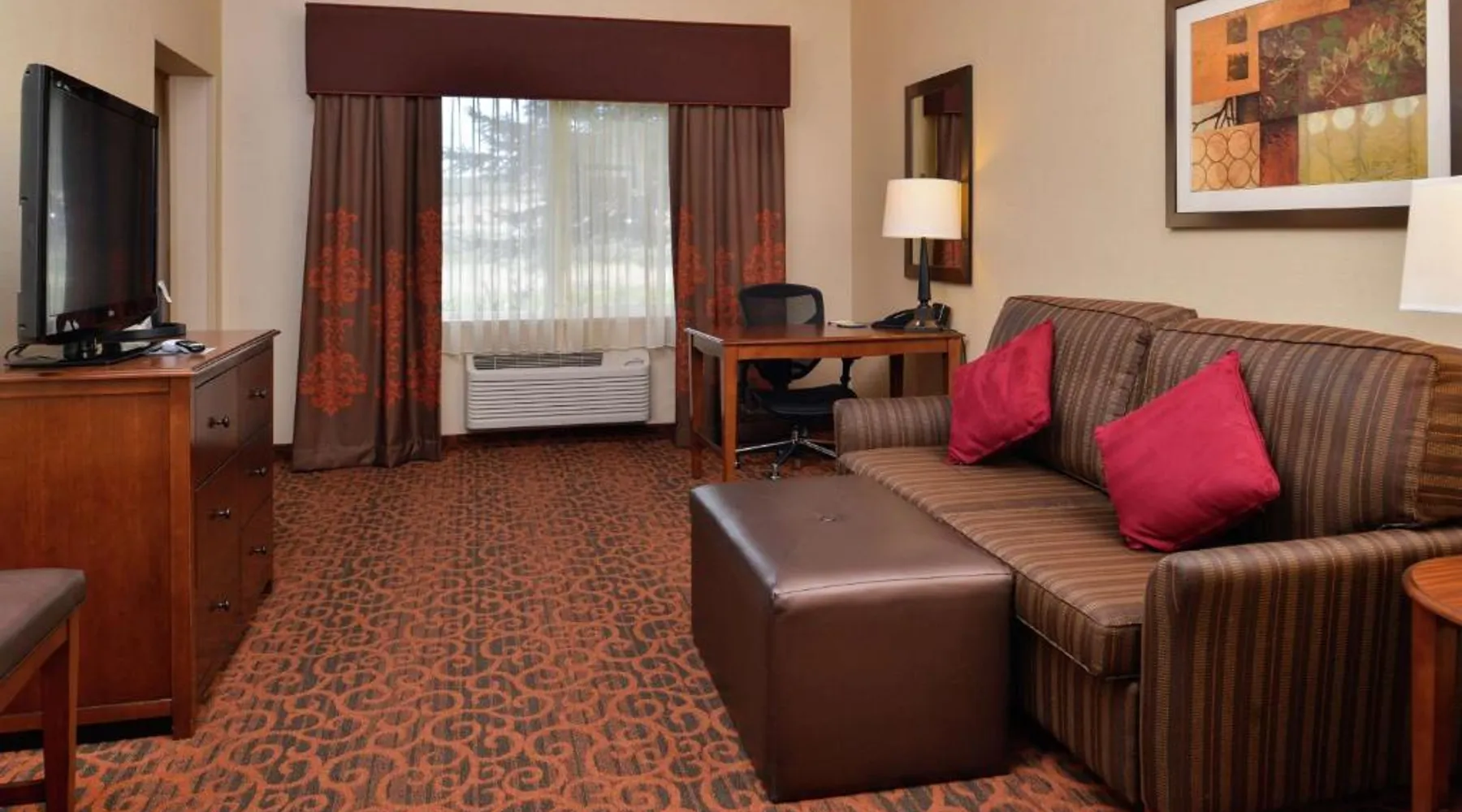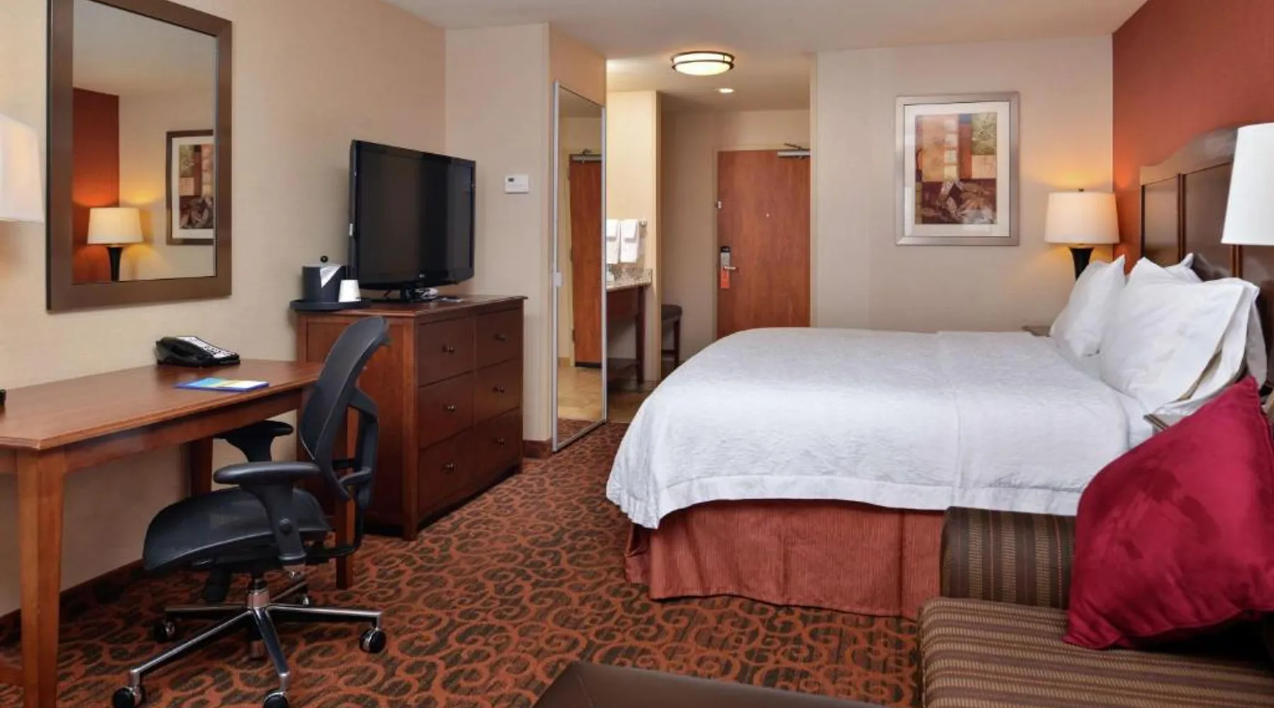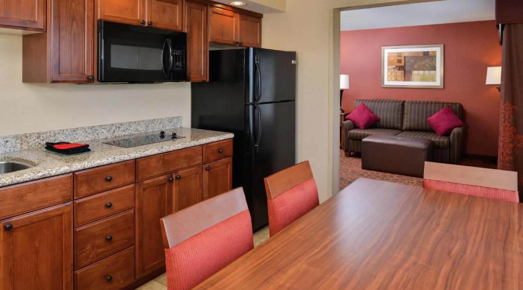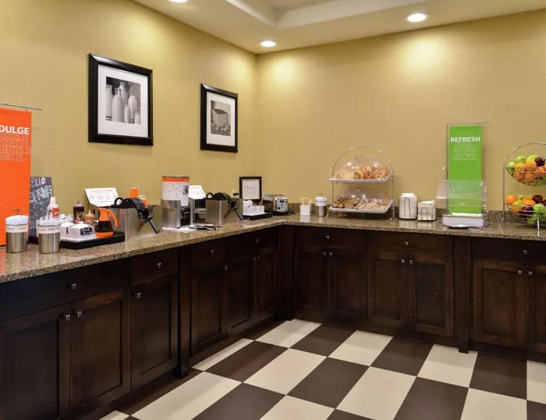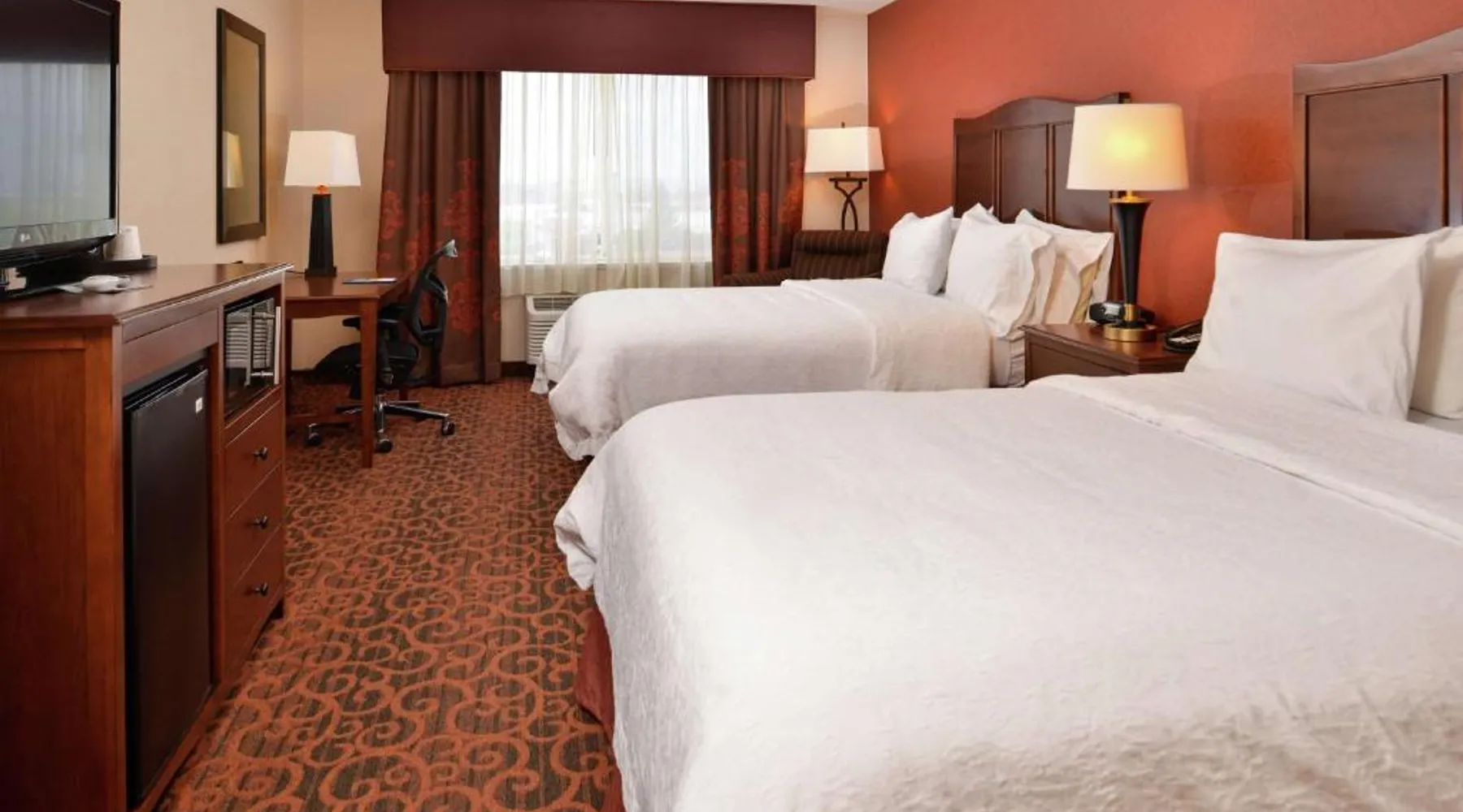 Comfortable Accommodations: Hampton Inn Idaho Falls / Airport in Idaho Falls offers family rooms with air-conditioning, kitchenettes, and free WiFi. Each room includes a refrigerator, microwave, TV, and work desk. Exceptional Facilities: Guests enjoy an indoor swimming pool, fitness room, hot tub, and free on-site parking. Additional amenities include a 24-hour front desk, room service, and a elevator. Convenient Location: Located 17 mi from Idaho Falls Regional Airport, the hotel is 28 mi from Eliza R. Snow Performing Arts Center. Cycling activities are available nearby. Guest Satisfaction: Highly rated for its convenient location, attentive staff, and reliable airport shuttle service. The well-equipped kitchenette has a stovetop, a refrigerator, a microwave and a tea and coffee maker. This triple room features a seating area and a flat-screen TV. The unit has 2 beds.