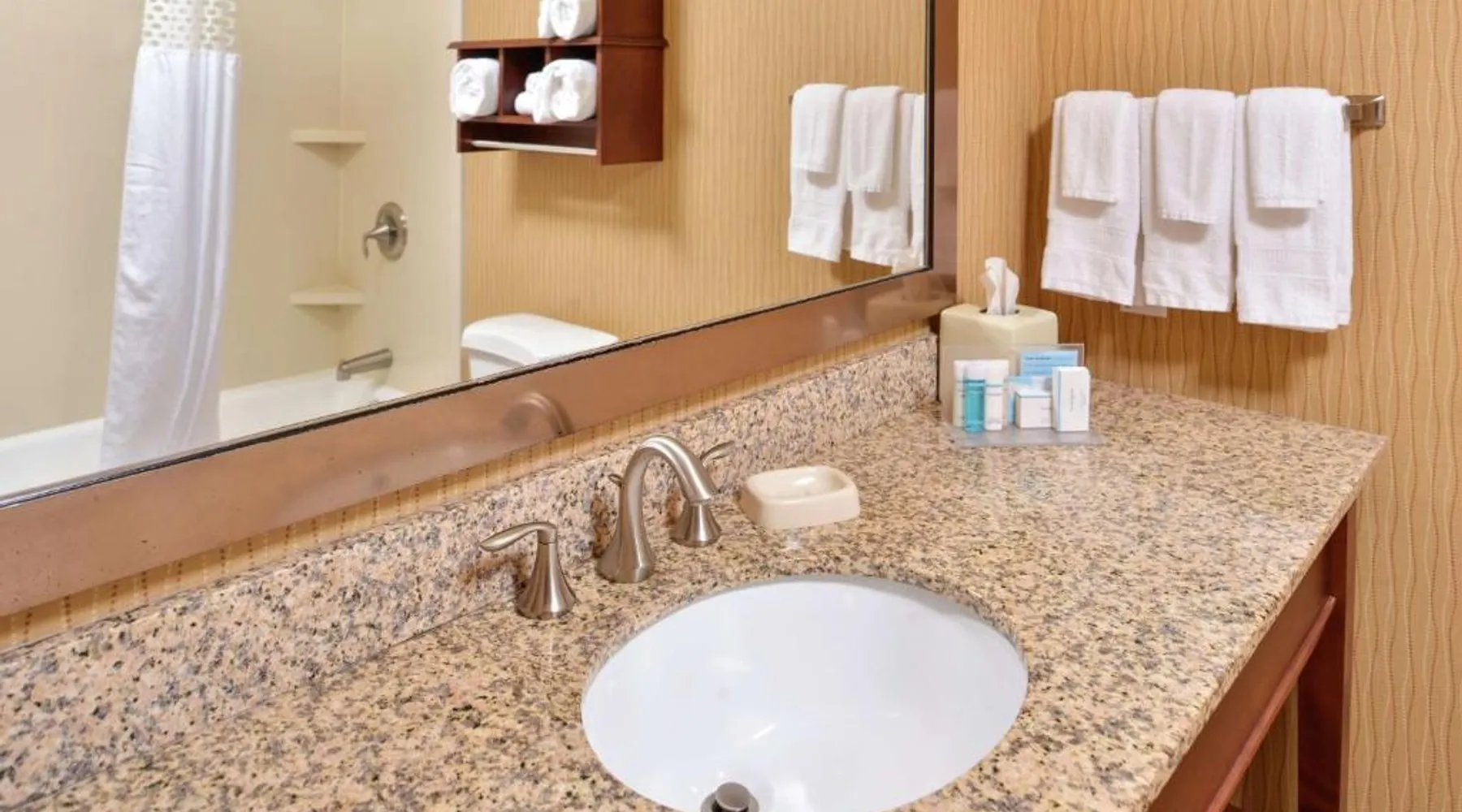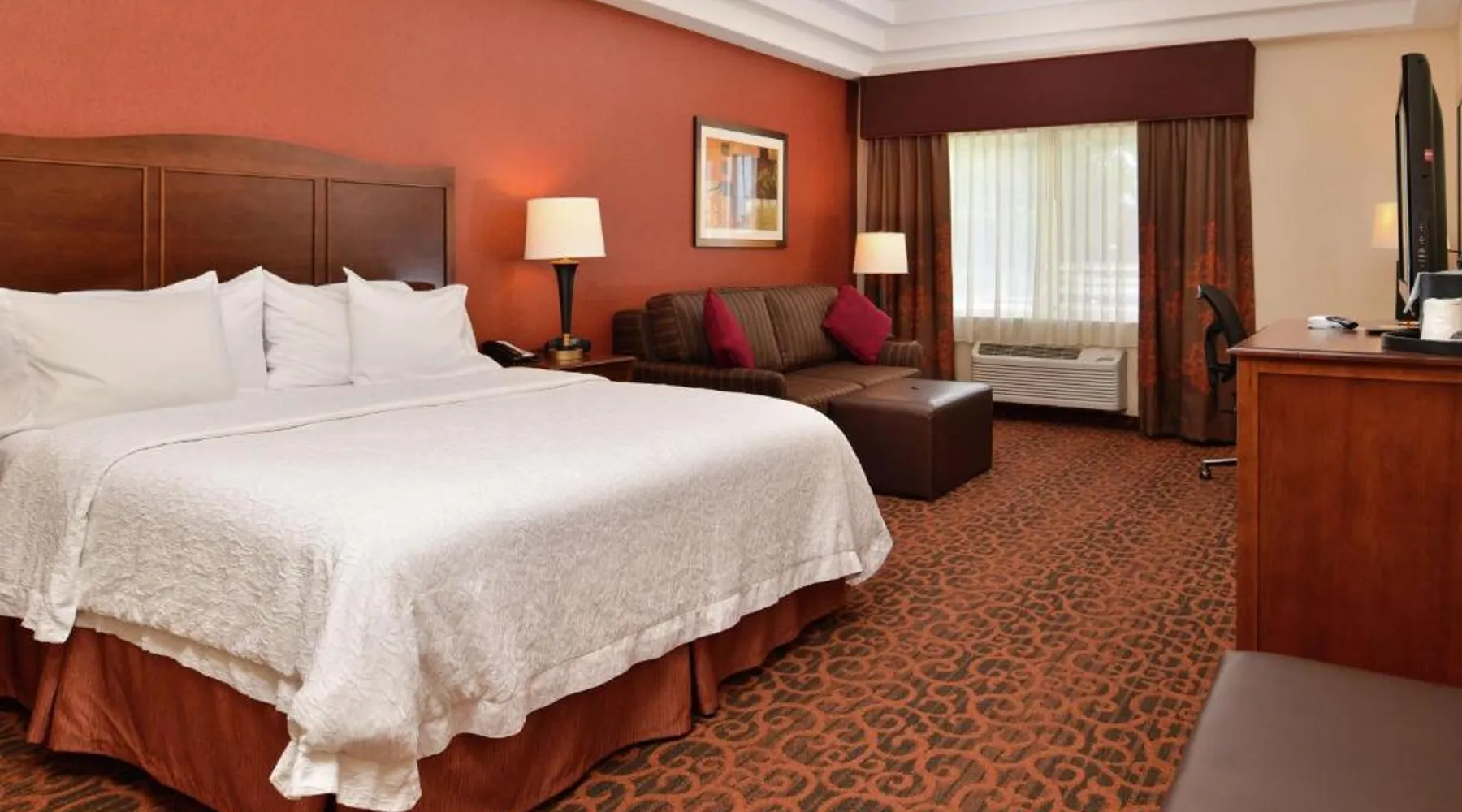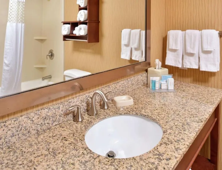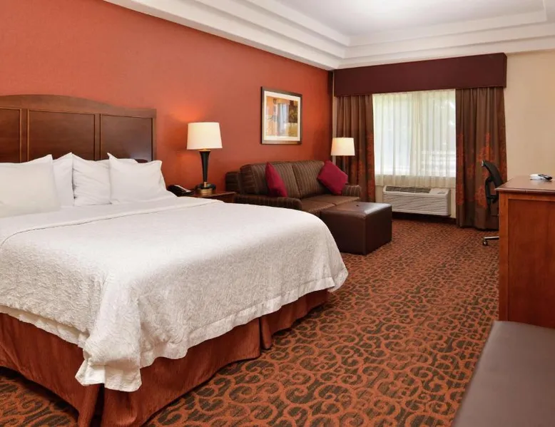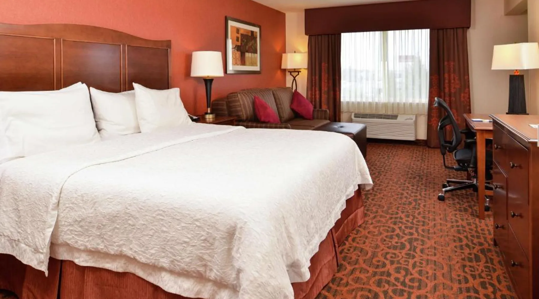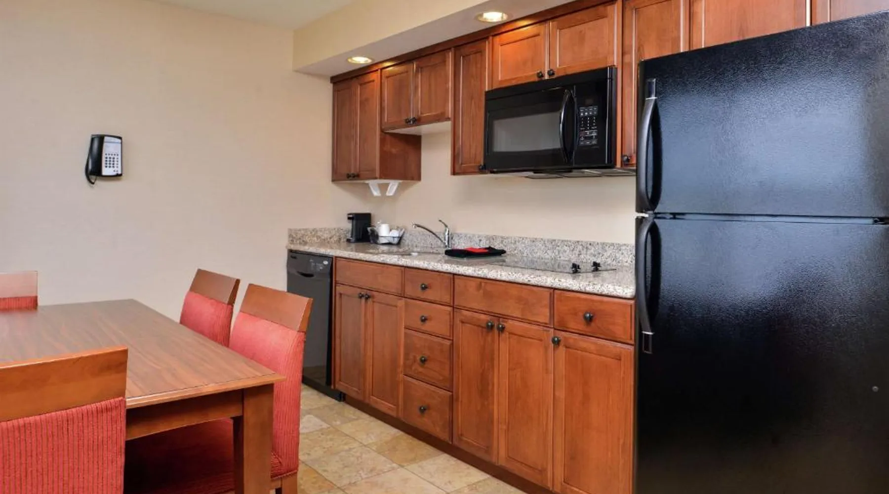 Comfortable Accommodations: Hampton Inn Idaho Falls / Airport in Idaho Falls offers family rooms with air-conditioning, kitchenettes, and free WiFi. Each room includes a refrigerator, microwave, TV, and work desk. Exceptional Facilities: Guests enjoy an indoor swimming pool, fitness room, hot tub, and free on-site parking. Additional amenities include a 24-hour front desk, room service, and a elevator. Convenient Location: Located 17 mi from Idaho Falls Regional Airport, the hotel is 28 mi from Eliza R. Snow Performing Arts Center. Cycling activities are available nearby. Guest Satisfaction: Highly rated for its convenient location, attentive staff, and reliable airport shuttle service. The well-equipped kitchenette has a stovetop, a refrigerator, a microwave and a tea and coffee maker. This triple room features a seating area and a flat-screen TV. The unit has 2 beds.