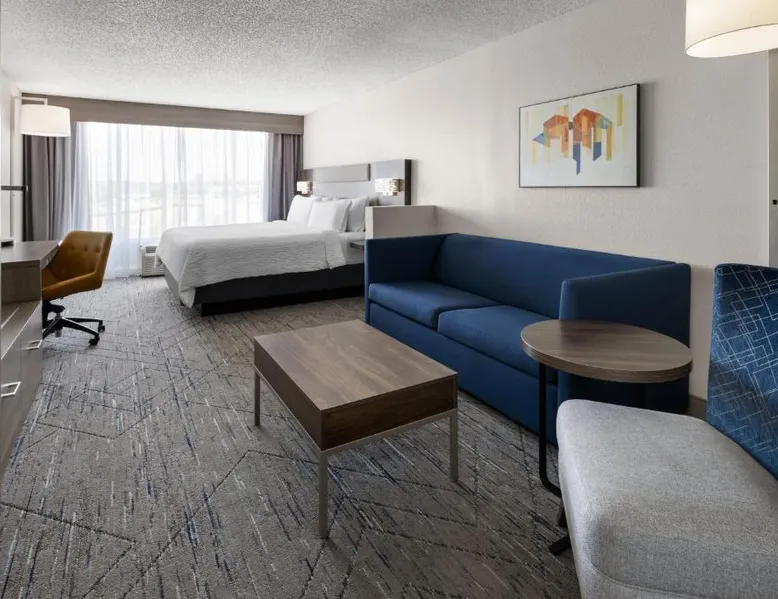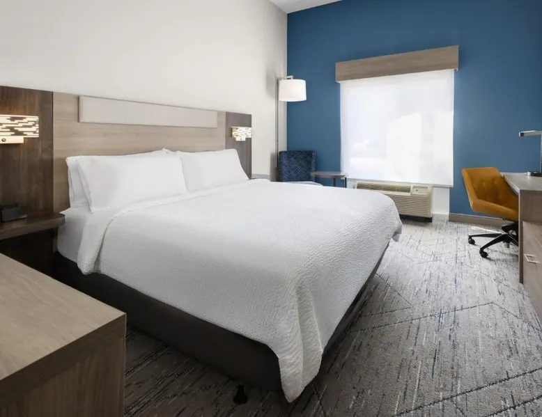 Comfortable Accommodations: Holiday Inn Express and Suites Newberry by IHG in Newberry offers air-conditioned rooms with private bathrooms, free WiFi, and modern amenities. Each room includes a work desk, seating area, and TV. Facilities and Services: Guests can enjoy a fitness center, indoor swimming pool, hot tub, and public bath. Additional facilities include a 24-hour front desk, minimarket, business area, and express check-in and check-out services. Breakfast and Dining: A continental, American, or buffet breakfast is served daily, featuring juice, fresh pastries, pancakes, cheese, and fruits. The property also offers a fitness room and a elevator for added convenience. Location and Attractions: Located 40 mi from Columbia Metropolitan Airport and 29 mi from Lake Greenwood State Recreation Area, the hotel provides easy access to local attractions. Highly rated for its attentive staff, excellent breakfast, and clean rooms. This room features a flat-screen TV, microwave, and small refrigerator.
