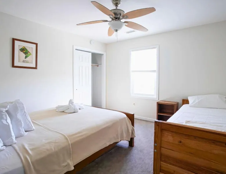 Comfortable Accommodations: Cherry Hill Park in College Park offers family rooms with private bathrooms, air-conditioning, and modern amenities. Each room includes a kitchen, balcony, and free WiFi, ensuring a pleasant stay. Leisure Facilities: Guests can enjoy a sauna, fitness center, seasonal outdoor swimming pool, and hot tub. Additional amenities include a steam room, outdoor fireplace, and games room, providing ample opportunities for relaxation and entertainment. Dining Experience: The family-friendly restaurant serves American cuisine in a welcoming atmosphere. Outdoor dining areas and a coffee shop cater to diverse preferences, complemented by free on-site private parking. Convenient Location: Located 19 mi from Ronald Reagan Washington National Airport, Cherry Hill Park is near attractions such as the National Gallery of Art (13 mi) and the White House (13 mi). Highly rated by guests, the property offers private check-in and a tour desk. This air-conditioned holiday home features 1 living room, 1 separate bedroom and 1 bathroom with a walk-in shower. Guests will find a stovetop, a refrigerator, a dishwasher and kitchenware in the well-equipped kitchen. The holiday home also comes with a barbecue. This wheelchair accessible holiday home has a tea and coffee maker, a seating area with a flat-screen TV and a toilet with grab rails. The unit has 2 beds.