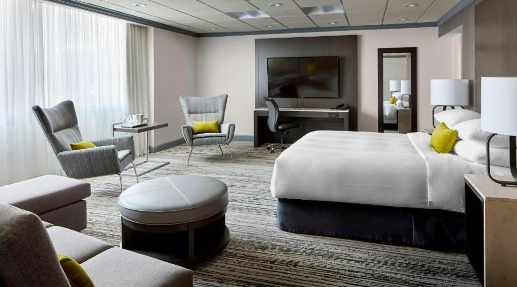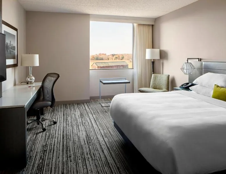 Comfortable Accommodations: Rooms feature air-conditioning, private bathrooms, tea and coffee makers, hairdryers, refrigerators, work desks, seating areas, free toiletries, bath or showers, carpeted floors, and TVs. Interconnected rooms are available. Dining and Leisure: The family-friendly restaurant serves American cuisine. Guests can also enjoy a bar and an indoor swimming pool. Free bicycles and a free airport shuttle service are provided. Convenient Location: Located in Windsor, the hotel is 5.6 mi from Bradley International Airport. Nearby attractions include Wintonbury Hills Golf Course (6.2 mi), Comcast Theater (7.5 mi), and the Mark Twain House (9.9 mi). Guest Services: The hotel offers a elevator, 24-hour front desk, concierge service, breakfast in the room, and room service. Free on-site parking is available. Featuring free toiletries, this double room includes a private bathroom with a bath or a shower and a hairdryer. The spacious double room features air conditioning, a tea and coffee maker, a seating area, a safe deposit box and a flat-screen TV with cable channels. The unit has 1 bed.