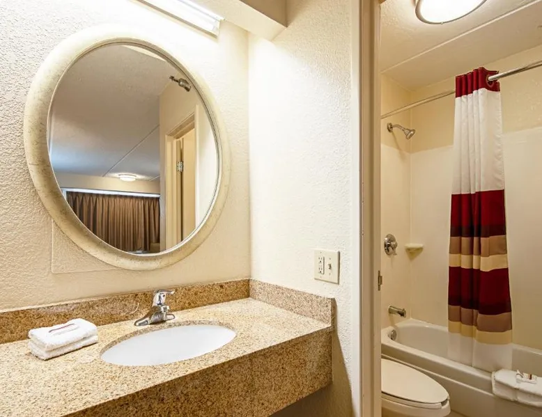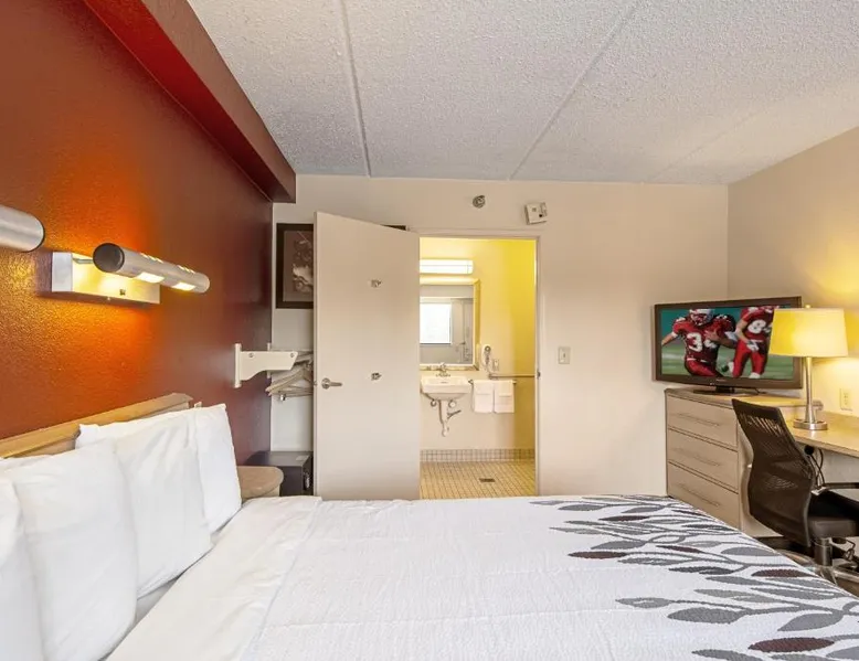This Johnson City motel is located off Interstate 26 Exit 20 and features free Wi-Fi. The rooms have a flat-screen cable TV. East Tennessee University is 4.5 miles away. A hardwood floor is featured in every air-conditioned room at this Johnson City Red Roof Inn. A small refrigerator and a microwave are included in select rooms. The 24-hour front desk at this non-smoking Red Roof Inn Johnson City has a safe available for a fee. Free parking is available on site. The motel is a 15-minute drive from Roan Mountain State Park. The East Tennessee State University Natural History Museum is 10 miles away. A flat-screen cable TV, small refrigerator, and microwave are featured in this room. A desk and hardwood floor are also included.