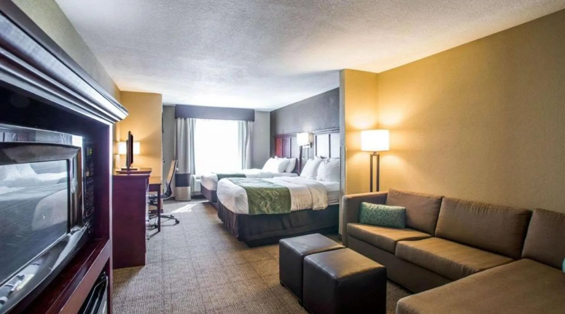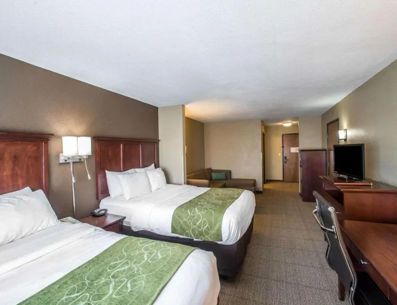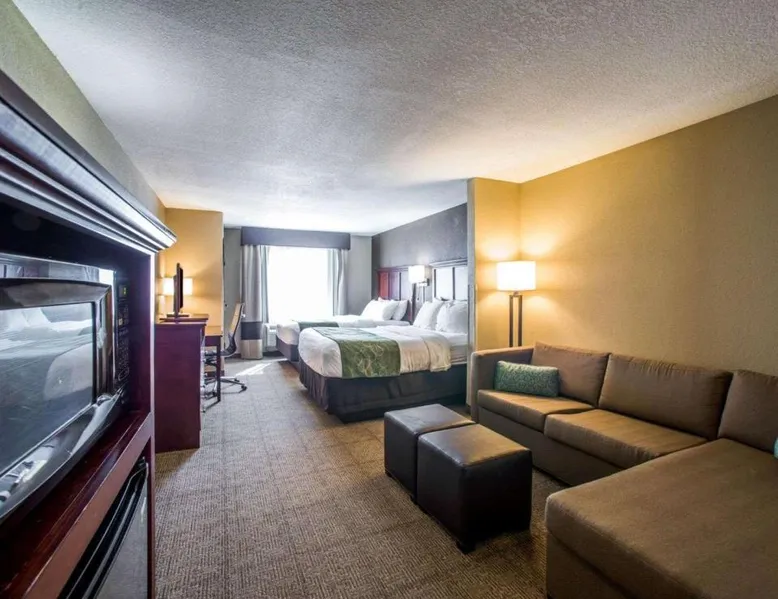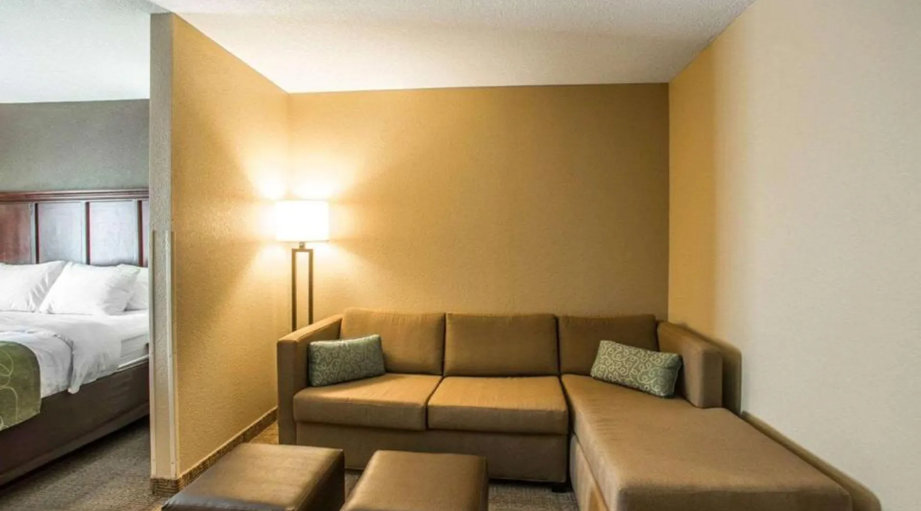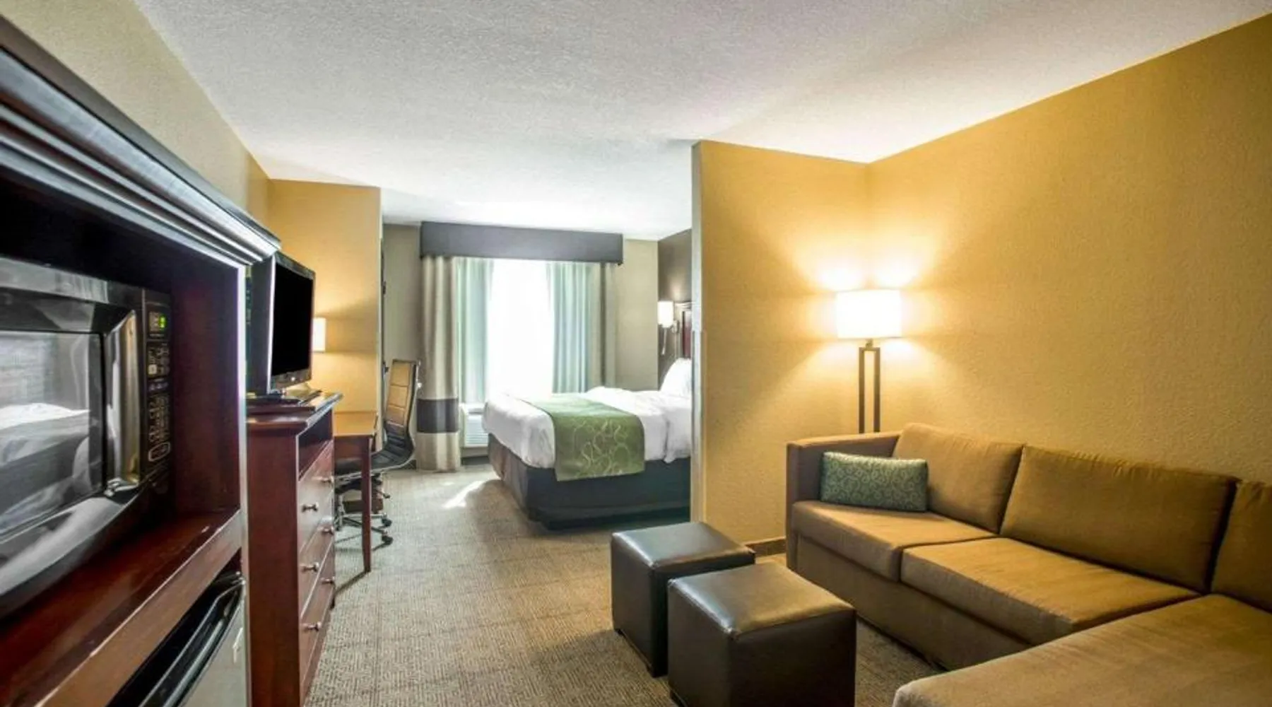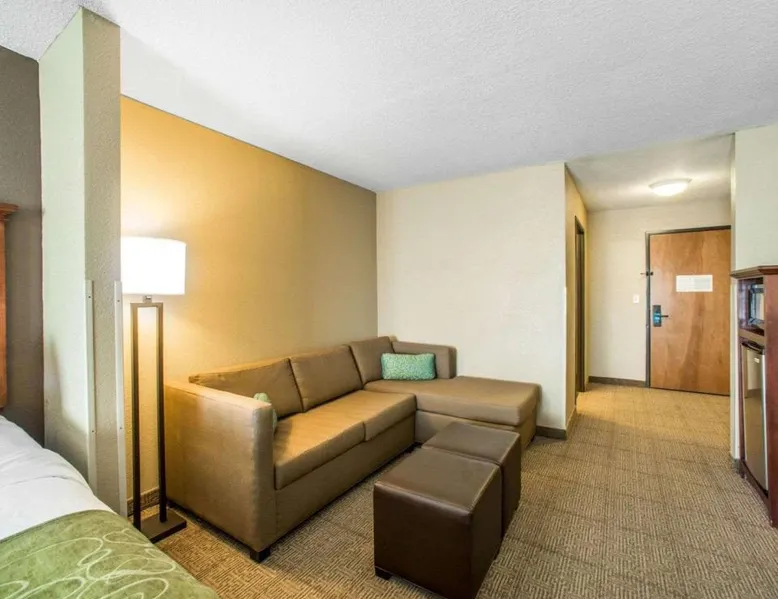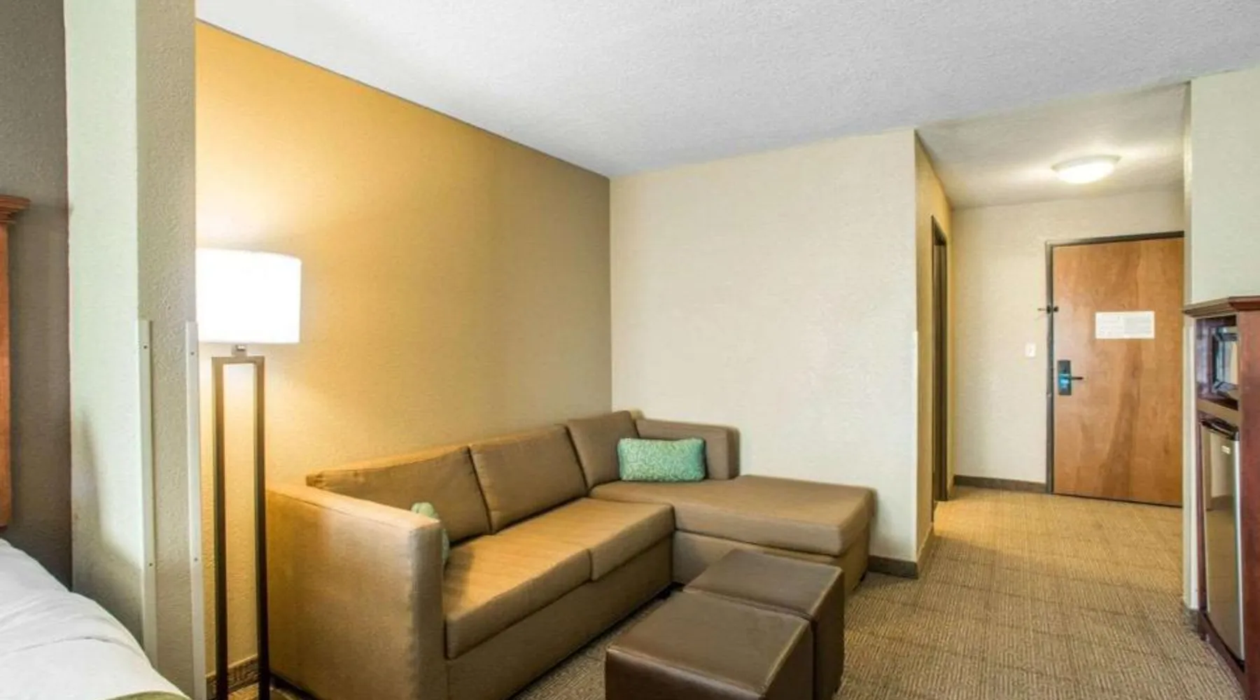The hotel is located off Interstate 70, less than three miles from the Ellis Fischel Cancer Center, Columbia Mall and the University of Missouri. The Columbia Regional Airport is 10 miles from the hotel. Columbia's wide array of restaurants, shops, art galleries, music venues, sporting events and coffee houses means there's never a shortage of things to do or see. Several shopping opportunities are close to the hotel. A variety of restaurants and cocktail lounges are located in the surrounding area. Hotel amenities and features includes free wired and wireless high-speed Internet access, a free weekday newspaper, an indoor heated pool and an exercise room. Your Morning Breakfast is full of options. Enjoy our free hot breakfast featuring eggs, meat, yogurt, fresh fruit, cereal and more, including your choice of hot waffle flavors! If you're leaving early, a Your Suite Success Grab & Go bag is available for the two hours prior to breakfast. Business travelers will appreciate conveniences like in-room desks, the lobby computer workstation and competitive corporate rates. The conference room is able to accommodate up to 35 people. All spacious guest rooms come equipped with refrigerators, microwaves, sofa sleepers, coffee makers, voice mail, irons, ironing boards, hair dryers, clock radios with MP3 jacks and cable television with HBO. Keep your electronic devices charged with the recharge device including AC and USB outlets provided in all guest rooms. Guest laundry facilities are located on the property for added guest convenience. A separate living area is included in this suite. Please note that the room rate is based on 2 guests. Maximum occupancy is 2 guests (see Hotel Policies).