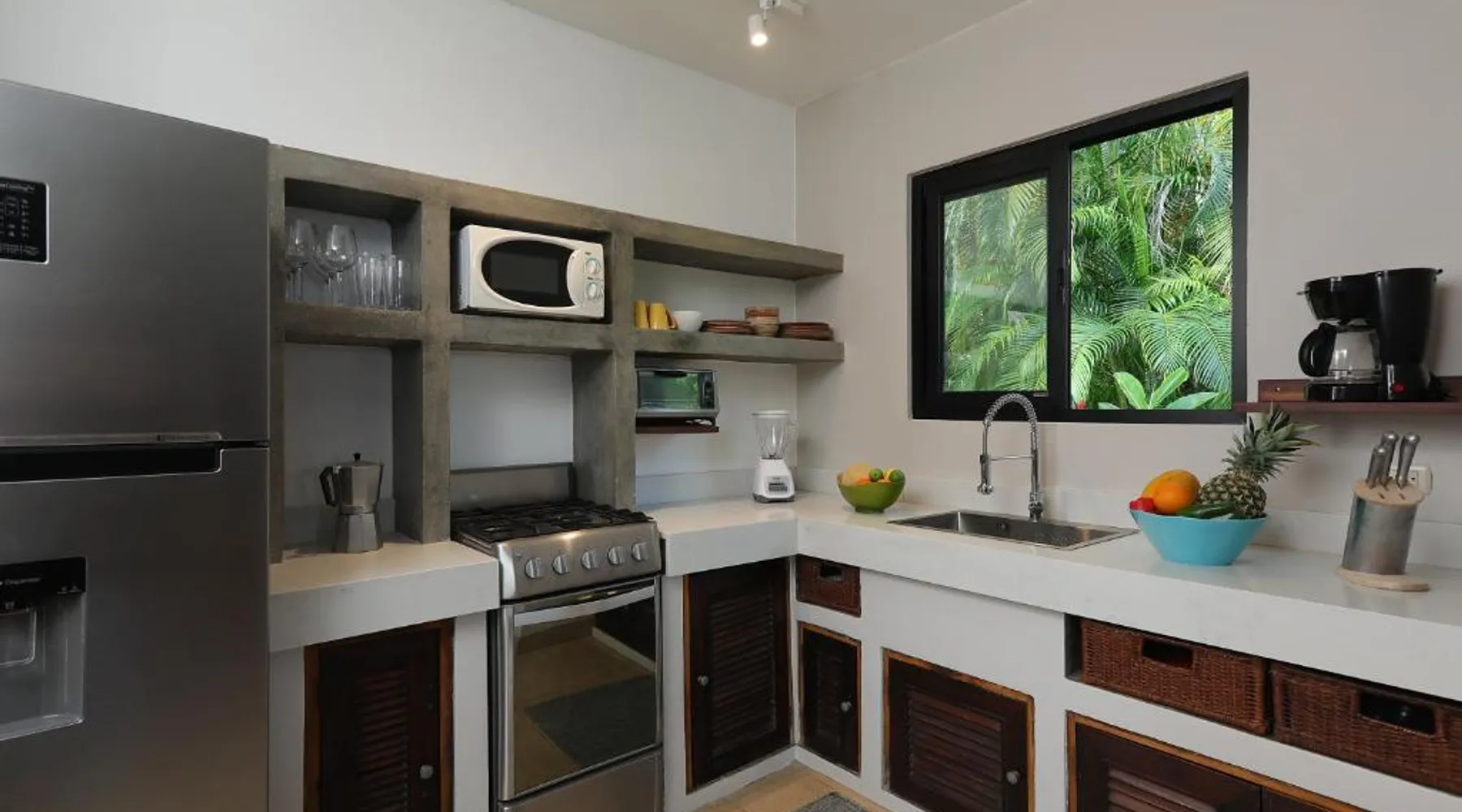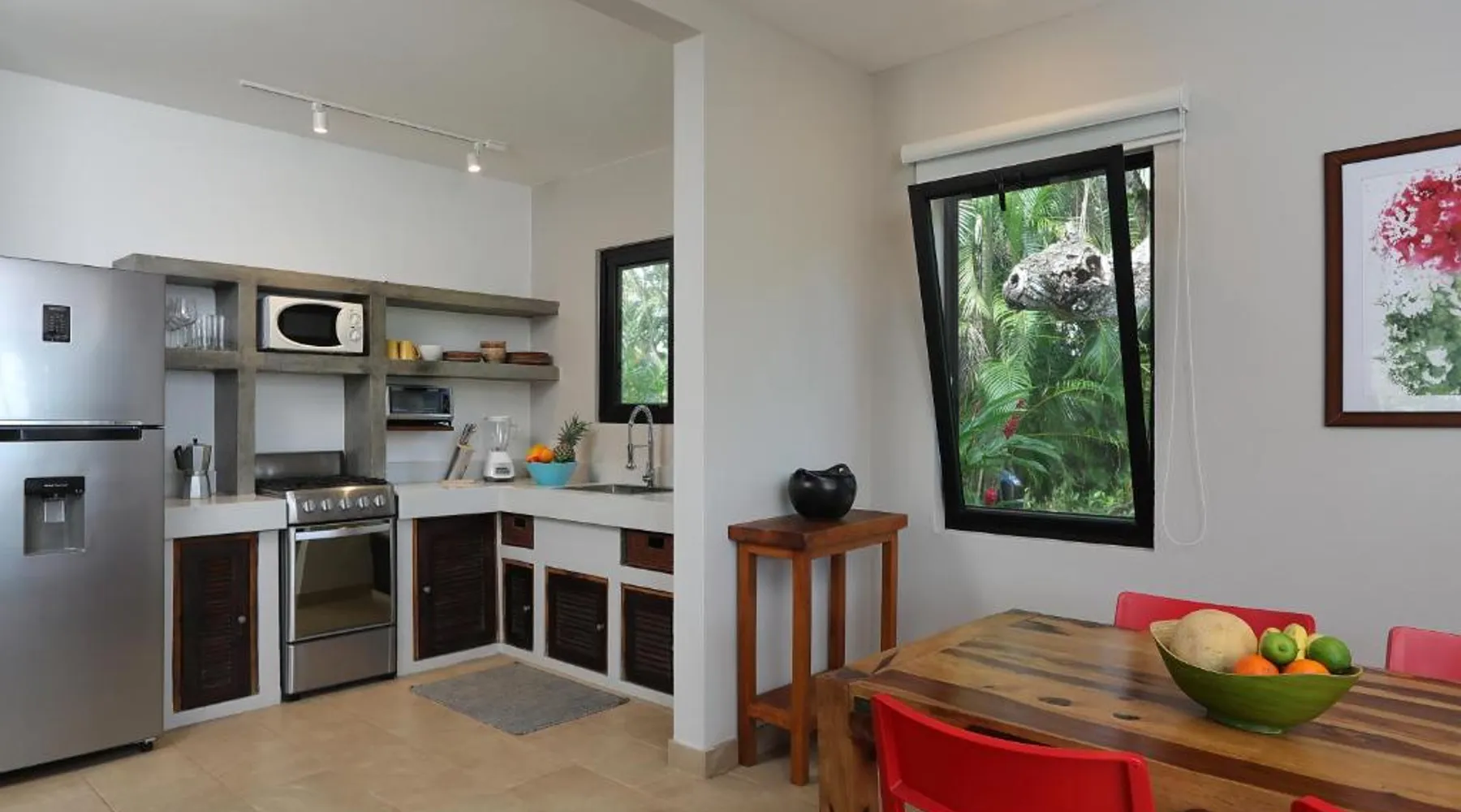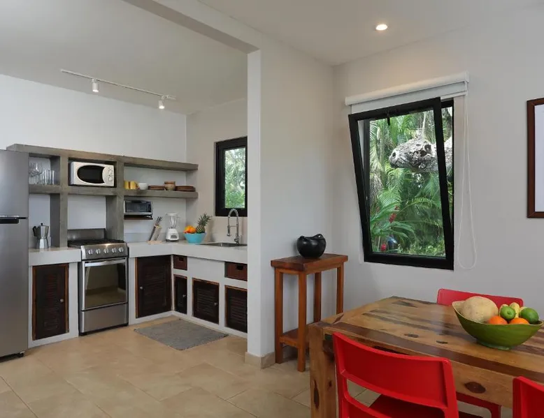 Casa Frangipani offers tropical gardens and an outdoor pool and sun terrace with views of the rainforest and ocean. It is just 0.9 mi from Montezuma, on Costa Rica’s Nicoya Peninsula. The villas at Casa Frangipani are surrounded by lush vegetation and offer terraces with stunning views. All villas features air conditioning, free Wi-Fi,a living area and a well-equipped kitchen. The guests can enjoy Casa Frangipani’s garden and activities such as horse riding, canoeing, boating and yoga. It also offers car rental service and shuttle service for an extra charge. Casa Frangipani is around 0.9 mi from Montezuma Beach, while the Cabo Blanco Nature Reserve is 5 mi away. San José International Airport is about 5 hours and 30 minutes away by car. This villa features free Wi-Fi, air conditioning, a fully equipped kitchen, dining area, a seating area and a private bathroom. It has a terrace with furniture.