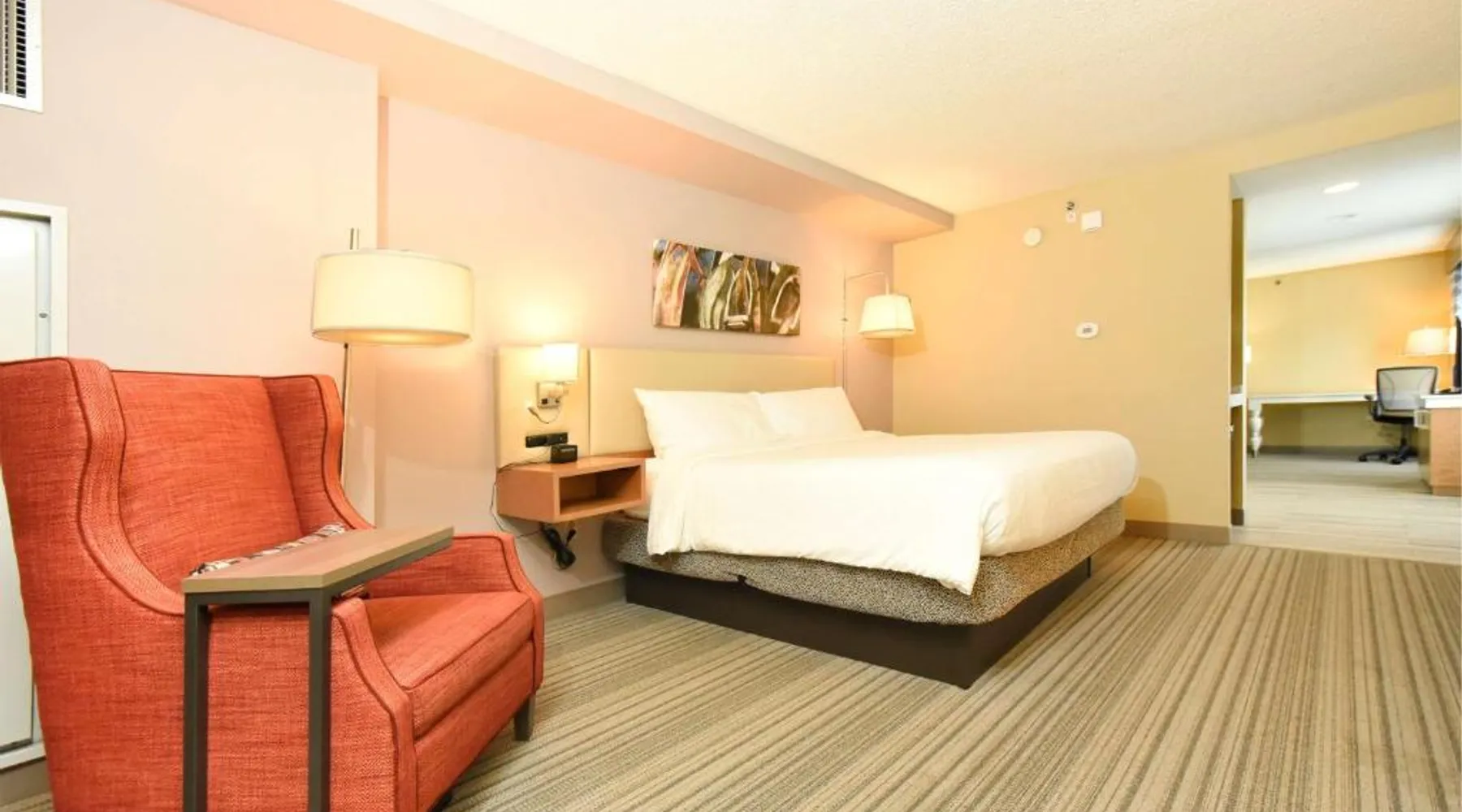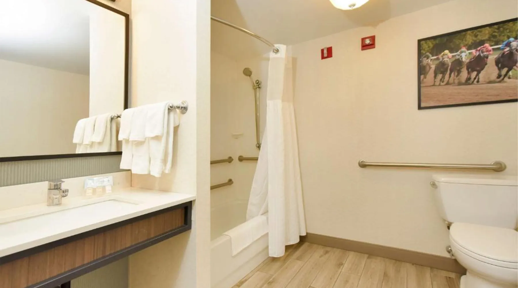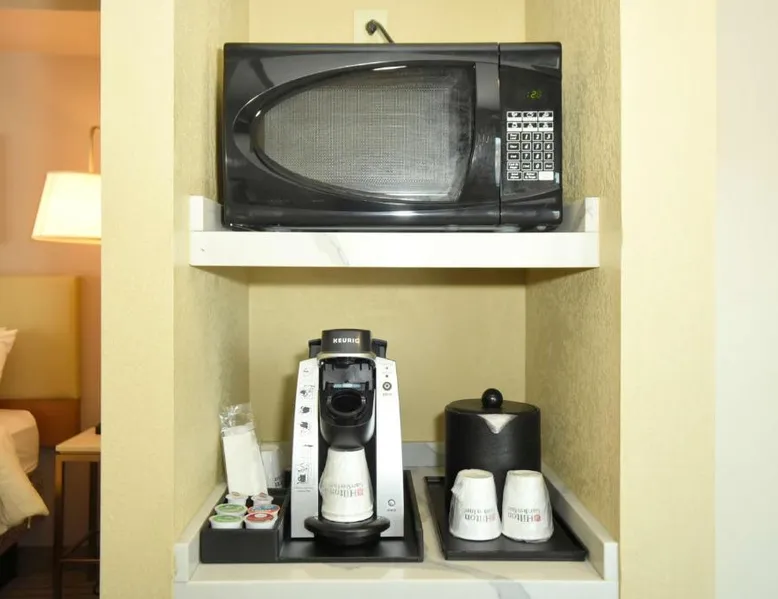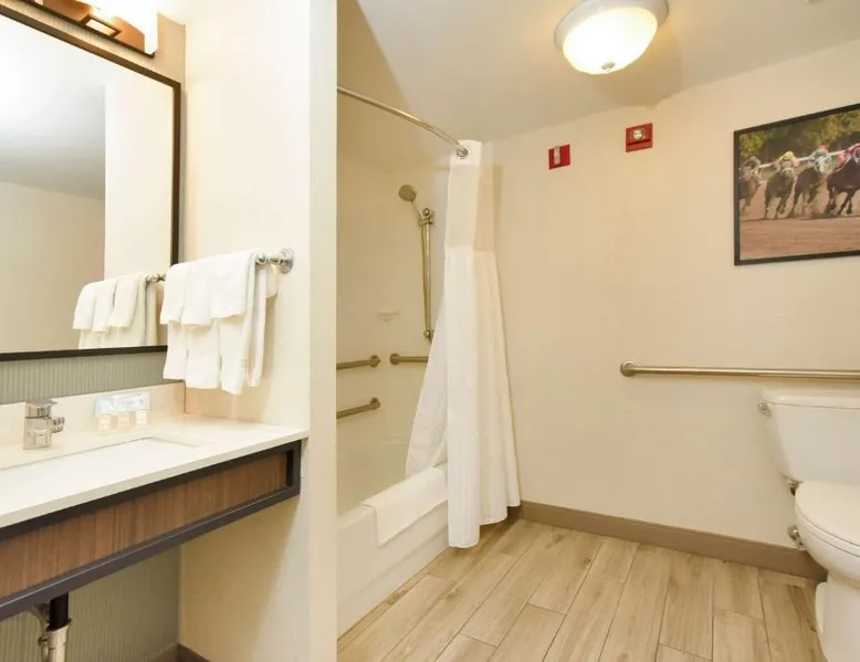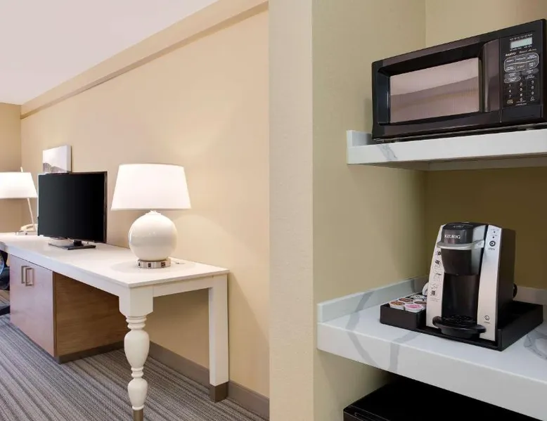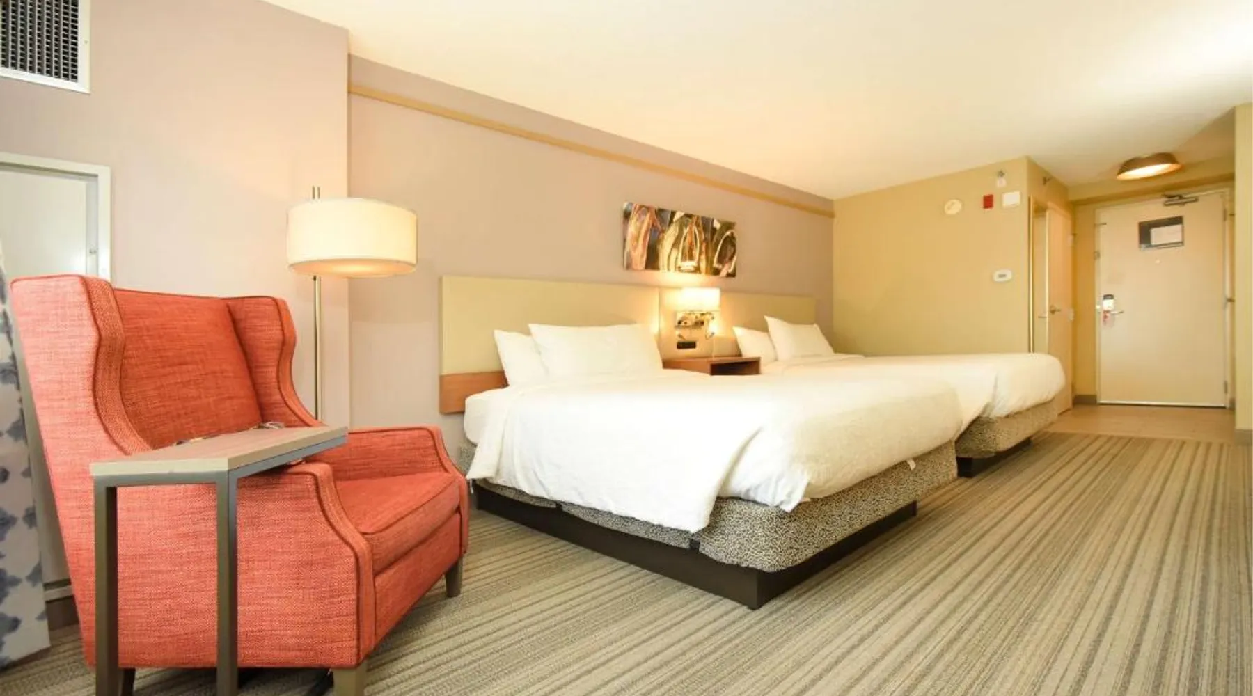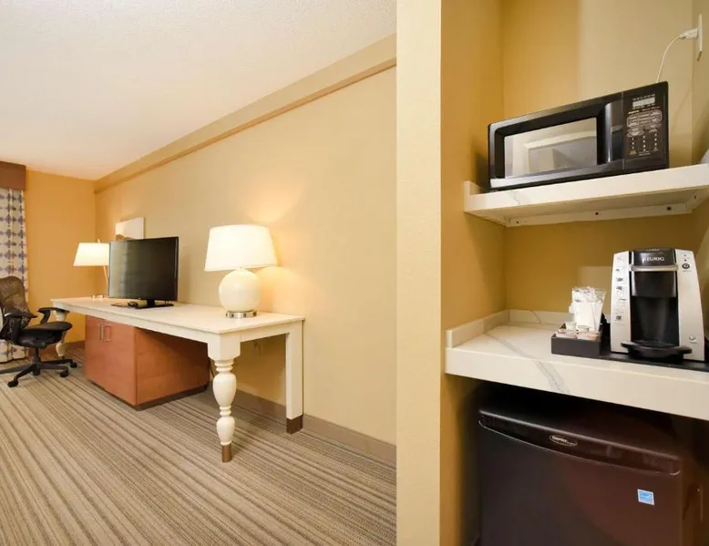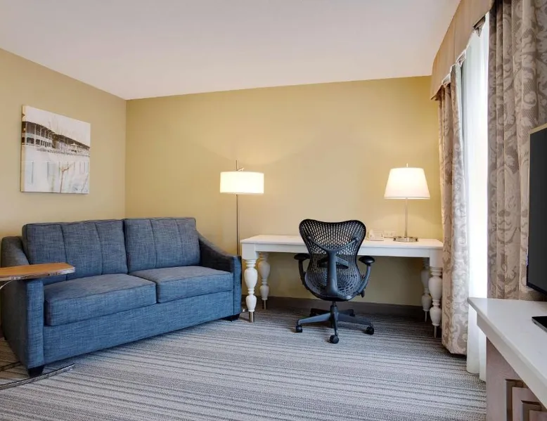 This Saratoga Springs, New York hotel is located in the foothills of the Adirondack Mountains, close to renowned horse racing tracks, and features accommodations, complete with microwaves, Kureg coffee maker and refrigerators. Free Wi-Fi is provided throughout the property. The Hilton Garden Inn Saratoga Springs features a variety of amenities that are sure to make every stay pleasant such as an on-site restaurant offering breakfast and room service, and a 24-hour business center. Guests at the hotel can also enjoy the indoor swimming pool as well as the hotel's lobby lounge. In the area surrounding the Saratoga Springs Hilton Garden Inn, guests can discover a number of restaurants, golf courses and outdoor activities. The historic city center and Canfield Casino are 0.9 mi away. The suite features air conditioning, a tea and coffee maker, a seating area, heating, as well as a flat-screen TV with cable channels. The unit has 2 beds.