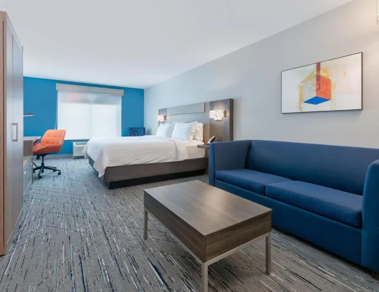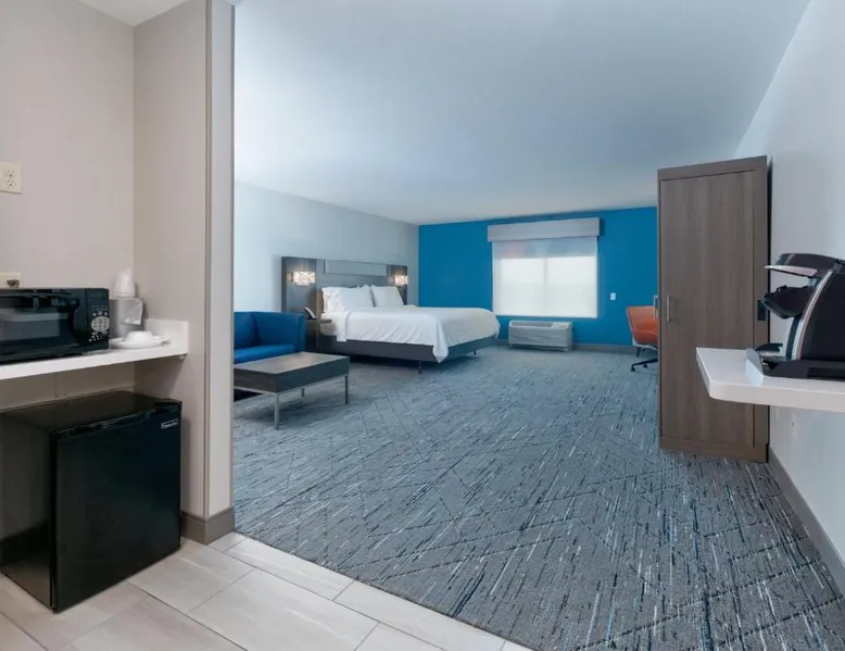 Comfortable Accommodations: Holiday Inn Express Hotel & Suites Shakopee by IHG in Shakopee offers rooms with private bathrooms, air-conditioning, and free WiFi. Each room includes a tea and coffee maker, hairdryer, coffee machine, refrigerator, work desk, microwave, and TV. Leisure Facilities: Guests can enjoy a spa and wellness center, fitness center, indoor swimming pool, and hot tub. Additional amenities include a elevator, 24-hour front desk, minimarket, housekeeping service, business area, express check-in and check-out, and luggage storage. Dining Options: A continental buffet breakfast is served daily. The property also provides free on-site parking and a business area for guests. Location and Attractions: Located 17 mi from Minneapolis-Saint Paul International Airport, the hotel is near attractions such as Valleyfair Amusement Park (1.9 mi), Mall of America (17 mi), and Paisley Park (9.9 mi). Guests appreciate the room cleanliness, breakfast provided by the property, and attentive staff. A flat-screen cable TV is included in this room, along with a microwave and fridge.
