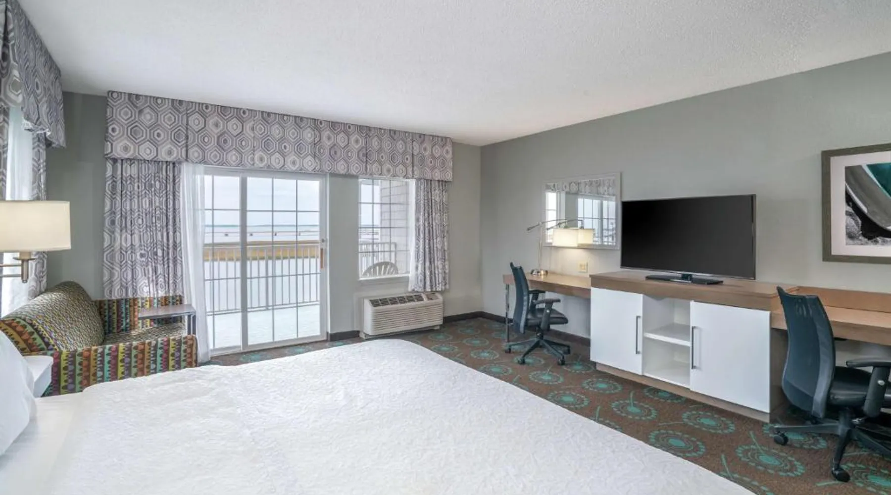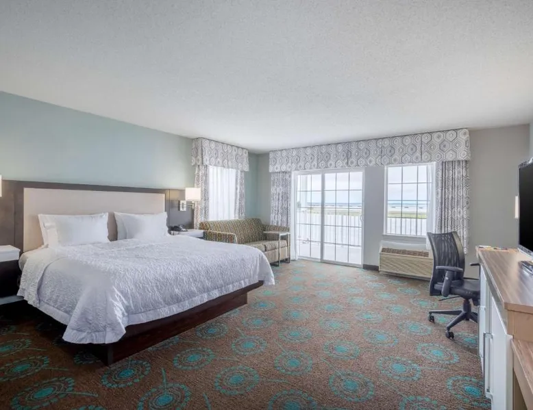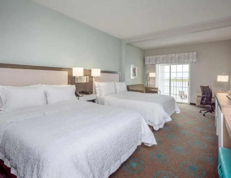 Hampton Inn & Suites in Chincoteague, VA offers waterfront accommodations. Free WiFi is available. A flat-screen TV is available. There is a 24-hour front desk at the property. Additional amenities include complimentary breakfast, a pool, hot tub and fitness center. The nearest airport is Salisbury-Ocean City Wicomico Regional Airport, 29 mi from Hampton Inn & Suites Chincoteague-Waterfront, Va. Featuring a balcony with sea views, this family room also provides a tea and coffee maker and a flat-screen TV. The unit offers 2 beds.