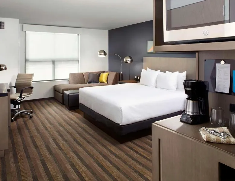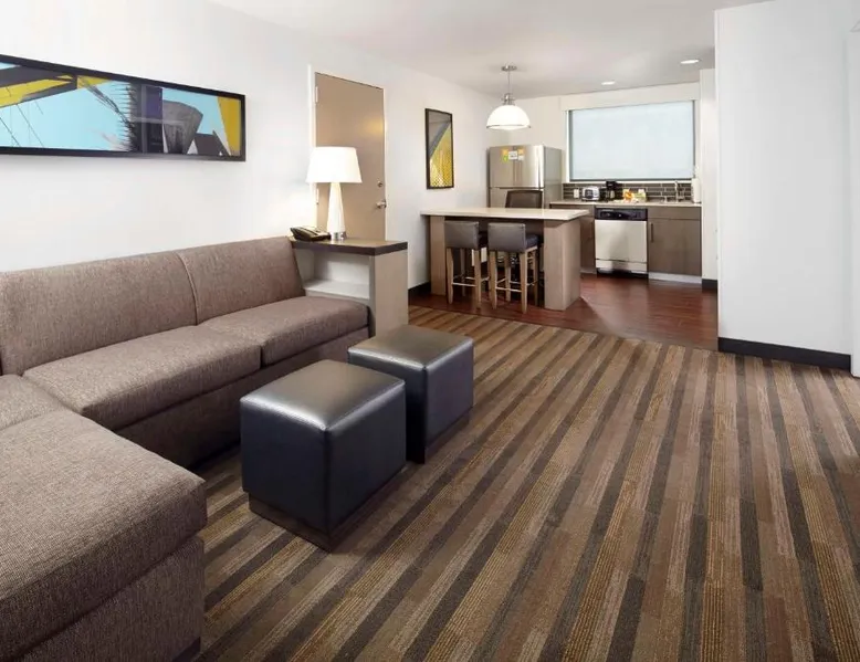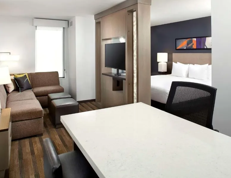 Comfortable Accommodations: Hyatt House Denver Lakewood Belmar in Lakewood offers family rooms with air-conditioning, private bathrooms, and modern amenities. Each room includes a tea and coffee maker, hairdryer, sofa bed, refrigerator, work desk, and TV. Leisure Facilities: Guests can enjoy a saltwater swimming pool, indoor pool, and fitness center. Free WiFi is available throughout the property, ensuring connectivity. Additional facilities include an outdoor fireplace, outdoor seating area, and barbecue facilities. Convenient Location: Located 21 mi from Denver International Airport, the hotel is near attractions such as Ball Arena (6.8 mi), Colorado Convention Center (6.8 mi), and Union Station (7.5 mi). Free on-site parking is provided for guests. Guest Services: The hotel offers a 24-hour front desk, minimarket, business area, and full-day security. Express check-in and check-out services enhance the guest experience. The spacious double room features a private bathroom, air conditioning, a tea and coffee maker, as well as a seating area with a flat-screen TV. The double room provides a wardrobe. The unit offers 1 bed.