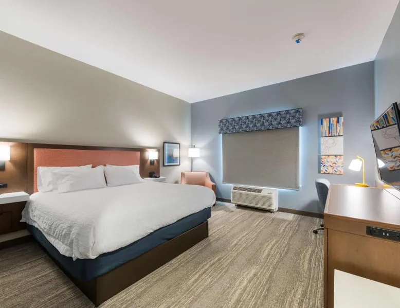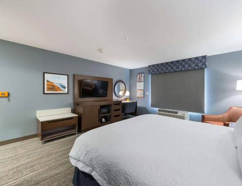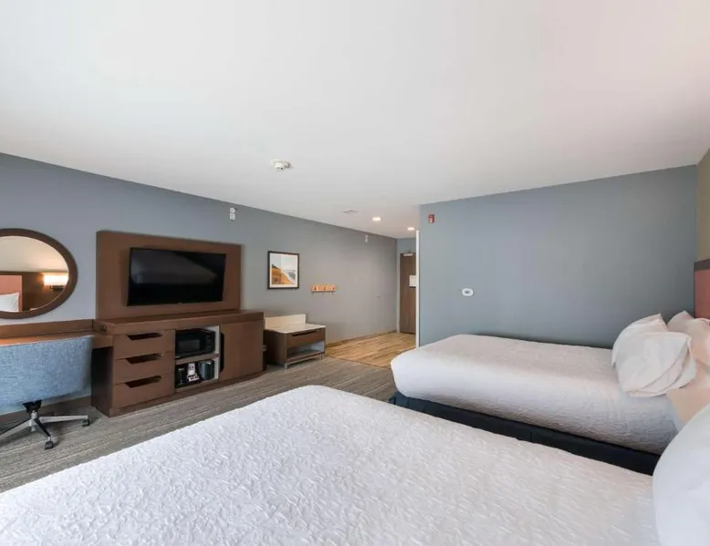Comfortable Accommodations: Hampton Inn Niles, Mi in Niles offers rooms with refrigerators, work desks, microwaves, and TVs. Guests appreciate the room cleanliness and comfortable beds. Leisure Facilities: The hotel features a saltwater swimming pool, indoor pool, and fitness center. Free WiFi is available throughout the property. Convenient Services: Amenities include a lounge, fitness room, elevator, 24-hour front desk, daily housekeeping, outdoor seating area, and car hire. Free on-site private parking is provided. Local Attractions: South Bend Regional Airport is 9.3 mi away. Nearby points include Noter Dame Stadium (9.3 mi), Basilica of the Sacred Heart (8.1 mi), and The Snite Museum of Art (9.3 mi). This double room offers a flat-screen TV. The unit has 1 bed.
