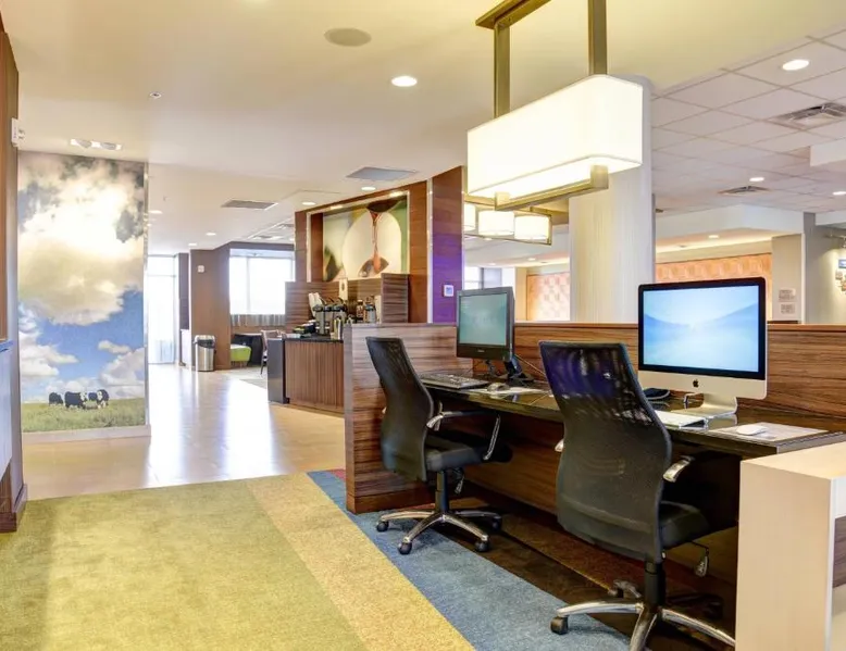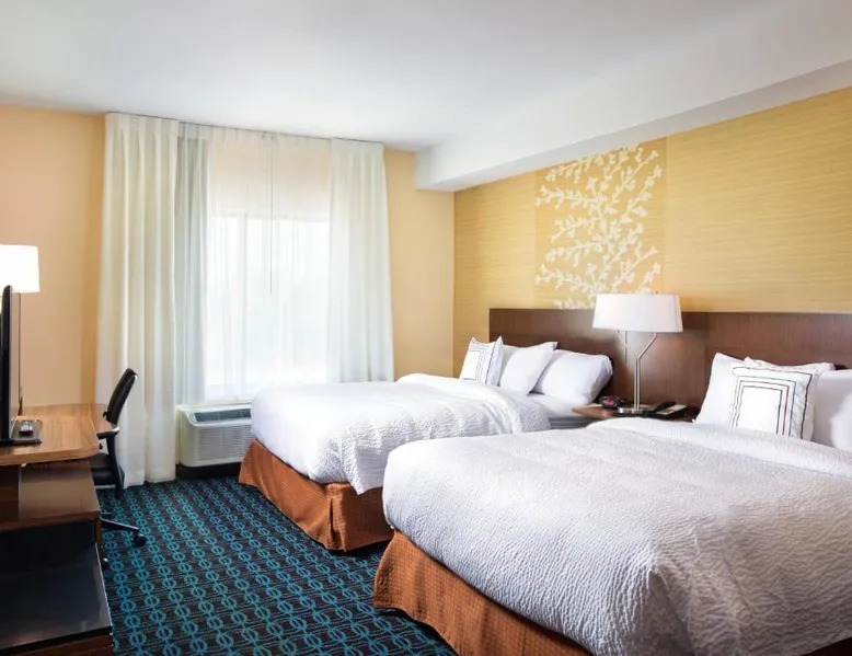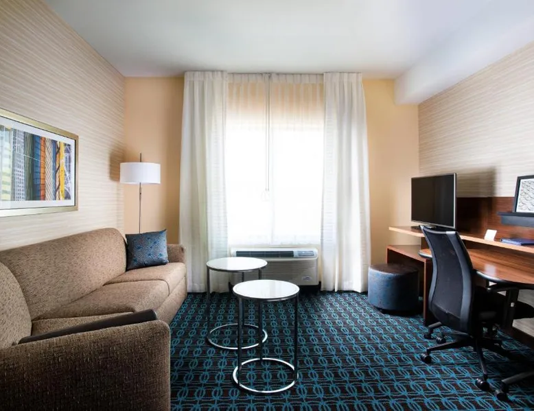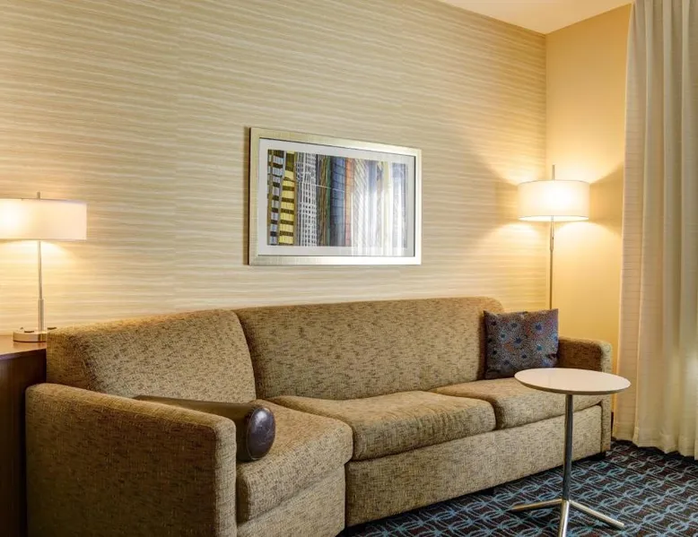 Comfortable Accommodations: Fairfield Inn & Suites by Marriott Rochester Mayo Clinic Area/Saint Marys in Rochester offers rooms with air-conditioning, private bathrooms, and free WiFi. Each room includes a work desk, sofa bed, and flat-screen TV. Exceptional Facilities: Guests can enjoy an indoor swimming pool, fitness center, and outdoor seating area. Additional amenities include a business area, shuttle service, and free on-site private parking. Delicious Breakfast: A buffet breakfast is served daily, featuring fresh pastries, cheese, fruits, and juice. The full English/Irish breakfast includes tea and coffee. Prime Location: Located 11 mi from Rochester International Airport, the hotel is near attractions such as Plummer Building (1.6 mi) and Mayo Civic Center (1.7 mi). Boating is available in the surrounding area. Highly rated for room cleanliness and excellent service. This room includes a flat-screen cable TV, microwave and refrigerator. There is a desk and a seating area as well.