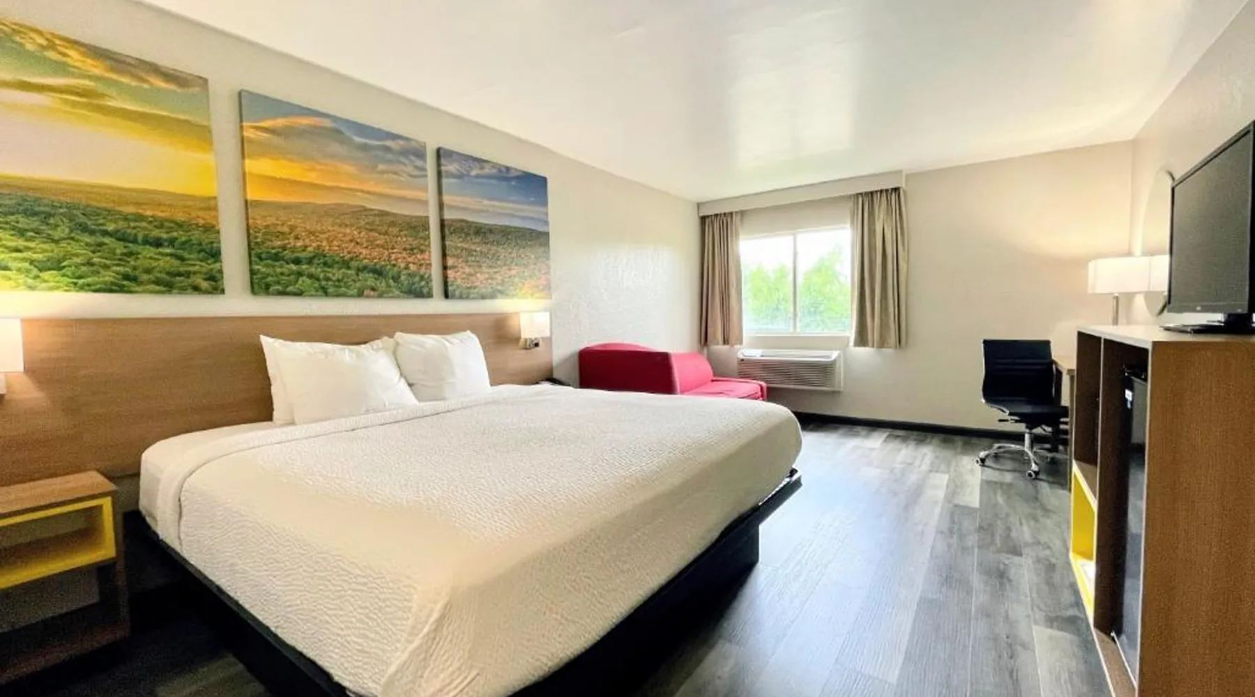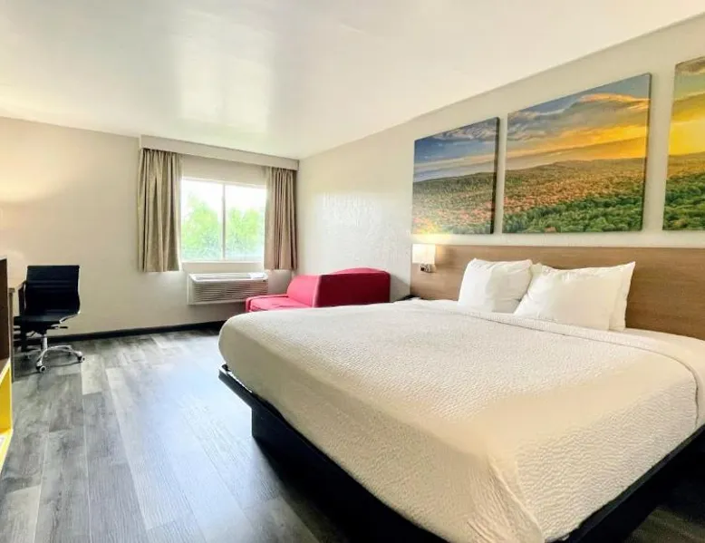 Days Inn Columbus Indiana lies just of the Highway 65 and features a fitness center. The modern rooms come with cable TV, free WiFi and luxury beds. Each bright room has an armchair to relax and comes with a safe, a microwave and a fridge. They all have a bathroom provided with free toiletries. A breakfast to grab and go is served in the hotel’s lounge every morning. Several restaurants are within 0.6 mi from the Days inn Columbus Indiana. Harrison Lake Country Club is 5 minutes' drive by car. Miller House and Garden is 9 mi away. Boasting free Wi-Fi and cable TV, this room is equipped with tea and coffee-making facilities, a refrigerator and microwave.