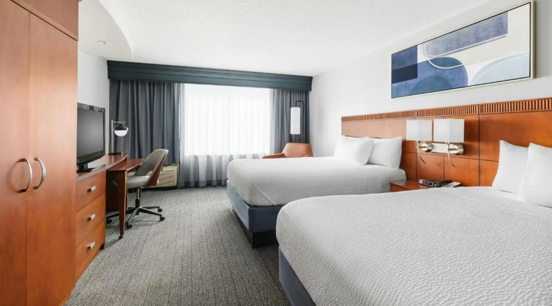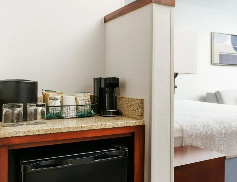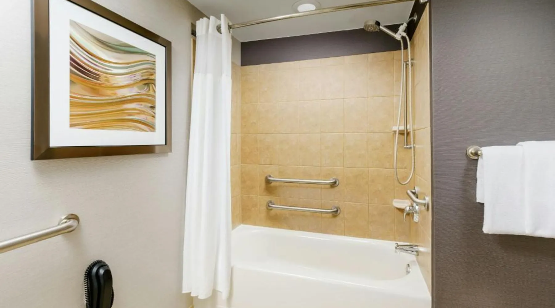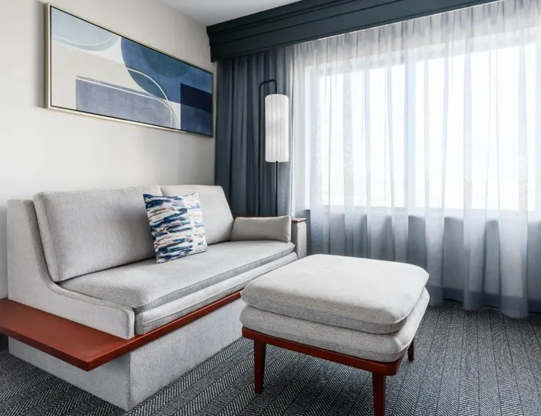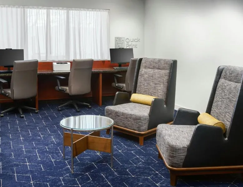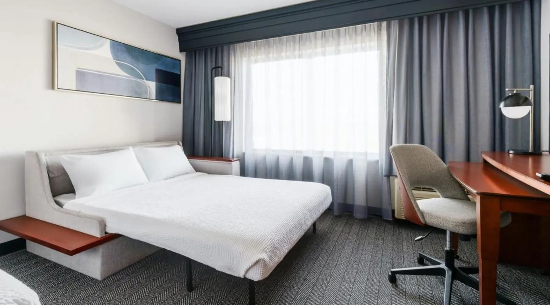 Comfortable Accommodations: Courtyard Hartford Farmington in Farmington offers air-conditioned rooms with private bathrooms, free WiFi, and modern amenities. Each room includes a work desk, TV, and complimentary toiletries. Dining and Leisure: Guests can enjoy an indoor swimming pool, terrace, restaurant, and bar. The modern restaurant serves American cuisine for dinner and cocktails. Free on-site parking is available. Convenient Location: Located 21 mi from Bradley International Airport, the hotel is near attractions such as Central Connecticut State University (2.9 mi) and the Mark Twain House (5.6 mi). An ice-skating rink is in the surroundings. Guest Satisfaction: Highly rated for room cleanliness, attentive staff, and excellent breakfast. This room has a refrigerator, coffee-making facilities, and cable TV.