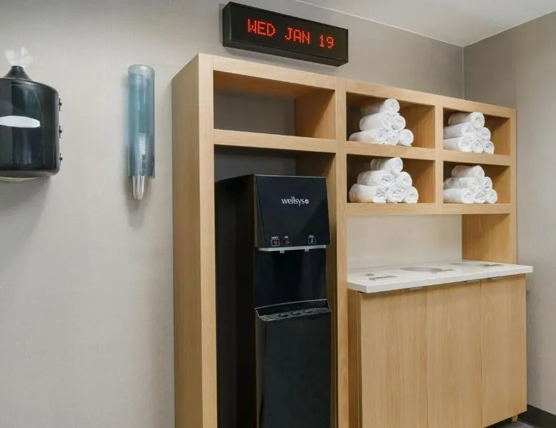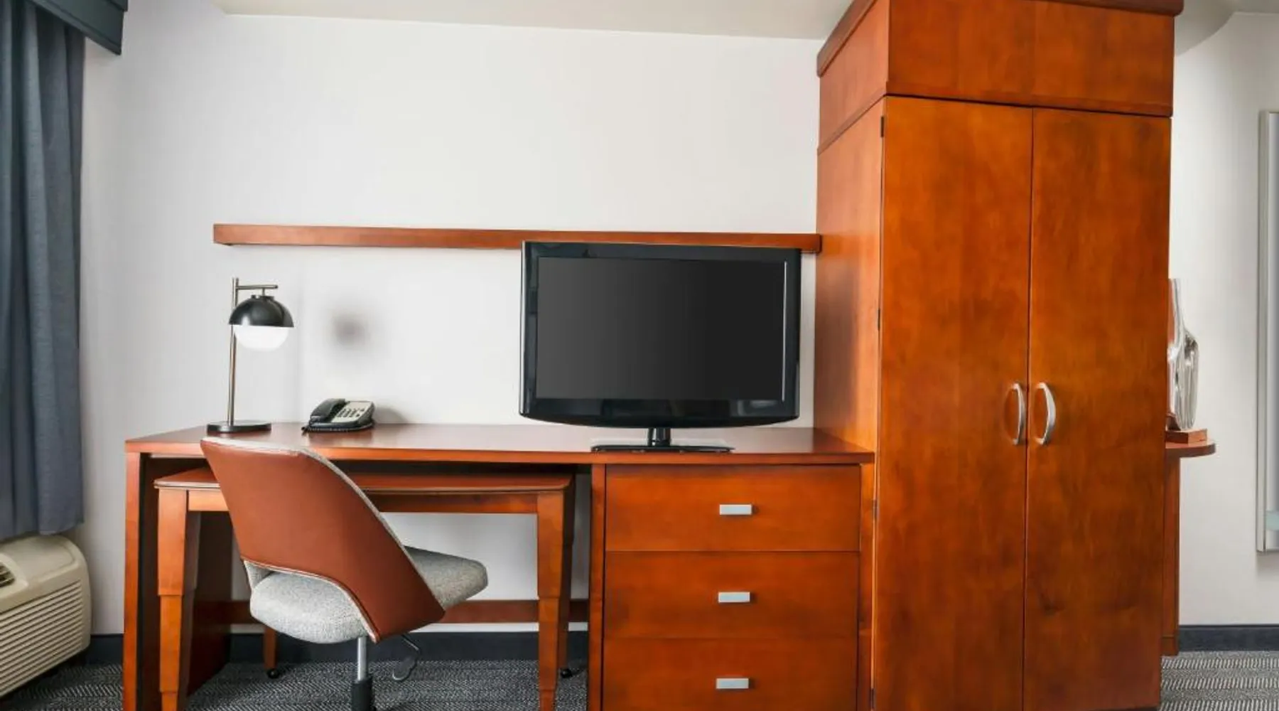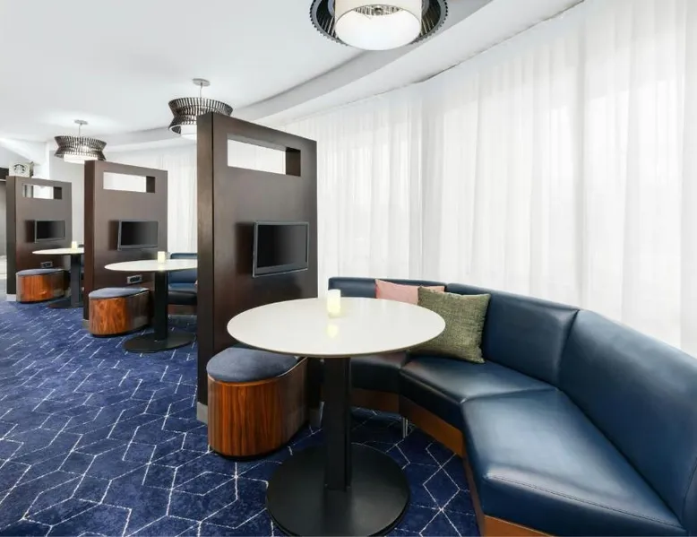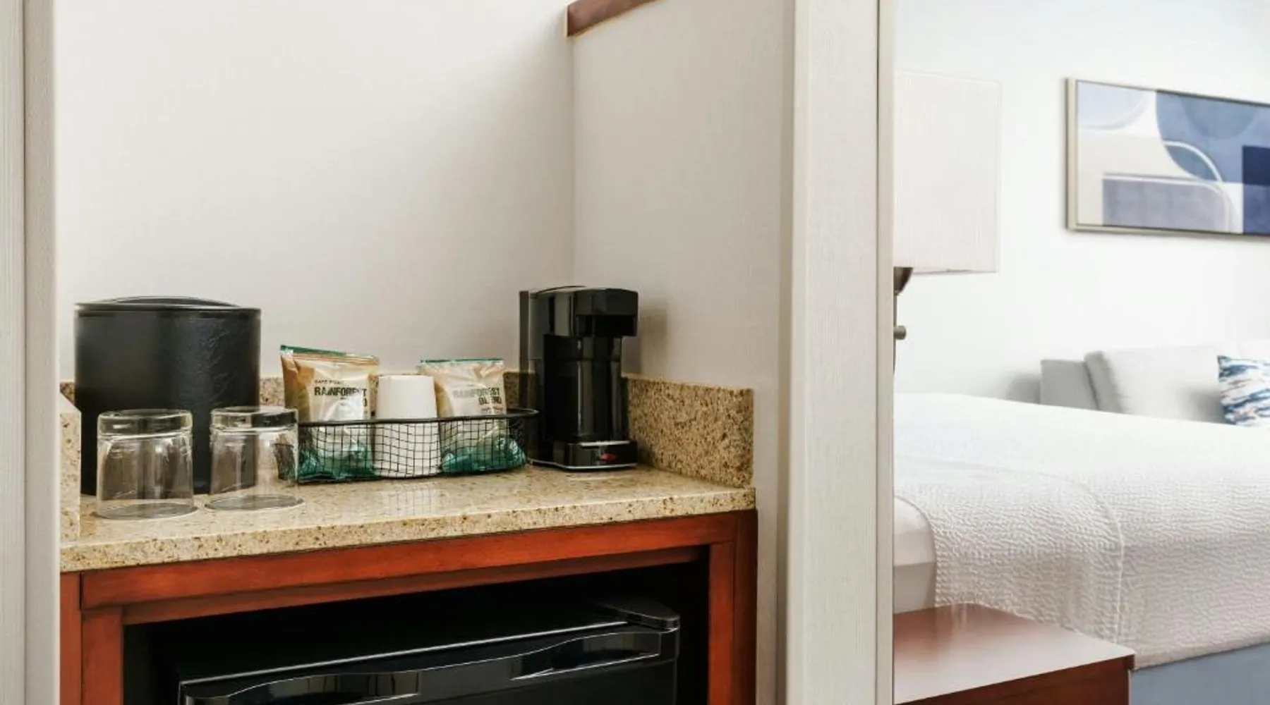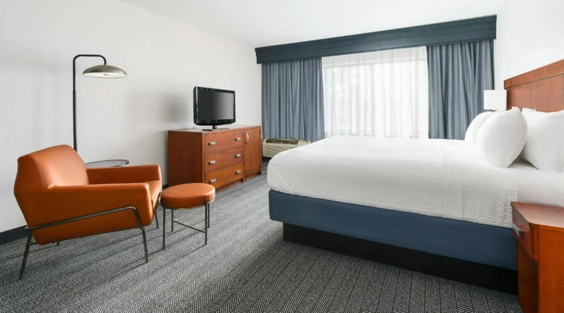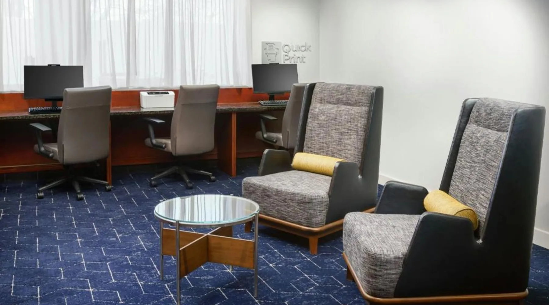 Comfortable Accommodations: Courtyard Hartford Farmington in Farmington offers air-conditioned rooms with private bathrooms, free WiFi, and modern amenities. Each room includes a work desk, TV, and complimentary toiletries. Dining and Leisure: Guests can enjoy an indoor swimming pool, terrace, restaurant, and bar. The modern restaurant serves American cuisine for dinner and cocktails. Free on-site parking is available. Convenient Location: Located 21 mi from Bradley International Airport, the hotel is near attractions such as Central Connecticut State University (2.9 mi) and the Mark Twain House (5.6 mi). An ice-skating rink is in the surroundings. Guest Satisfaction: Highly rated for room cleanliness, attentive staff, and excellent breakfast. This room has a refrigerator, coffee-making facilities, and cable TV.