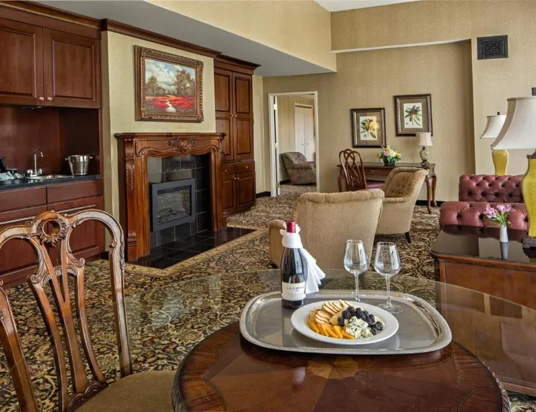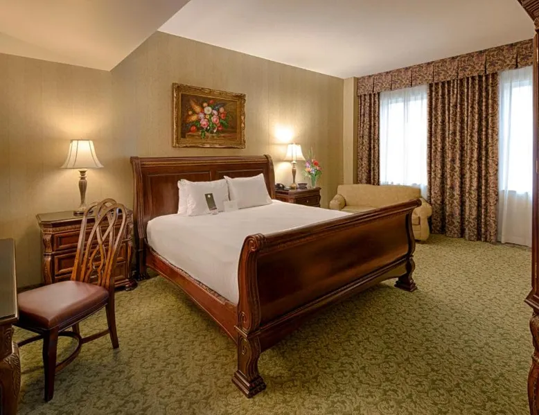 This Johnson City, Tennessee hotel is located along Highway 321 at the edge of the East Tennessee State University campus. It offers a full-service spa & beauty salon, and a restaurant. Spacious rooms feature free Wi-Fi. A flat-screen TV and a mini-fridge are equipped in all rooms at Carnegie Hotel. The classic rooms are filled with traditional décor and light colors; they include a laptop safe box and a work desk. Most offer a seating area with a sofa bed. Hotel Carnegie offers on-site dining at Wellington’s. The restaurant serves modern southern cuisine in a formal dining atmosphere. A variety of liquor and wine selections are available, and the restaurant offers occasional live entertainment. A gym and a business center are offered on site for guest use. Meeting rooms are also available. This hotel is less than a 10-minute drive from the entrance of Roan Mountain State Park and Pine Oaks Golf Club. This room features a flat-screen TV, a seating area with a sofa bed and a mini-fridge. Room rate is based on 2 guests. Maximum occupancy is 3 guests (See Hotel Policies).