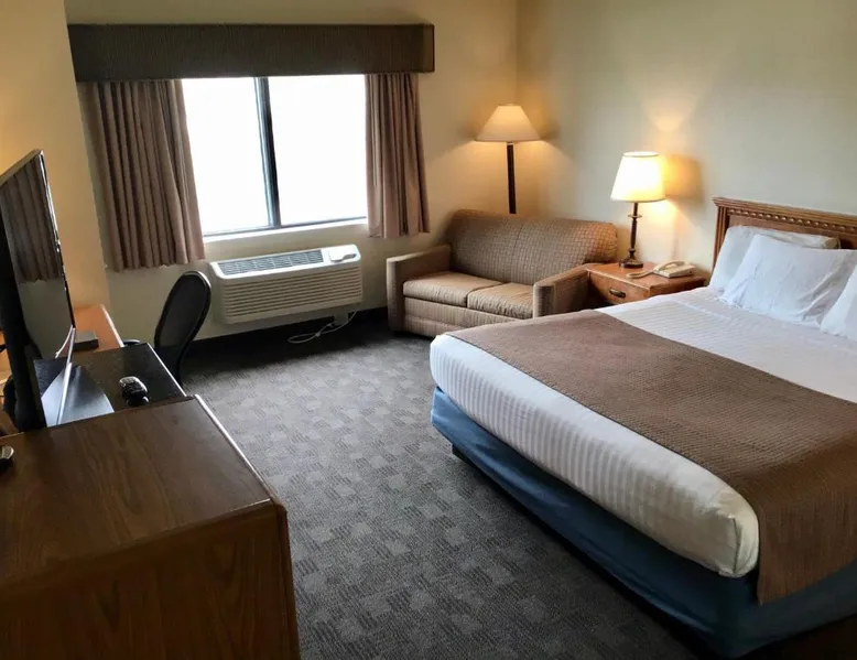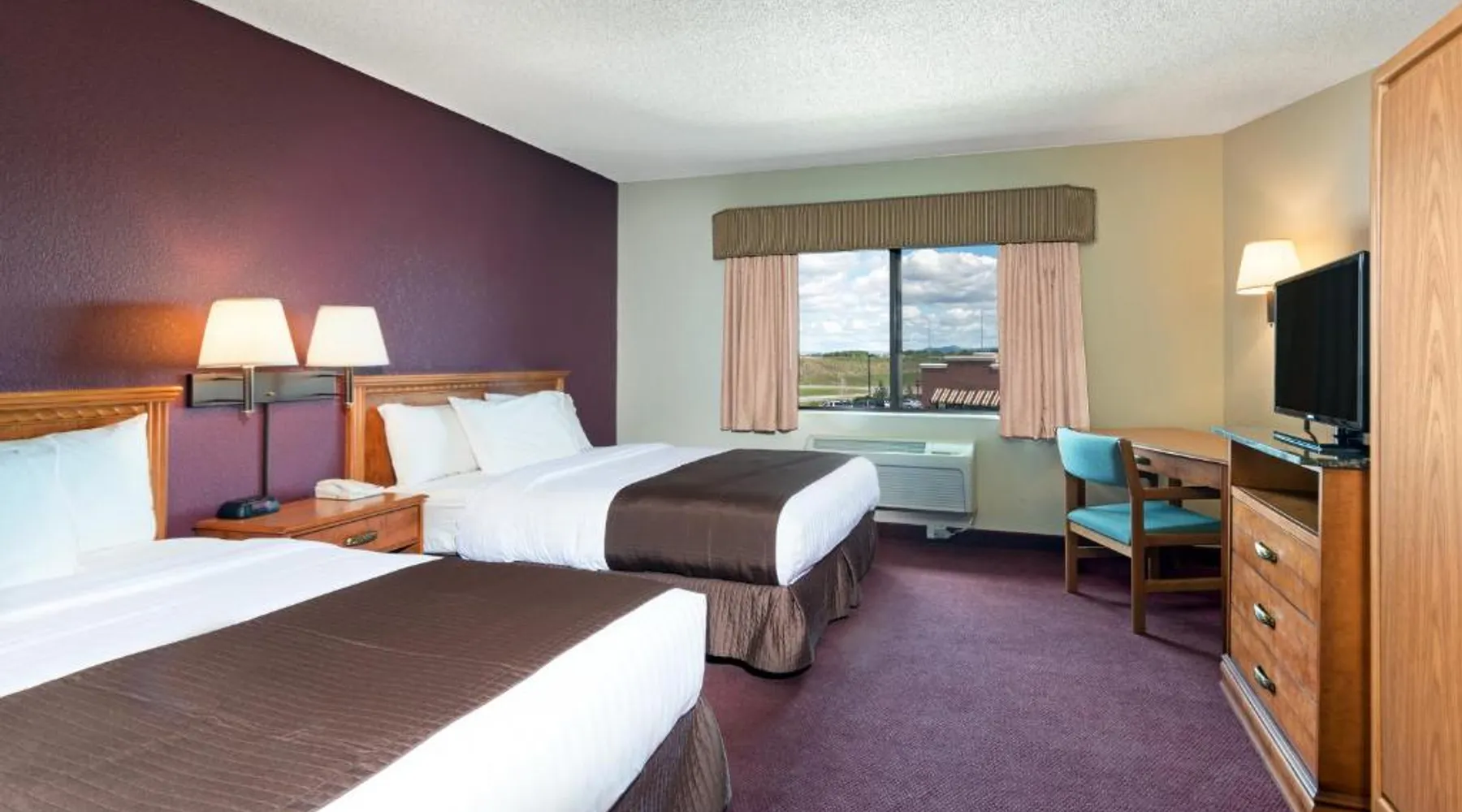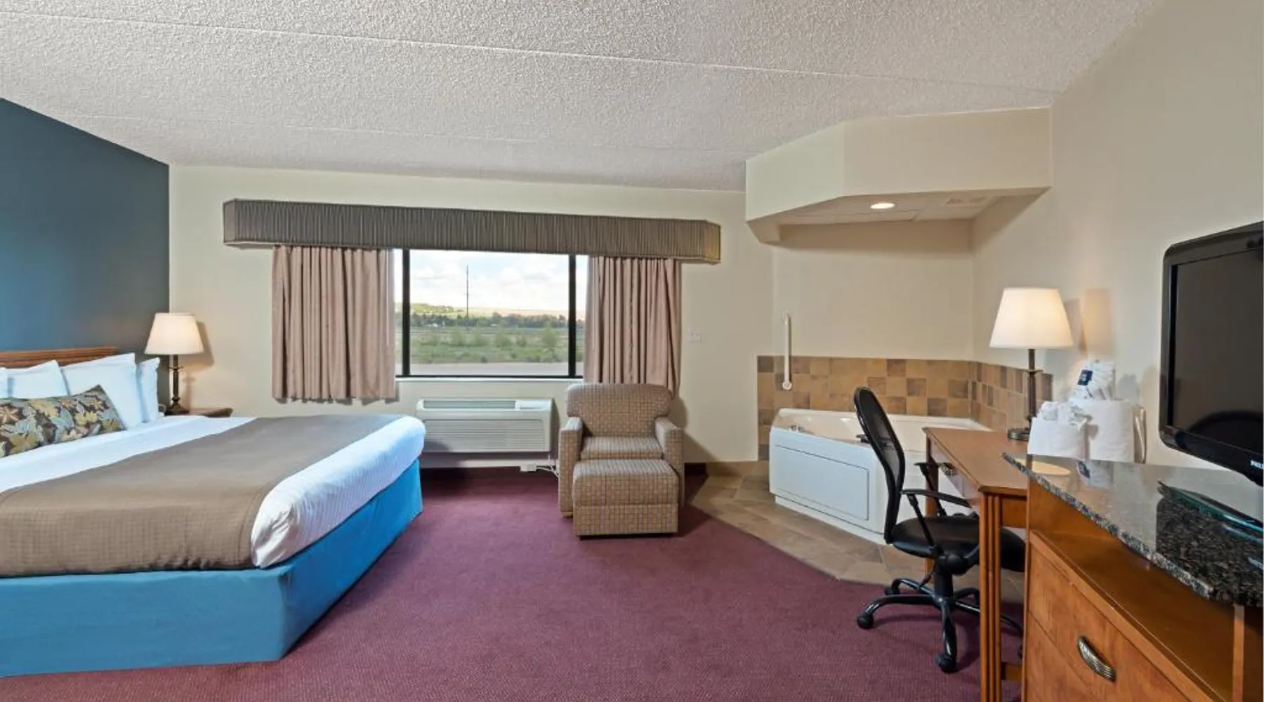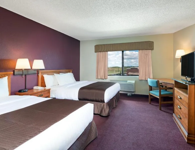 Comfortable Accommodations: AmericInn by Wyndham Rexburg BYUI in Rexburg offers family rooms with air-conditioning, private bathrooms, and balconies. Each room includes a work desk, seating area, and free WiFi. Leisure Facilities: Guests can enjoy a fitness center, indoor swimming pool, and hot tub. Additional amenities include a fireplace, tea and coffee maker, and free toiletries. Convenient Services: The hotel provides a 24-hour front desk, housekeeping, and free on-site parking. Free WiFi is available throughout the property. Nearby Attractions: Eliza R. Snow Performing Arts Center is 2.5 mi away, and Idaho Falls Regional Airport is 28 mi from the hotel. The family room provides air conditioning, as well as a private bathroom featuring a bath or a shower. The unit offers 2 beds.