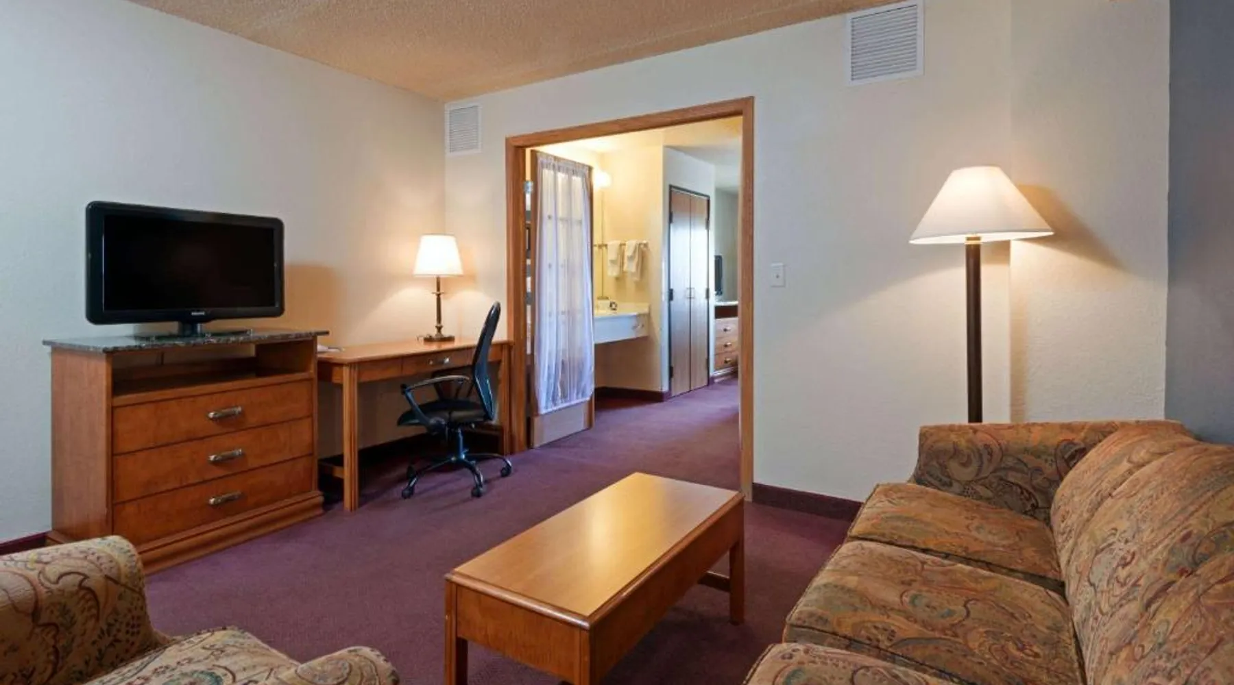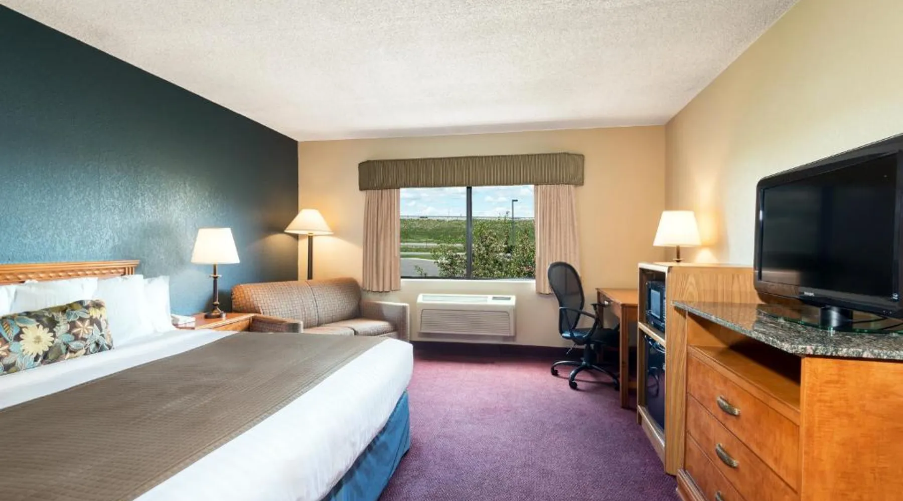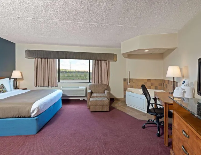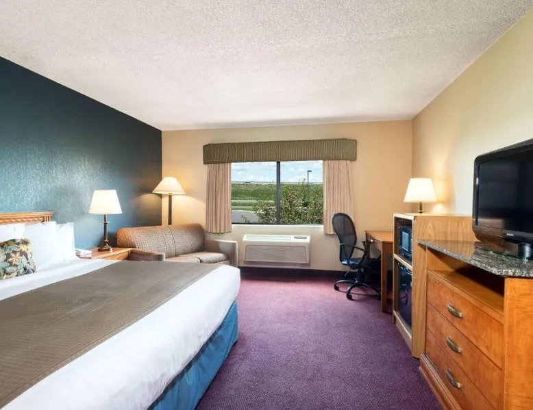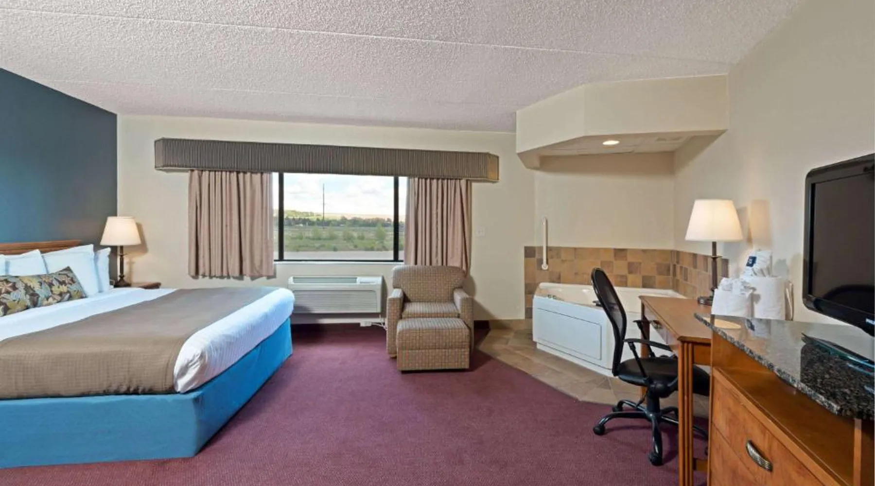 Comfortable Accommodations: AmericInn by Wyndham Rexburg BYUI in Rexburg offers family rooms with air-conditioning, private bathrooms, and balconies. Each room includes a work desk, seating area, and free WiFi. Leisure Facilities: Guests can enjoy a fitness center, indoor swimming pool, and hot tub. Additional amenities include a fireplace, tea and coffee maker, and free toiletries. Convenient Services: The hotel provides a 24-hour front desk, housekeeping, and free on-site parking. Free WiFi is available throughout the property. Nearby Attractions: Eliza R. Snow Performing Arts Center is 2.5 mi away, and Idaho Falls Regional Airport is 28 mi from the hotel. The family room provides air conditioning, as well as a private bathroom featuring a bath or a shower. The unit offers 2 beds.