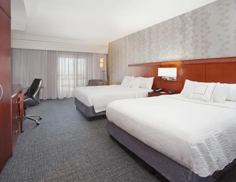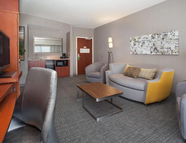 Comfortable Accommodations: Courtyard Casper in Casper offers comfortable rooms with air-conditioning, private bathrooms, and modern amenities. Guests enjoy free WiFi, flat-screen TVs, and work desks. Dining and Leisure: The modern restaurant serves American cuisine with vegetarian and gluten-free options. A bar offers cocktails, and an indoor swimming pool provides relaxation. Additional facilities include a fitness center and hot tub. Convenient Services: The hotel provides private check-in and check-out, a 24-hour front desk, and free on-site parking. Guests appreciate the attentive staff, room cleanliness, and comfortable rooms. Location and Attractions: Located 12 mi from Casper-Natrona County International Airport, the hotel is near attractions such as the Wyoming State Museum and the National Historic Trail. A seating area with a sofa bed and a flat-screen cable TV is featured in this room. A microwave, small fridge, and coffee-making facilities are also included.